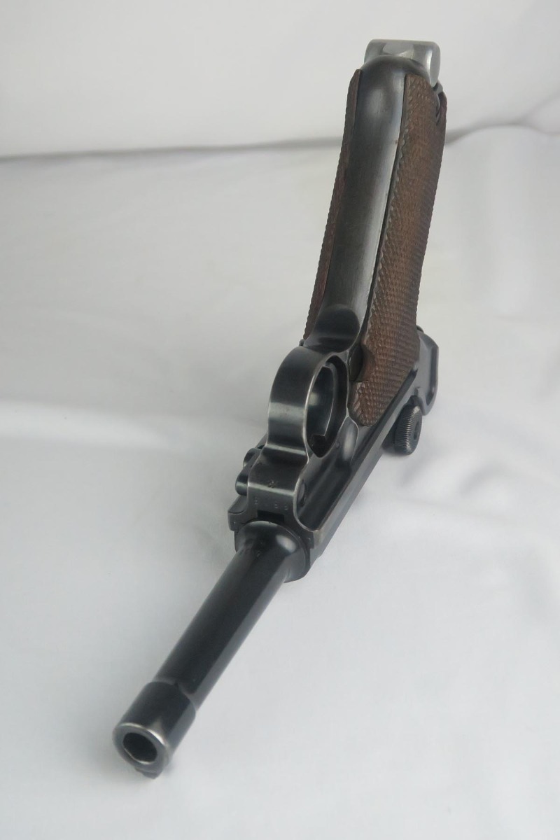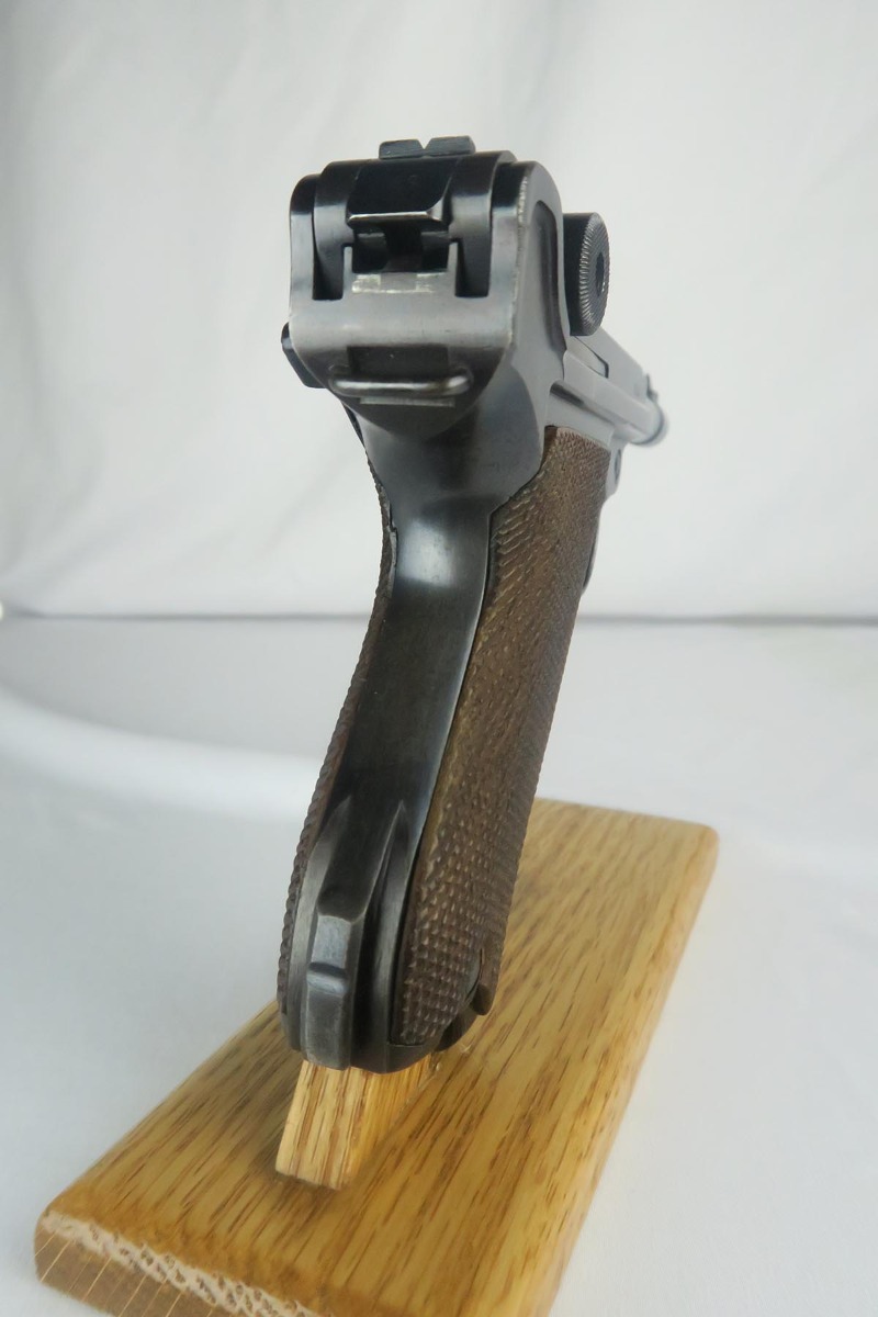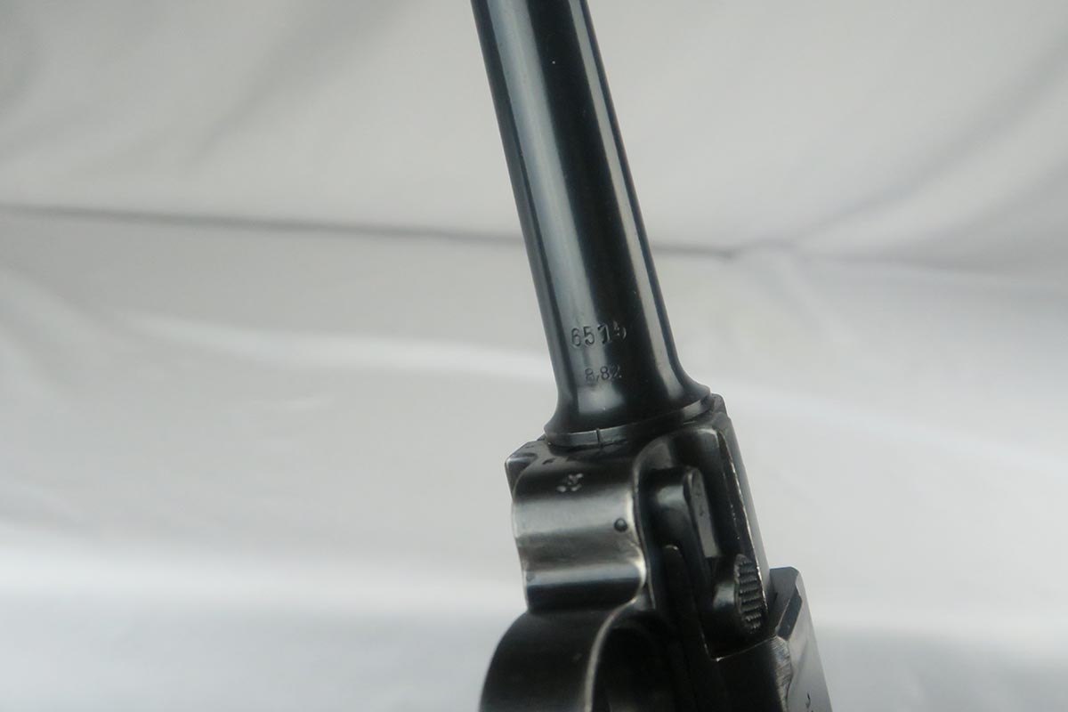1/25/18 – This is a very hard to find 1939 Mauser Luger with both original matching magazines.  The pistol is all matching and original with about 94% blue remaining.  There is some wear on the high edges and thinning on the straps.  All numbered parts match, including both magazines.  The grips are unnumbered but fit perfectly.  Excellent bore.