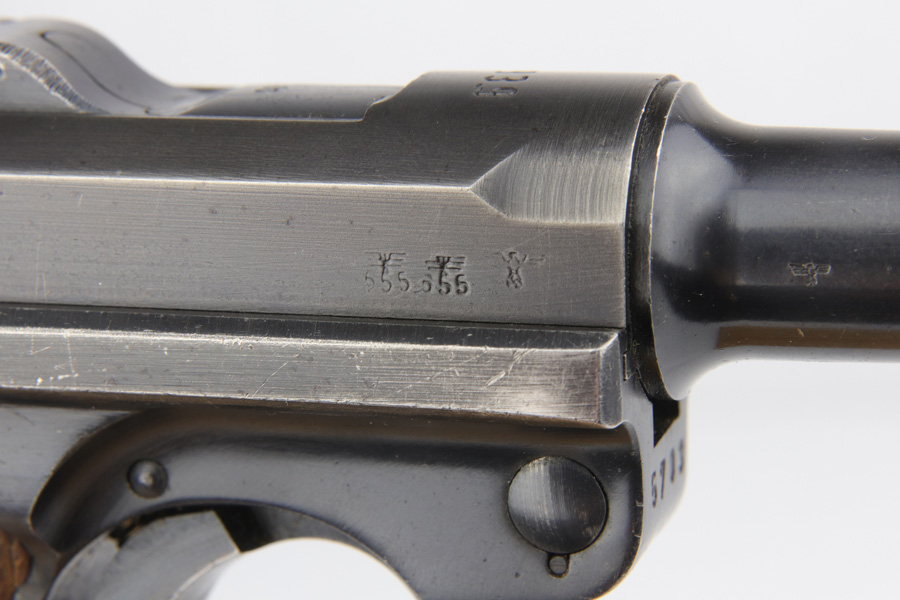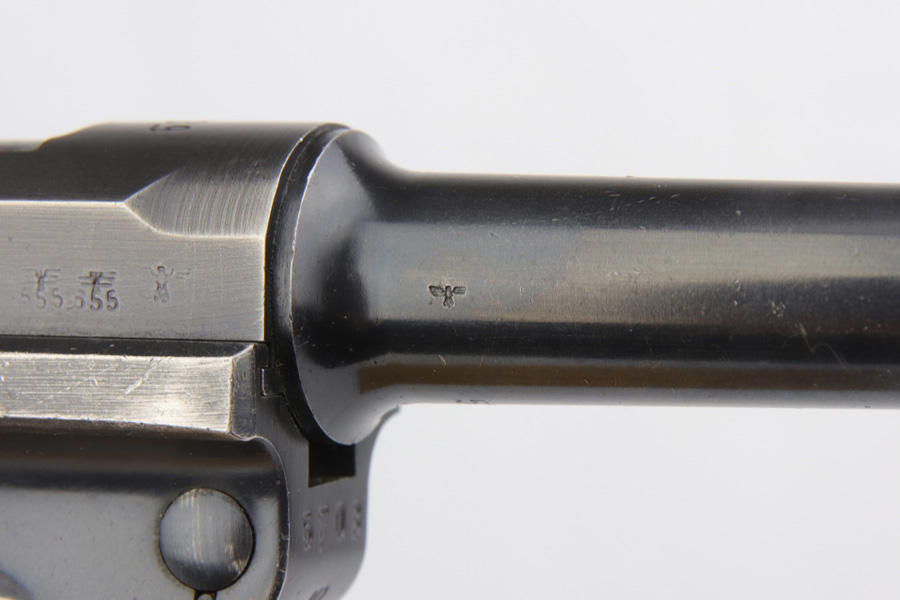 12/7/18 – This is a nice, original Nazi Mauser Luger rig from 1939. The pistol is all matching and original with 92-93% blue, showing majority of finish loss on the muzzle and side plate, but a little more on other edges. Magazine is period correct but numbered to another Luger. Sharp grips that are unnumbered but waffen marked. MINT bore. Comes with a somewhat worn but still nice 1939 dated holster, and an unmarked tool.