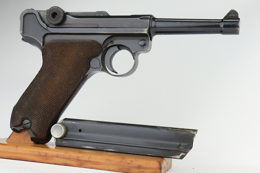 SOLD – 1939 Police Eagle/C Mauser Banner Luger – Matching Magazine