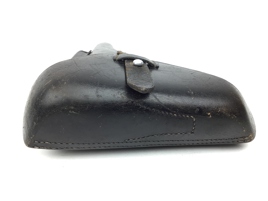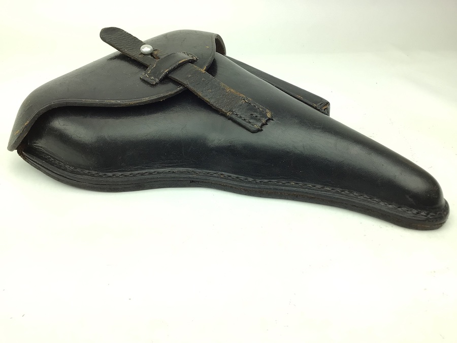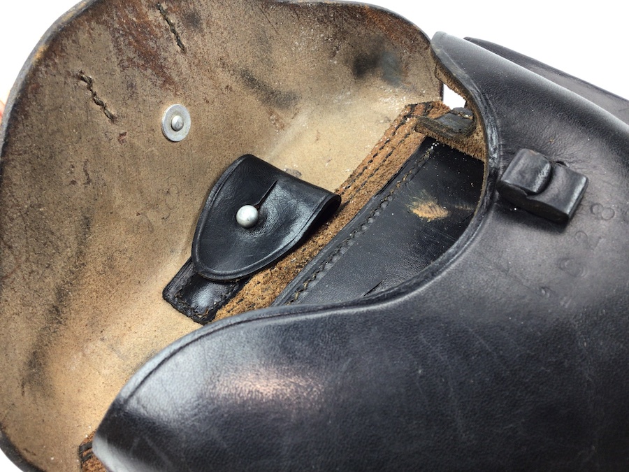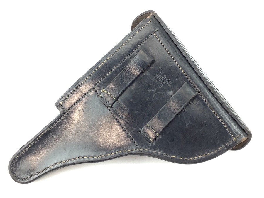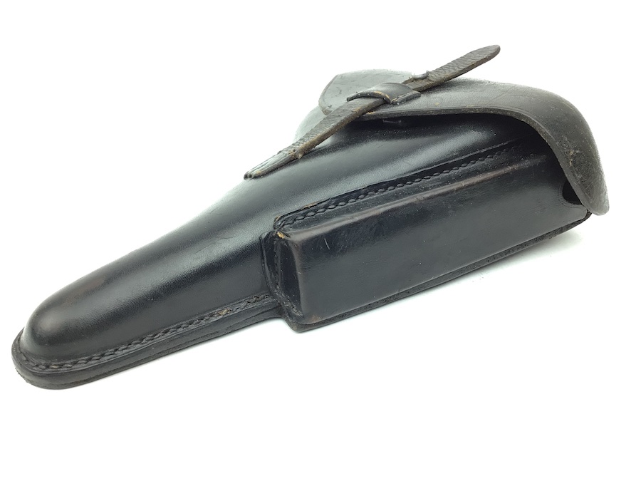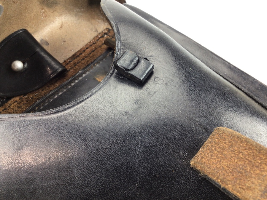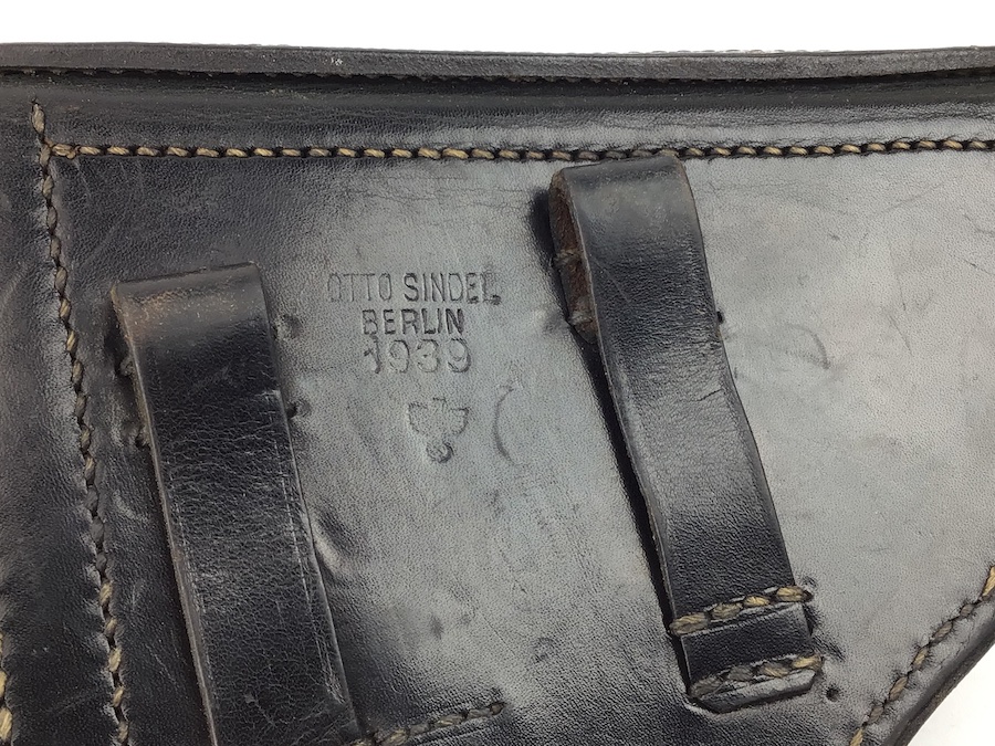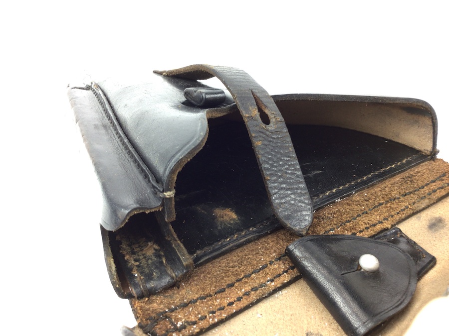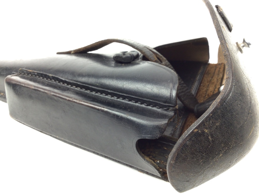 6/21/21 – Original and excellent condition, 1939 Police luger holster. The holster is in excellent condition with only mild surface wear on the closure strap. The leather is firm and completely intact with original tight stitching. Dated, police proof stamped, and maker stamped on the back leather. Unit number “1828” stamped on the front.