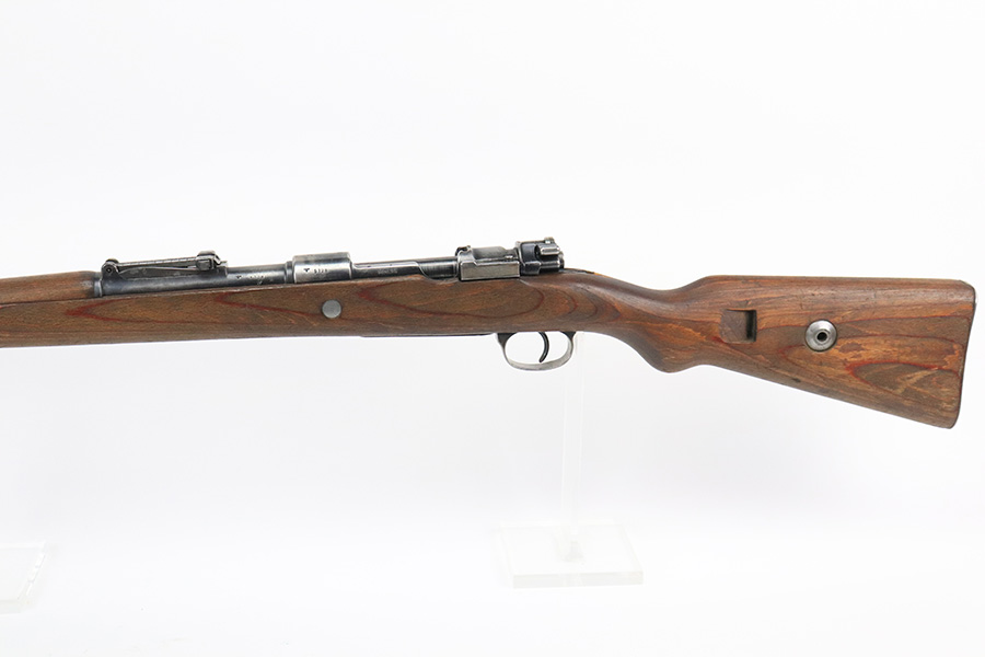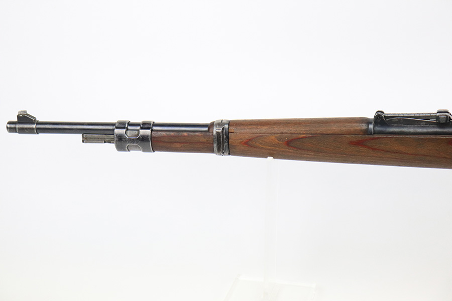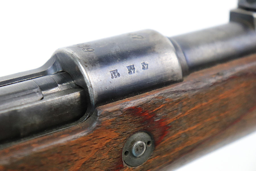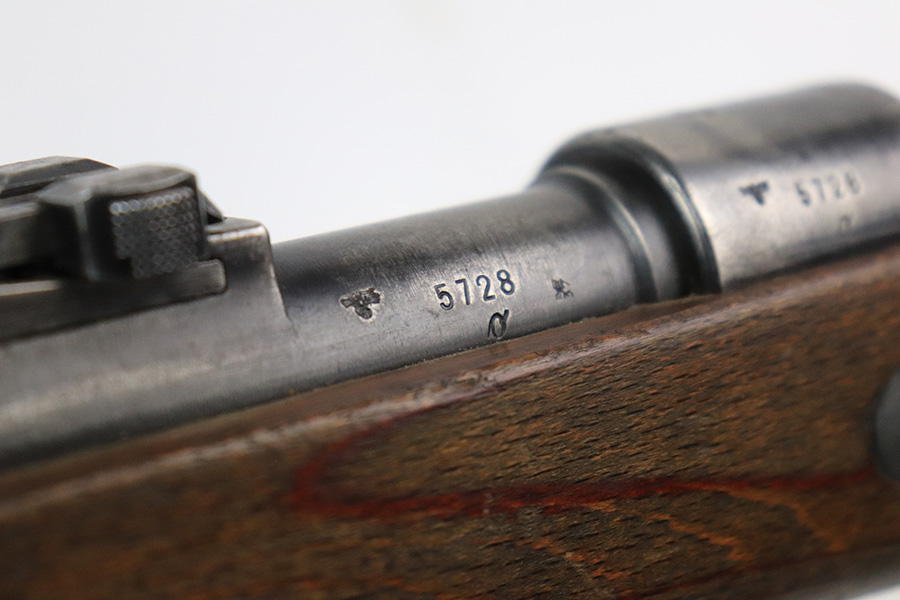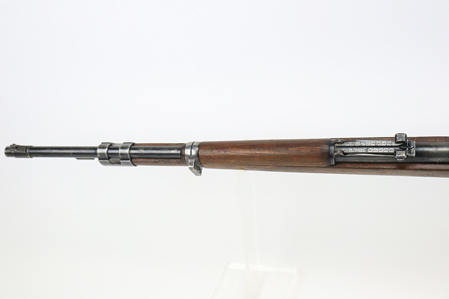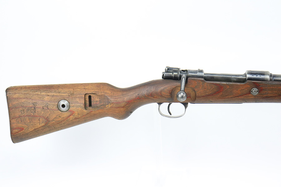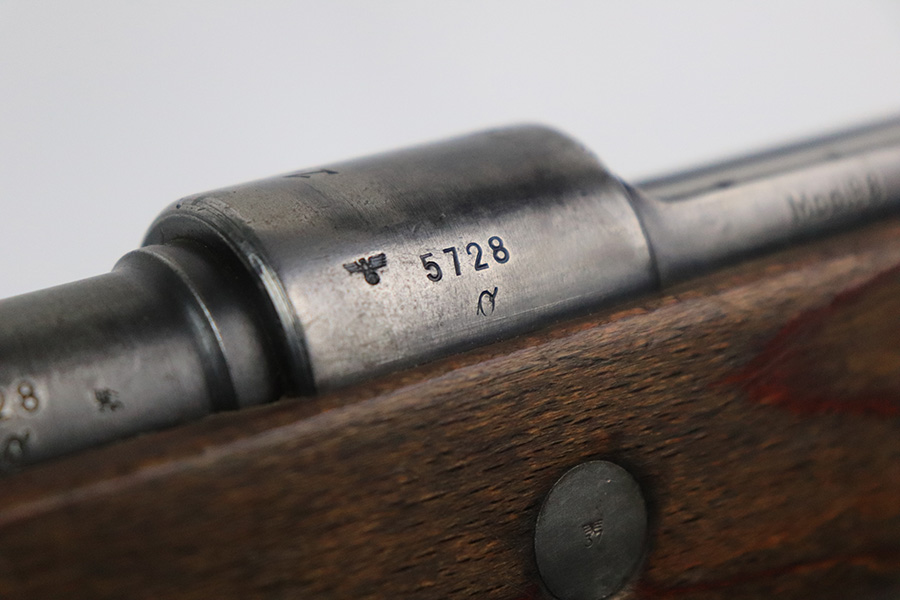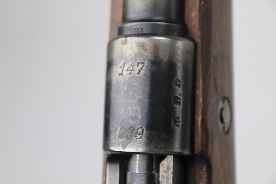 6/13/22 – This is a nice example of a JP Sauer K98 rifle issued to the Nazi military in 1939. This one also has a rare “147” Sauer factory code. The gun is completely matching except for the bolt and one of the trigger assembly screws. The stock is also matching and has the proper Waffen stamps. Overall, the gun is in nice condition overall, but there is noticeable finish loss on the receiver, barrel bands, and especially the floor plate / trigger assembly where there is no finish left. The stock is nice, but there are minor dings and scratches throughout. The bore has strong rifling, but there is minor freckling throughout.