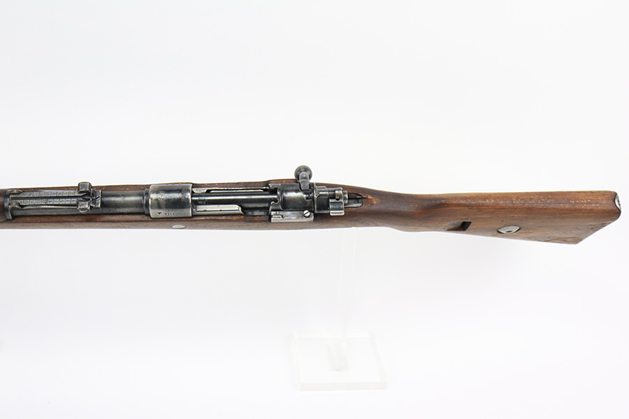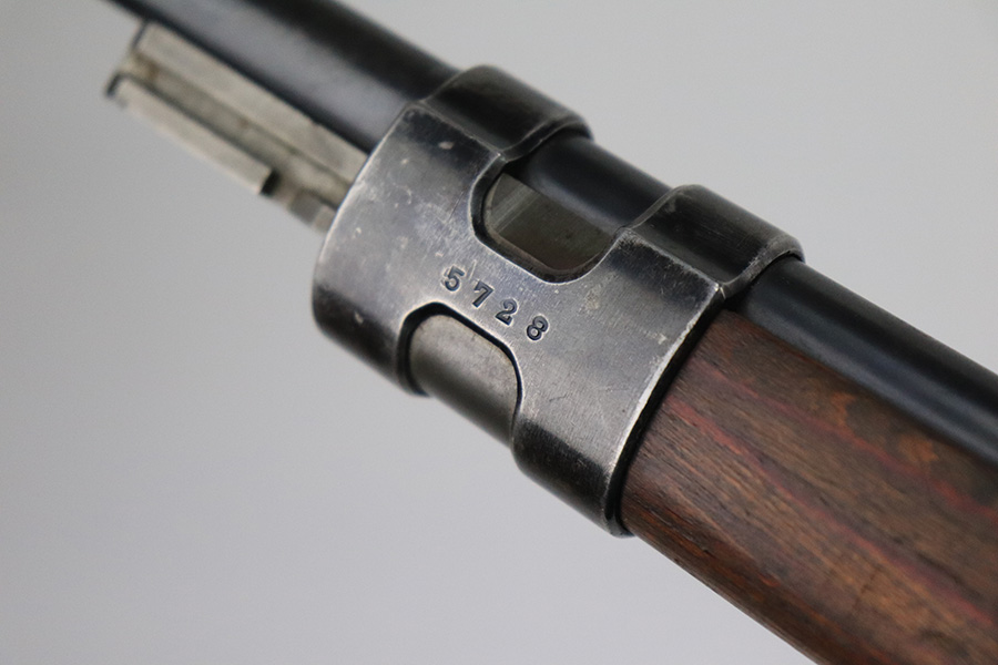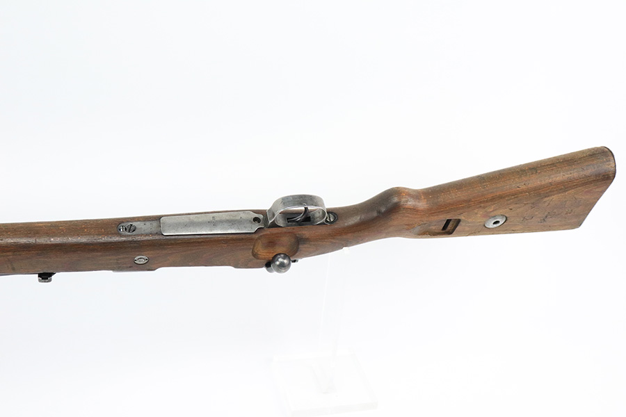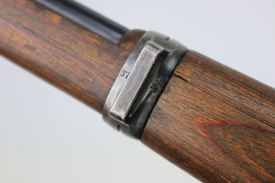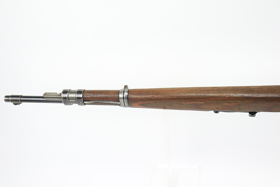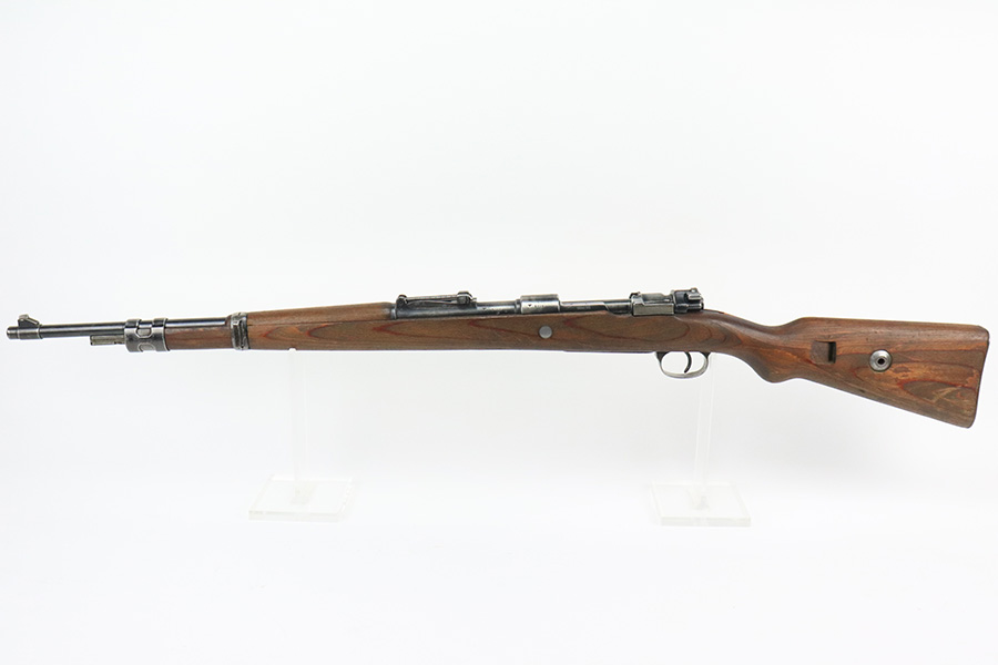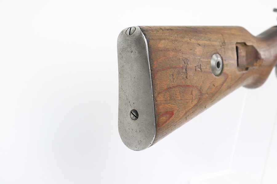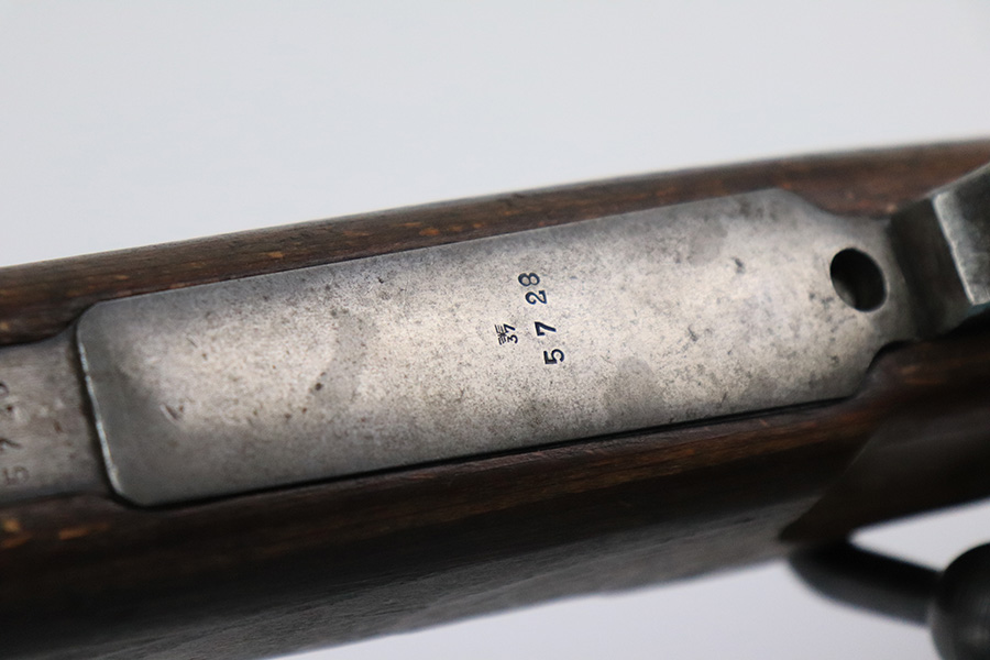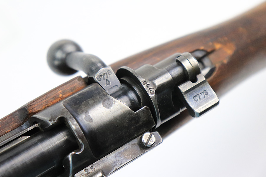 6/13/22 – This is a nice example of a JP Sauer K98 rifle issued to the Nazi military in 1939. This one also has a rare “147” Sauer factory code. The gun is completely matching except for the bolt and one of the trigger assembly screws. The stock is also matching and has the proper Waffen stamps. Overall, the gun is in nice condition overall, but there is noticeable finish loss on the receiver, barrel bands, and especially the floor plate / trigger assembly where there is no finish left. The stock is nice, but there are minor dings and scratches throughout. The bore has strong rifling, but there is minor freckling throughout.