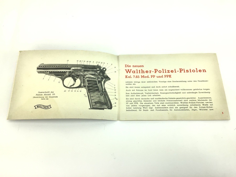 4/30/24 – This is an original manual that came in the box with a Walther PP or PPK. Generally these were issued will all pre 1940 Walthers. The manual is dated April of 1939. It is in great condition with some minor stains and marks on the back cover. All pages are present and there are no rips or tears.