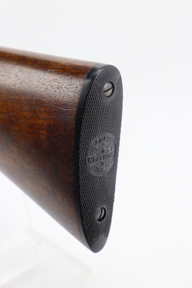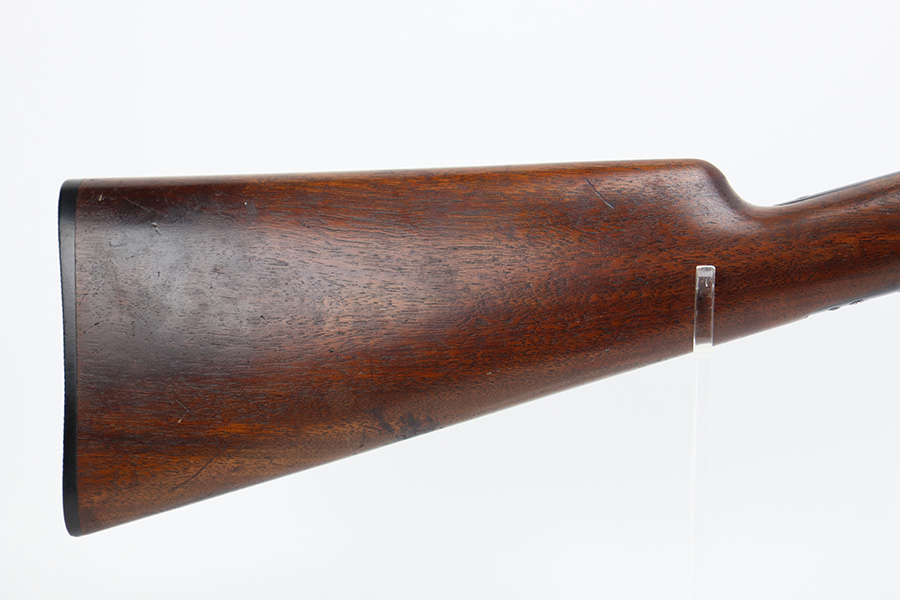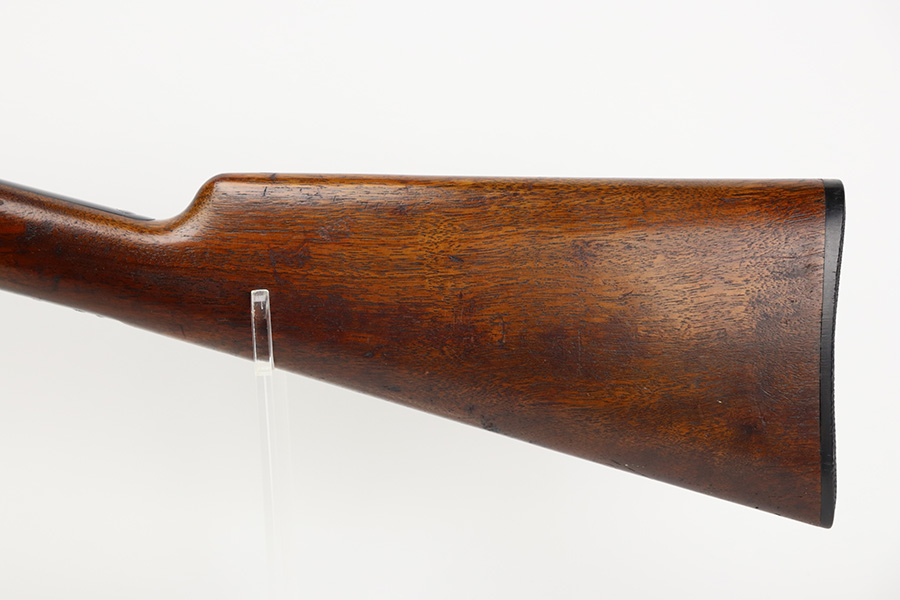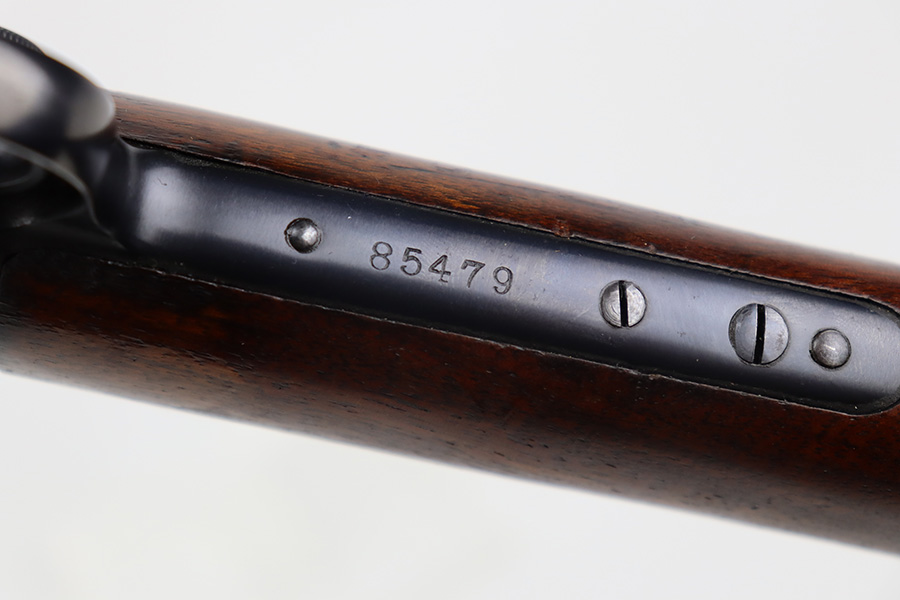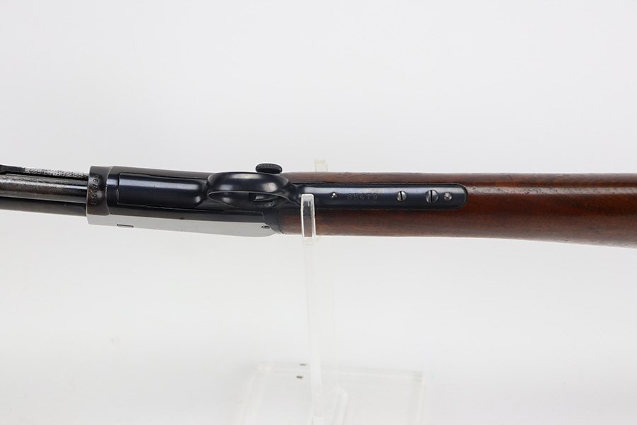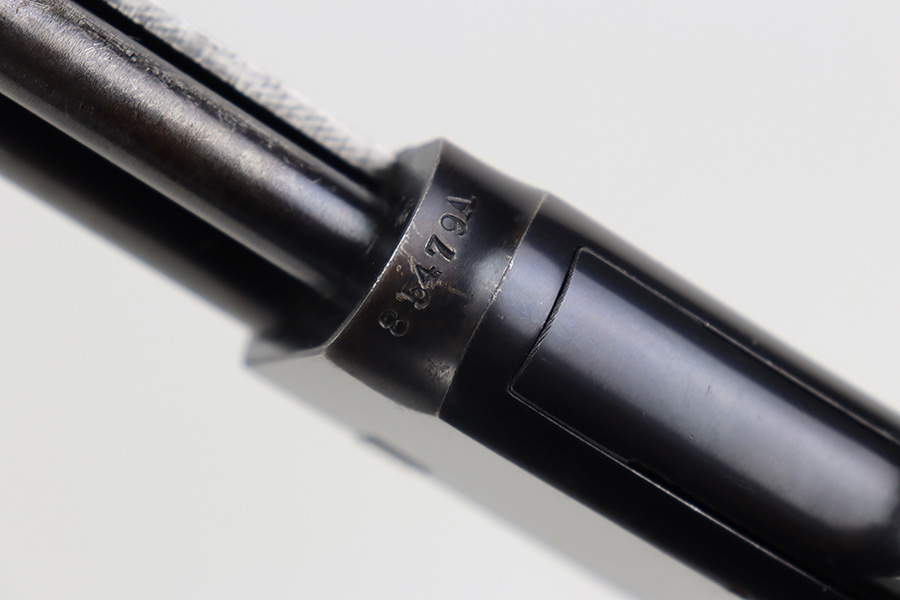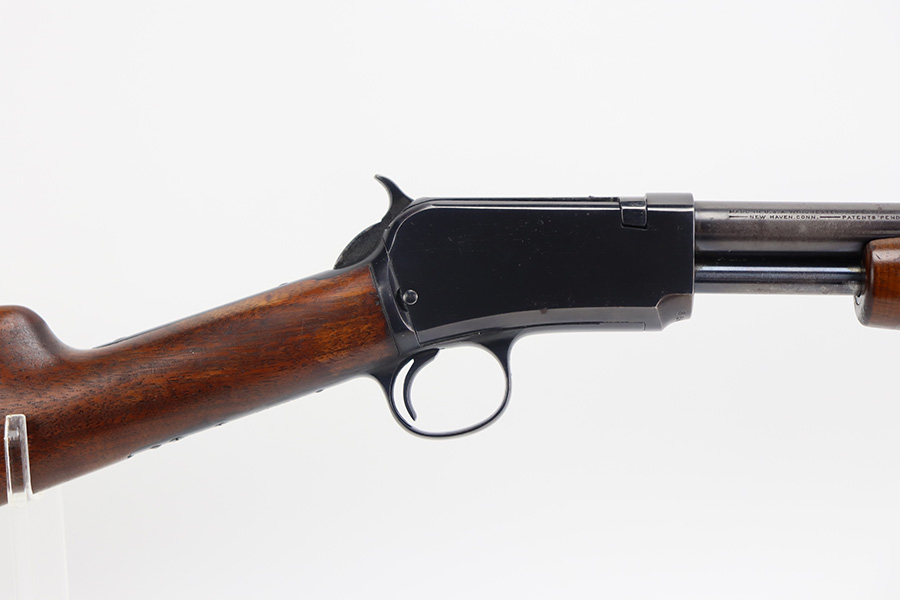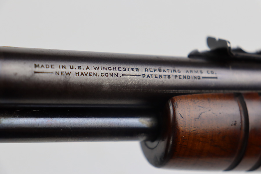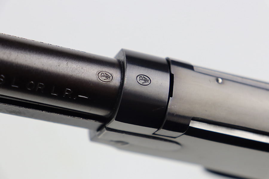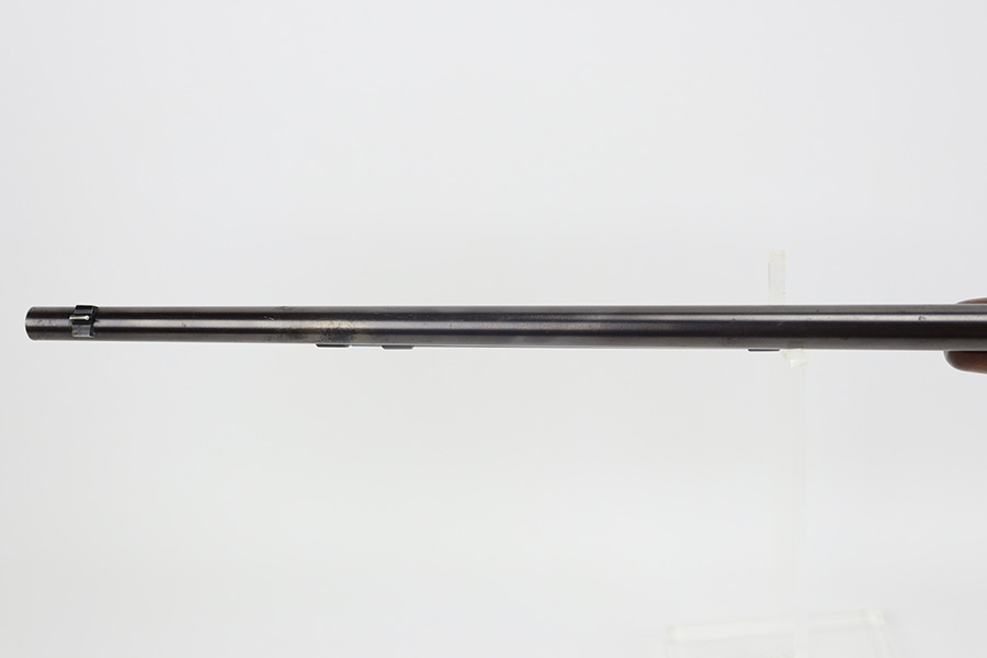 8/16/23 – This is a very nice example of a Winchester Model 62 pump action rifle, manufactured in 1939 and chambered in .22 short, long, and long rifle. It is matching and has retained about 92-93% of its original high polish bluing. The majority of the finish loss is along the barrel, where there are some areas of thinning. One noticeable spot of oxidation on the left side of the barrel. Some tiny surface scratches on the receiver. Excellent wood furniture. Mint bore.