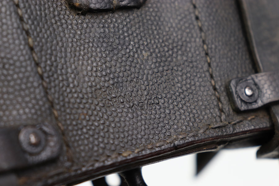 4/10/24 this is an original 1940, K98 Ammo Pouch from Early WWII. Maker and date stamped on the back. I cannot make out the maker. Leather is firm, but still pliable. all stitching, fasteners and closure straps are intact. The internal dividers are not present.