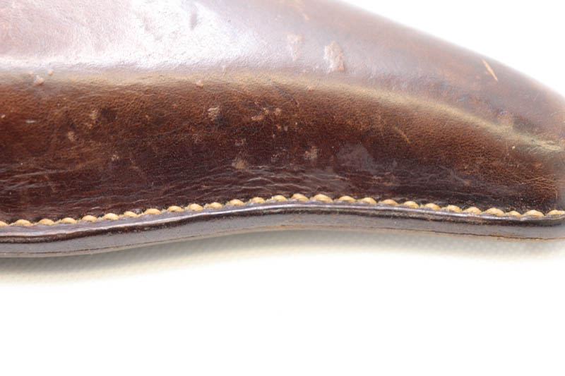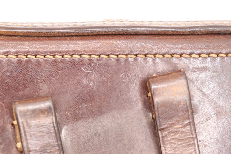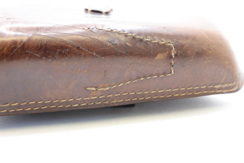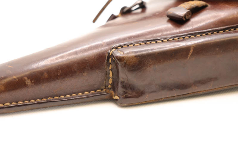 10/17/20 – This is an excellent, original WW2 German Luger holster. The holster has very nice, clean brown leather. The back of the holster is 1940 dated and waffen military proof stamped. The stitching and leather are all original. Overall excellent condition. There is some scuffing on the on the body and edges due to age and use.