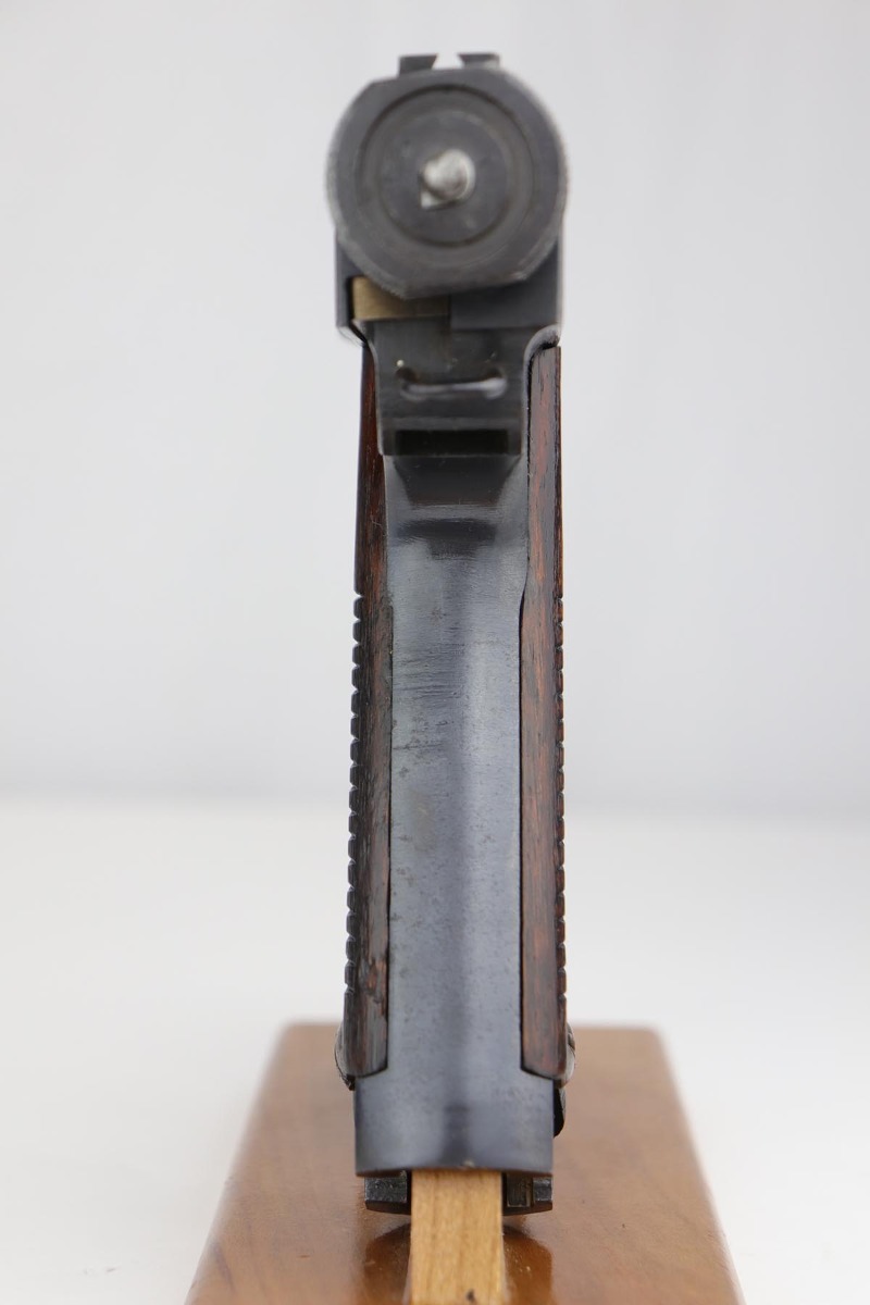 9/19/19 – This is a minty Japanese Nambu Type 14 pistol made in November of 1940. This particular gun is in minty condition overall. There is one small area of wear on the front strap and very minor pin-pricking on the back strap. All matching numbers. The grips are not numbered. The gun comes with a matching magazine that is in good condition. C&R eligible.