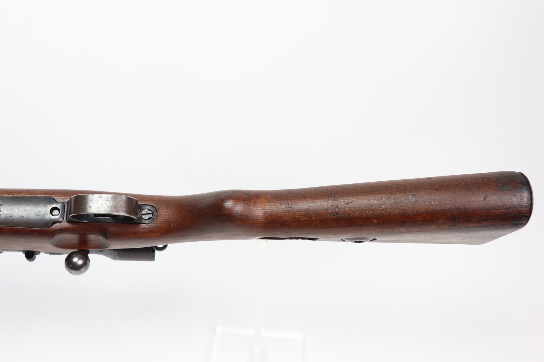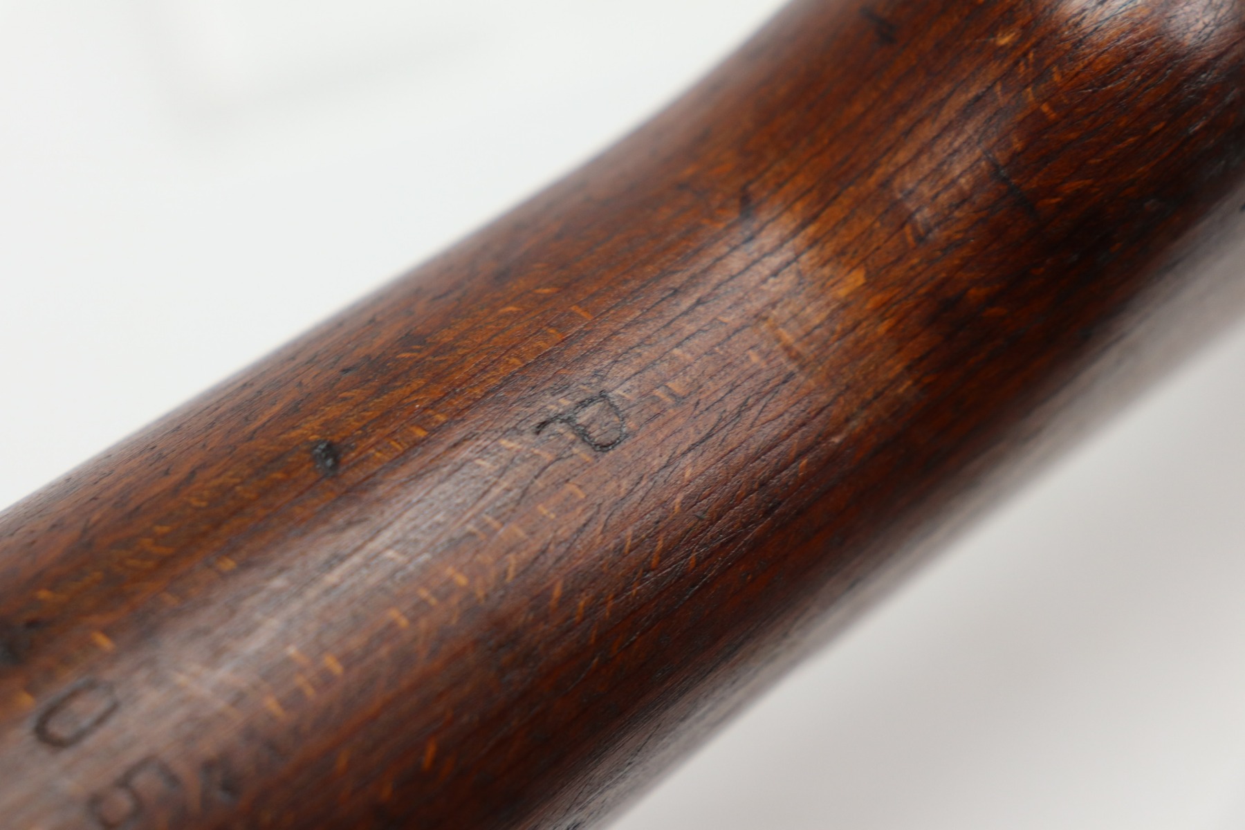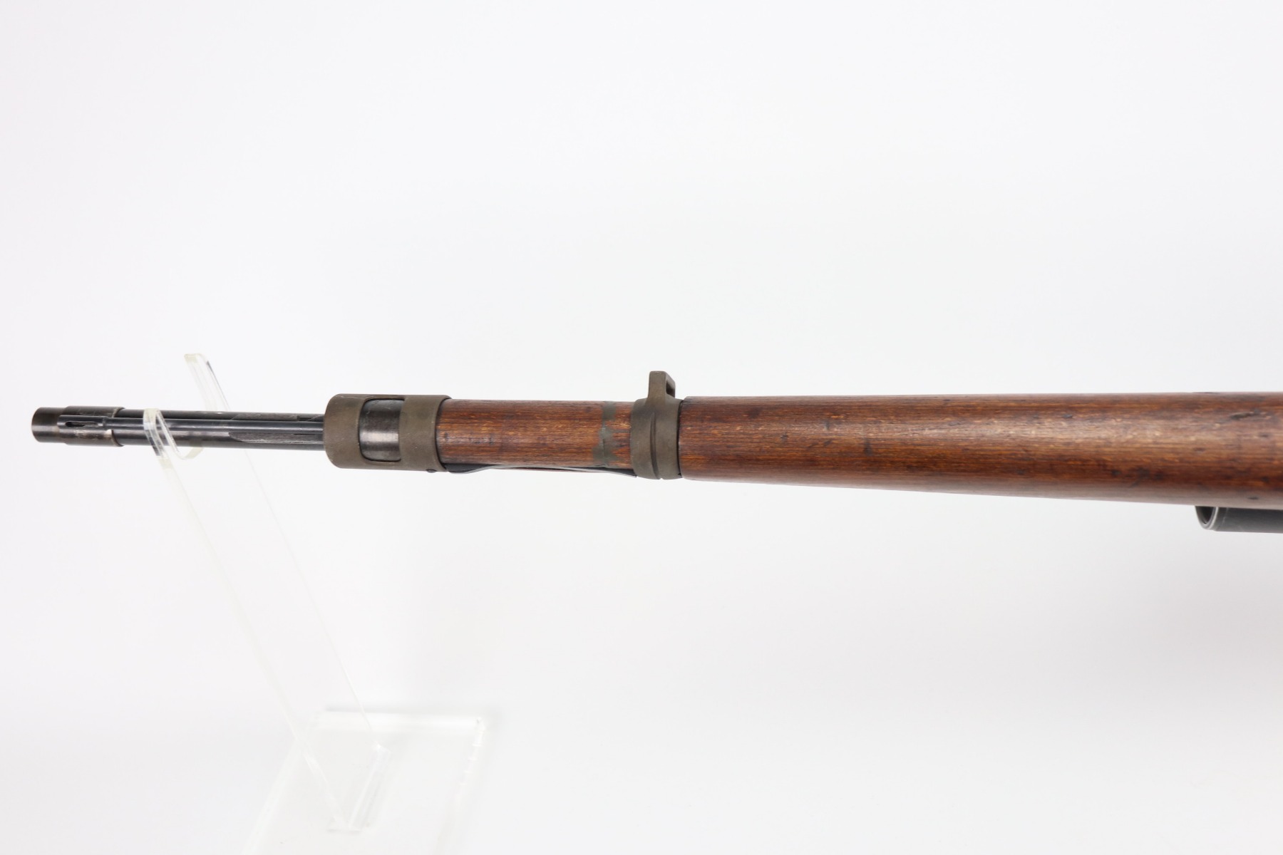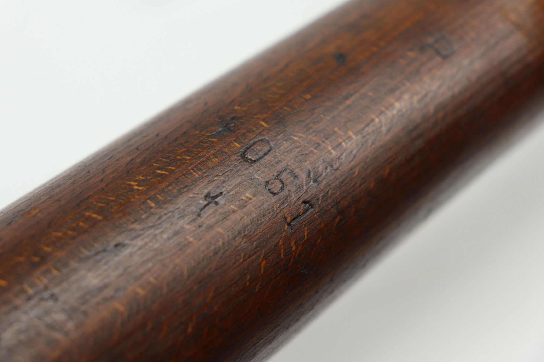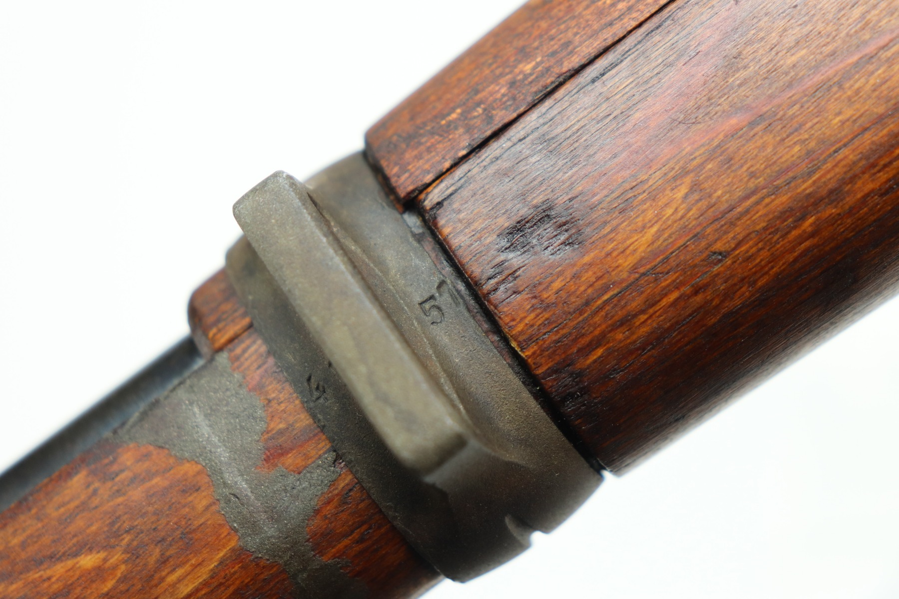 3/2/21 – This is an excellent example of a Mauser K98 issued to the Nazi military in 1940. This one is kitted out with a short side scope rail, scope mount, sniper-style safety lever, and a K. Kahles Wien H/6×49 sniper scope. The gun is all matching, including the stock. There are waffen proofs throughout including on the wrist and butt of the stock. Comes with original cleaning rod. The gun is fully functional and the action is smooth. The barrel bands have a parkerized finish, so may have been refinished. The stock looks like it was duffle-cut but has since been repaired. We believe the scope rail, mount, and safety lever are modern reproductions but work with the scope perfectly. The scope has very nice optics with just a hint of cloudiness. There is a piece of black tape near the front lens. The gun itself has retained the majority of its finish – just some minor handling marks and minor wear around the high edges of the receiver. Excellent stock with visible markings. The bore is excellent – shiny with strong rifling.