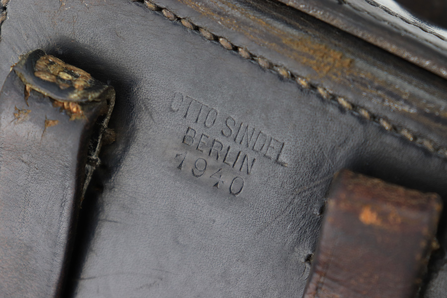 8/8/23 – This is an original 1940 dated Police Luger holster from WW2. The back leather is maker stamped, dated, and police eagle proof stamped. The police eagle is faint, but the outline is still visible under the date. The leather is in very good condition with normal pliability and light use wear throughout. The front toe and lid has some mild scuffs but no major issues. The back left belt loop has a repair and is likely a replacement, but looks period correct. No stitching issues.