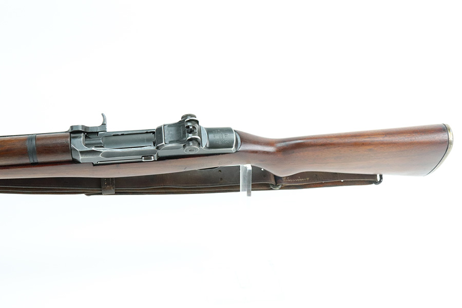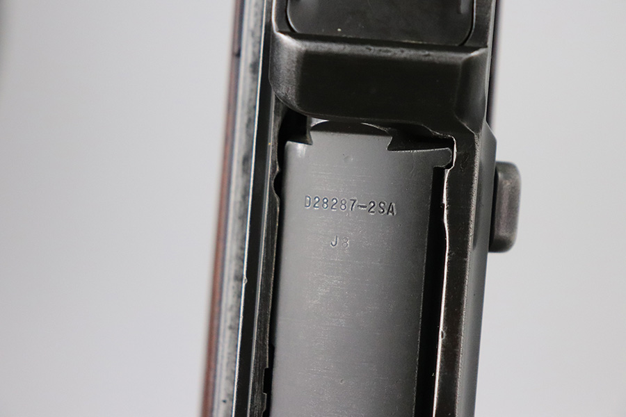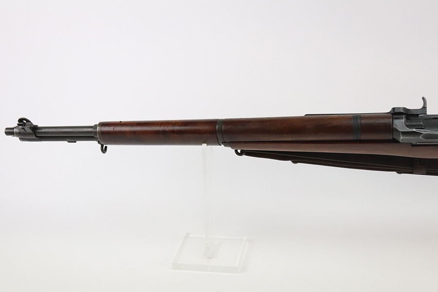4/3/23 – This is a rare find of a mostly all-correct 1940 M1 Garand in very nice condition. Barrel date is 12 of 1940. It has a mint bore, muzzle 1.75 and a throat of 1.5. The chamber is still in the white. Early marked correct gas cylinder with sight cap still in place. The wood is in very good condition, has light but clear cartouches and was likely steel-wooled at some point. All parts are correct including the flush nut sights with both knobs checkered. All correct internals with the exception of the correct but modified -2 op rod. Not British proofed. Barrel was re-parkerized.