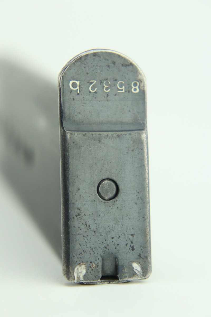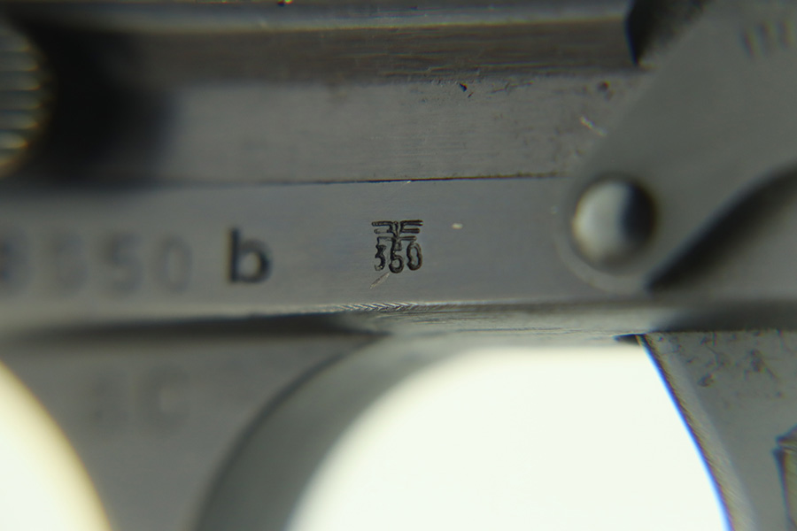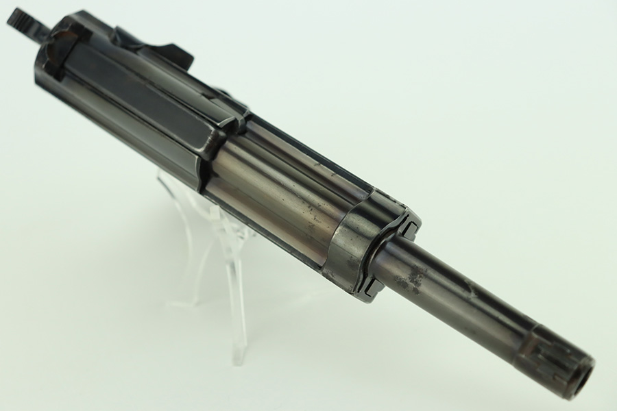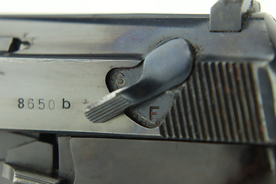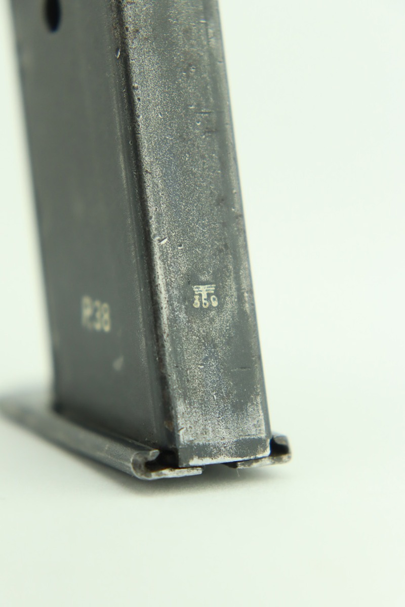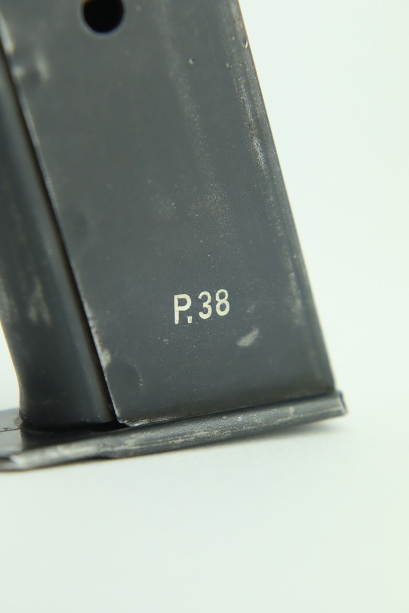 1/12/24 – This is a very nice example of an AC 40 Walther P.38 issued to the Nazi military in 1940. It is all matching with the proper “Eagle 359” military acceptance proofs throughout. Its original high polish finish rates about 94-95%. There is thinning on the front strap, general high edge wear, wear around the muzzle, and a few small dots of wear on the left side of the barrel. While there is very little actual finish loss, there are small spots of pitting here and there. Fitted with original matching-numbered grips. Comes with a mismatched but close-in-number magazine. Like-new bore. De-cocker is functional.
