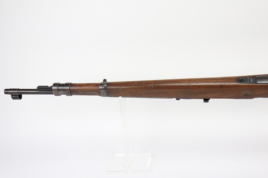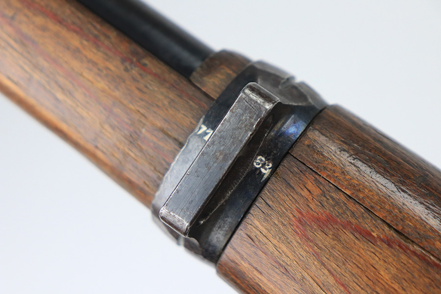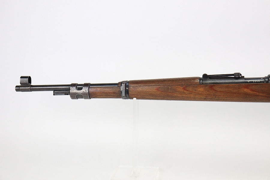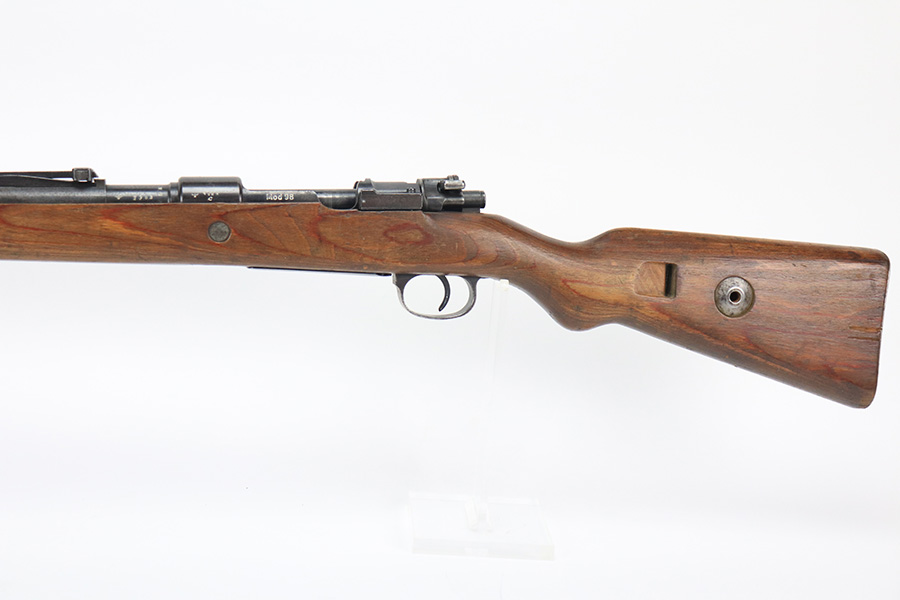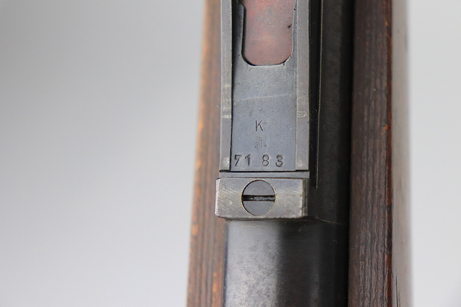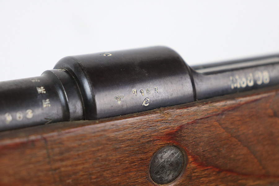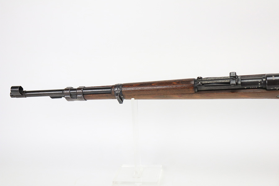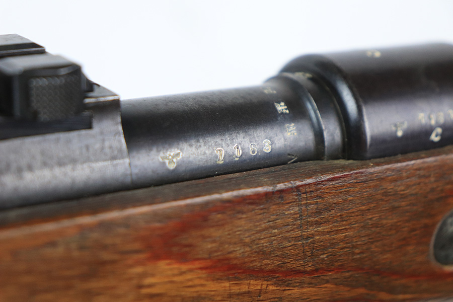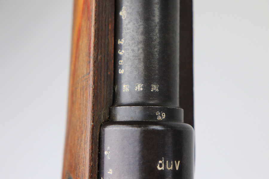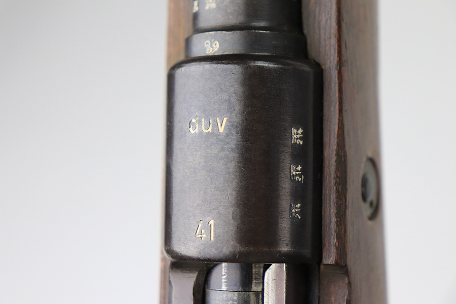 1/26/22 – This is a very nice example of a Berlin-Lubecker K98 issued to the Nazi military in 1941. The gun is almost entirely matching including the stock, butt plate, and rear sight. The only mismatched part is the bolt. The chamber is dated 1941 and has the “duv” Berlin-Lubecker factory code. Nazi military acceptance proofs throughout. Generally, there is minor wear concentrated around the high edges and some minor thinning on the barrel, barrel bands, and floor plate. Small dots of oxidation covering most of the metal parts. The stock is very nice with only minor dings, dents, and bruises here and there. There are visible waffen proofs on the wrist and right side of the butt stock. The bore is very nice overall, but there is an area of noticeable oxidation about halfway down the barrel.