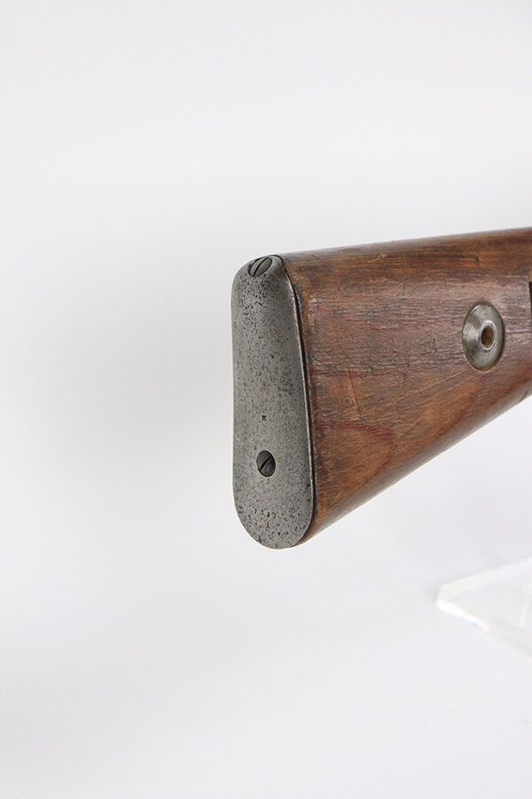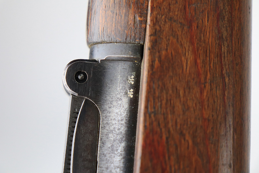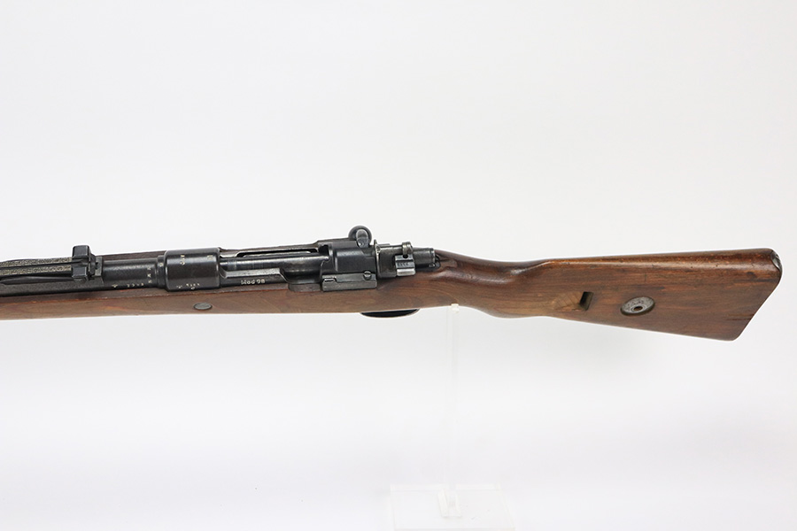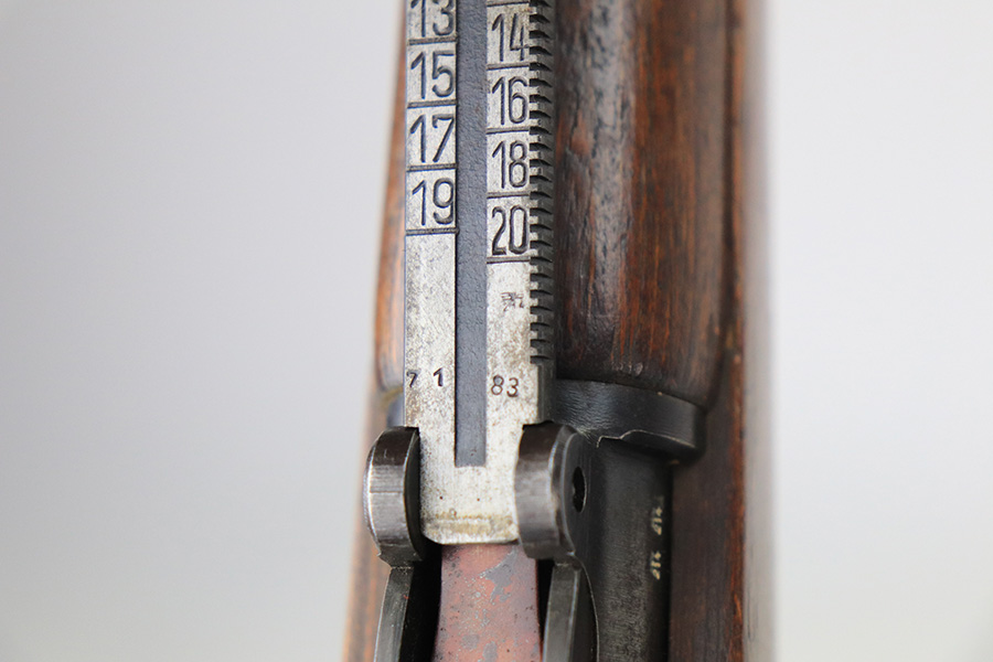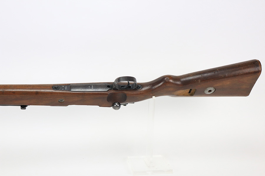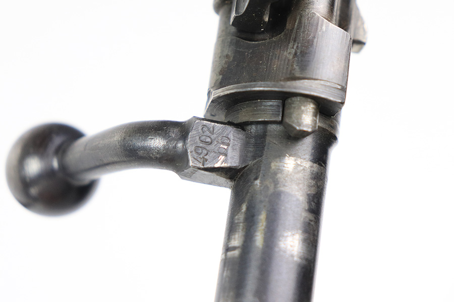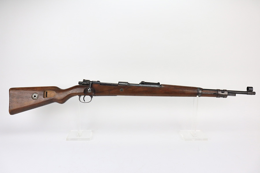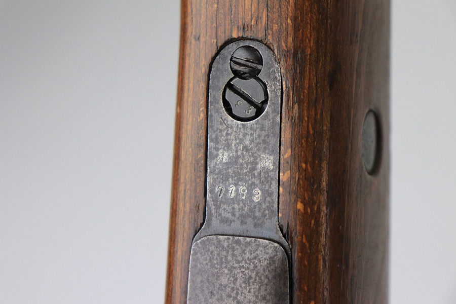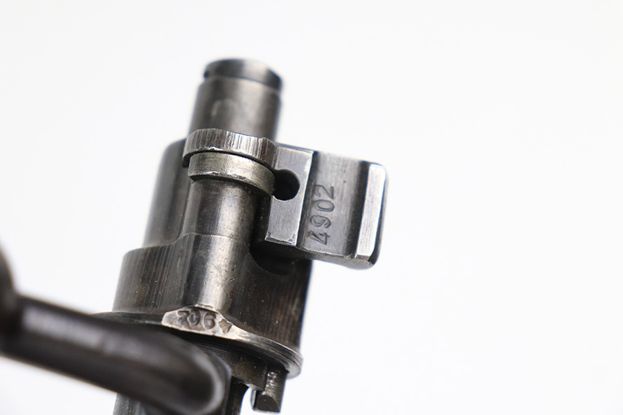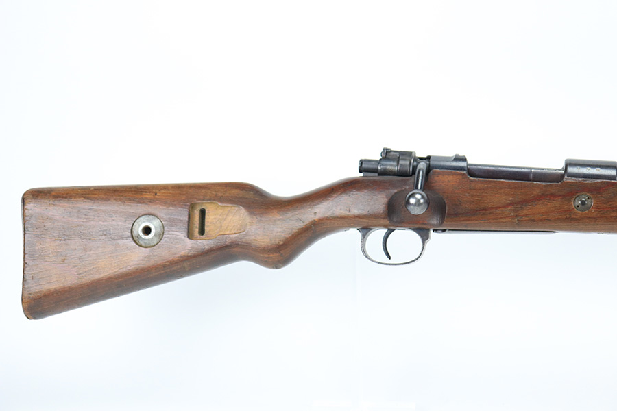 1/26/22 – This is a very nice example of a Berlin-Lubecker K98 issued to the Nazi military in 1941. The gun is almost entirely matching including the stock, butt plate, and rear sight. The only mismatched part is the bolt. The chamber is dated 1941 and has the “duv” Berlin-Lubecker factory code. Nazi military acceptance proofs throughout. Generally, there is minor wear concentrated around the high edges and some minor thinning on the barrel, barrel bands, and floor plate. Small dots of oxidation covering most of the metal parts. The stock is very nice with only minor dings, dents, and bruises here and there. There are visible waffen proofs on the wrist and right side of the butt stock. The bore is very nice overall, but there is an area of noticeable oxidation about halfway down the barrel.