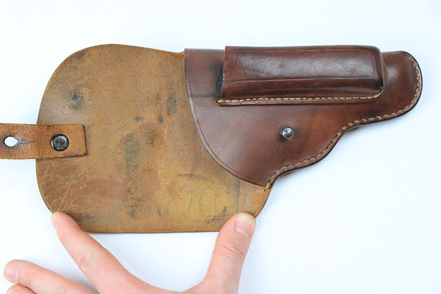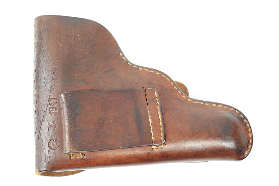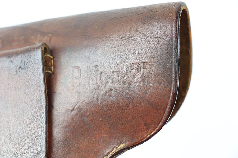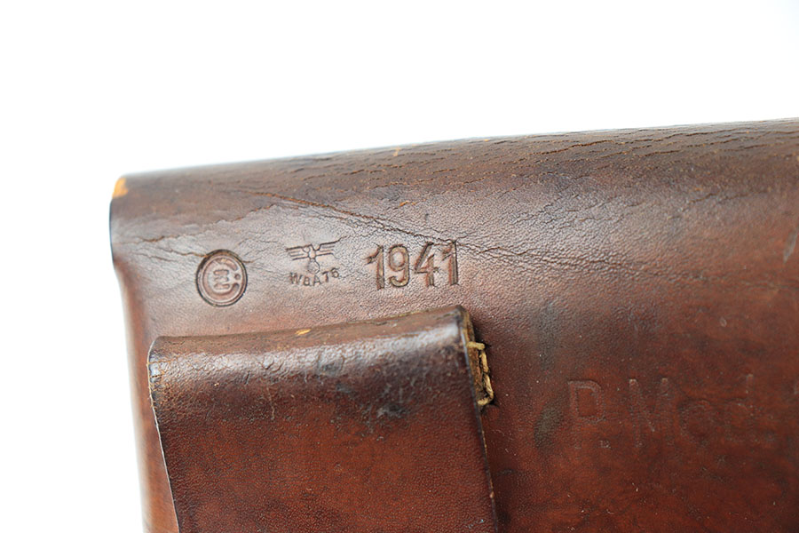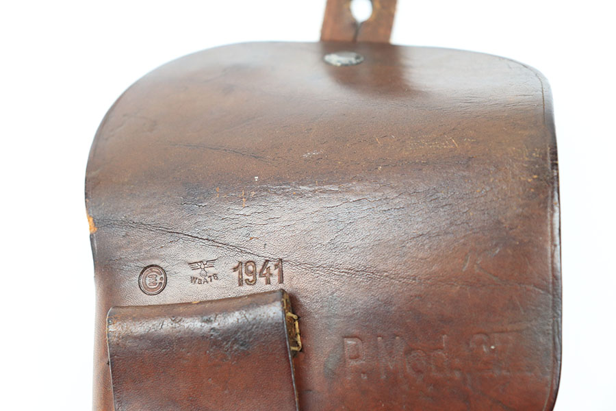 9/14/21 – This is an original 1941 dated CZ model 27 holster. The holster is in great overall condition despite a few missing stitches on the back belt loop. This is very minor, and the rest of the stitching is original and in tact. The leather is firm with mild pliability. Maker stamped, waffen proofed, dated, and P.Mod 27 stamped on the back leather.