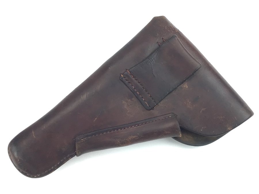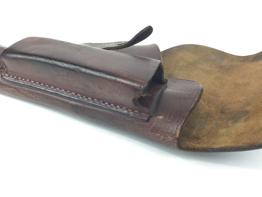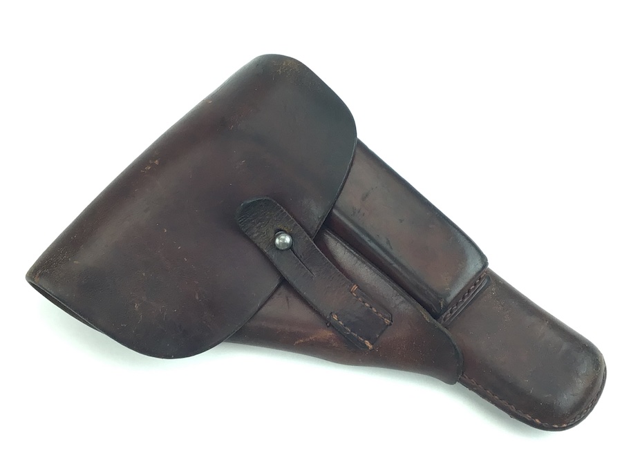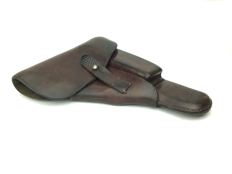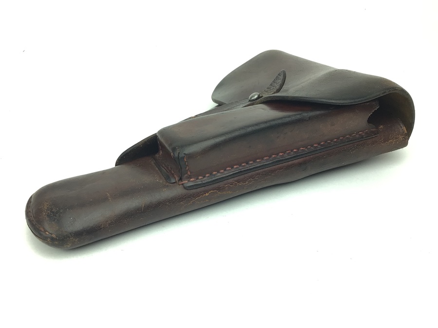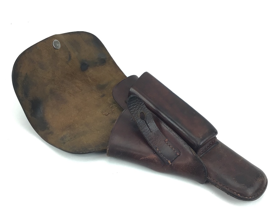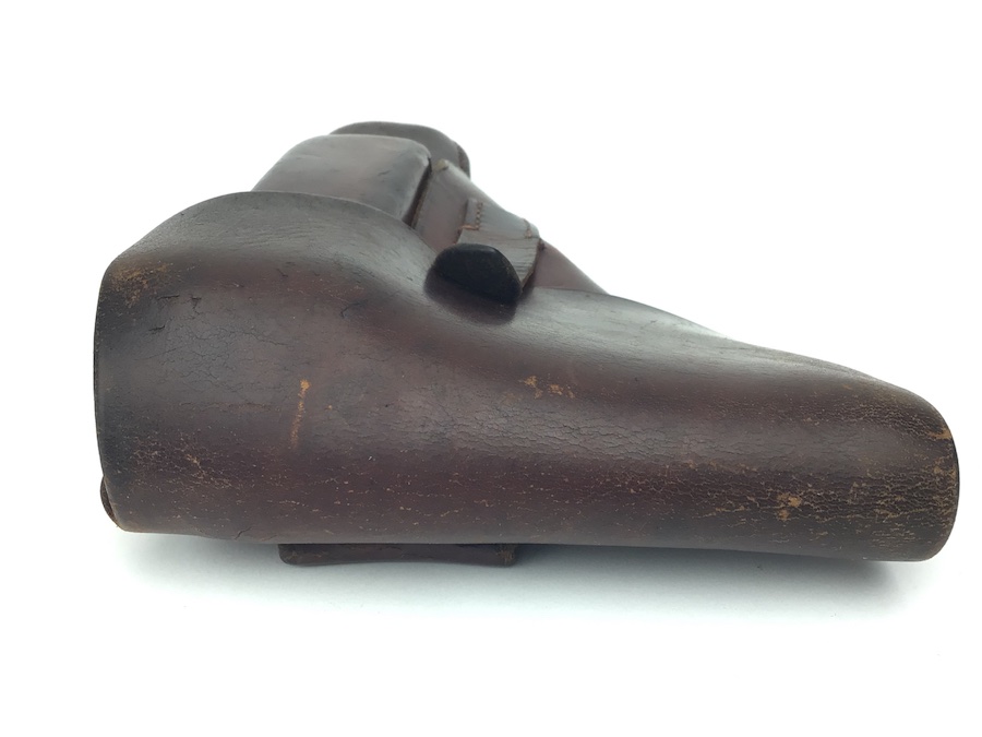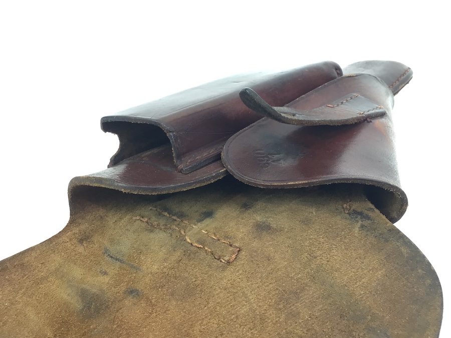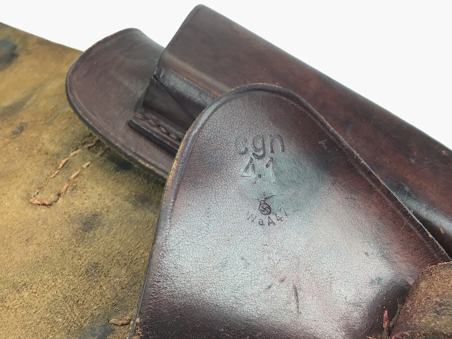 8/18/21 – This is a fairly scarce WW2 high power holster. The holster is scarce because it’s 1941 dated, which is a hard year to come by for the high power holsters. The holster is in great overall condition with some mild surface wear but no major damage to the leather. The interior leather shows normal signs of use. All original stitching in tact. Maker stamped “cgn” as well as “41” date and waffen proof “WaA47” under the closure strap.