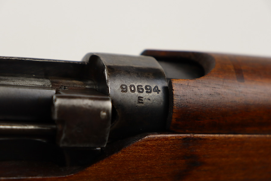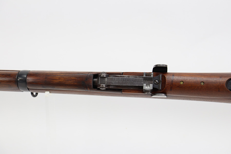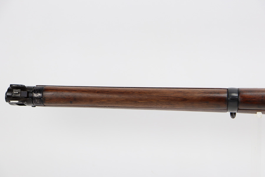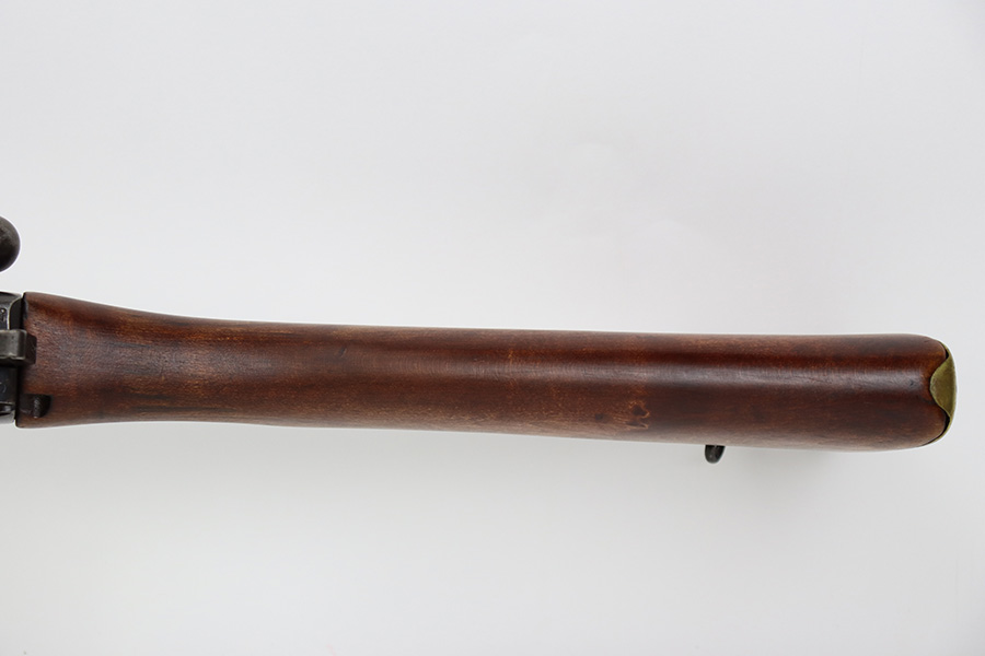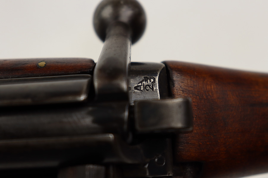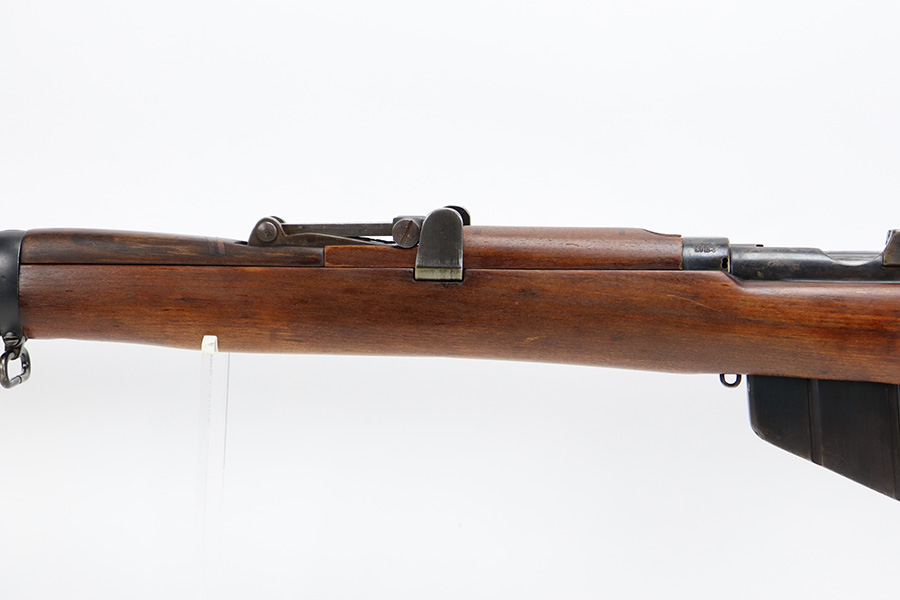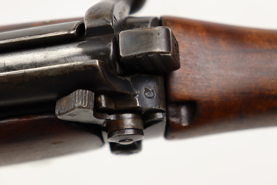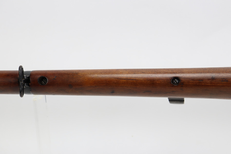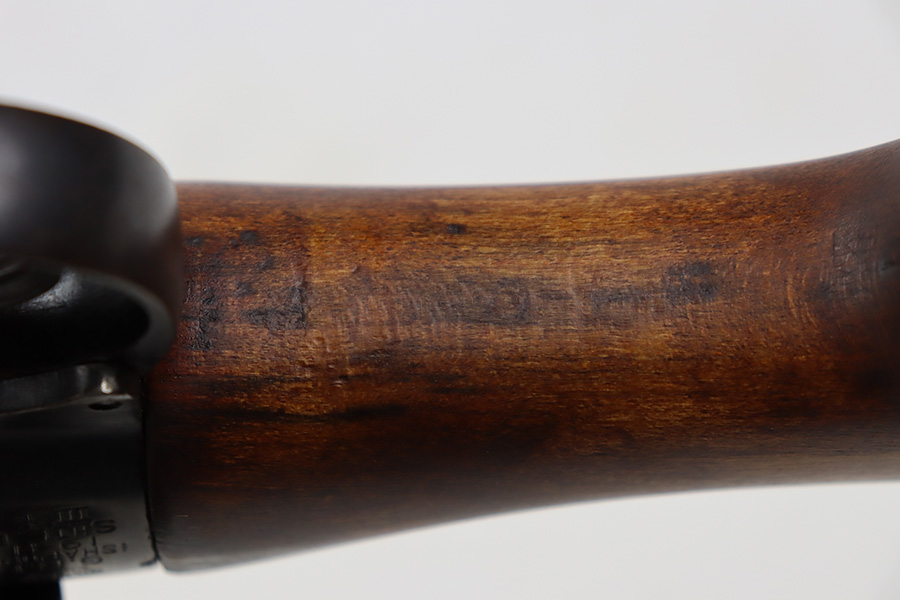 7/25/23 – This a nice example of an Enfield SHTLE III* manufactured by Ishapore in India in 1941. The bolt handle matches the receiver, but the rear part of the bolt and stock are mismatched. No import marks. The metal parts have retained roughly 85% of their finish with general high edge wear and some splotchy discoloration on the receiver. Minty wood stock that has been sanded. The bore has good rifling, but there is pin-pricking throughout.