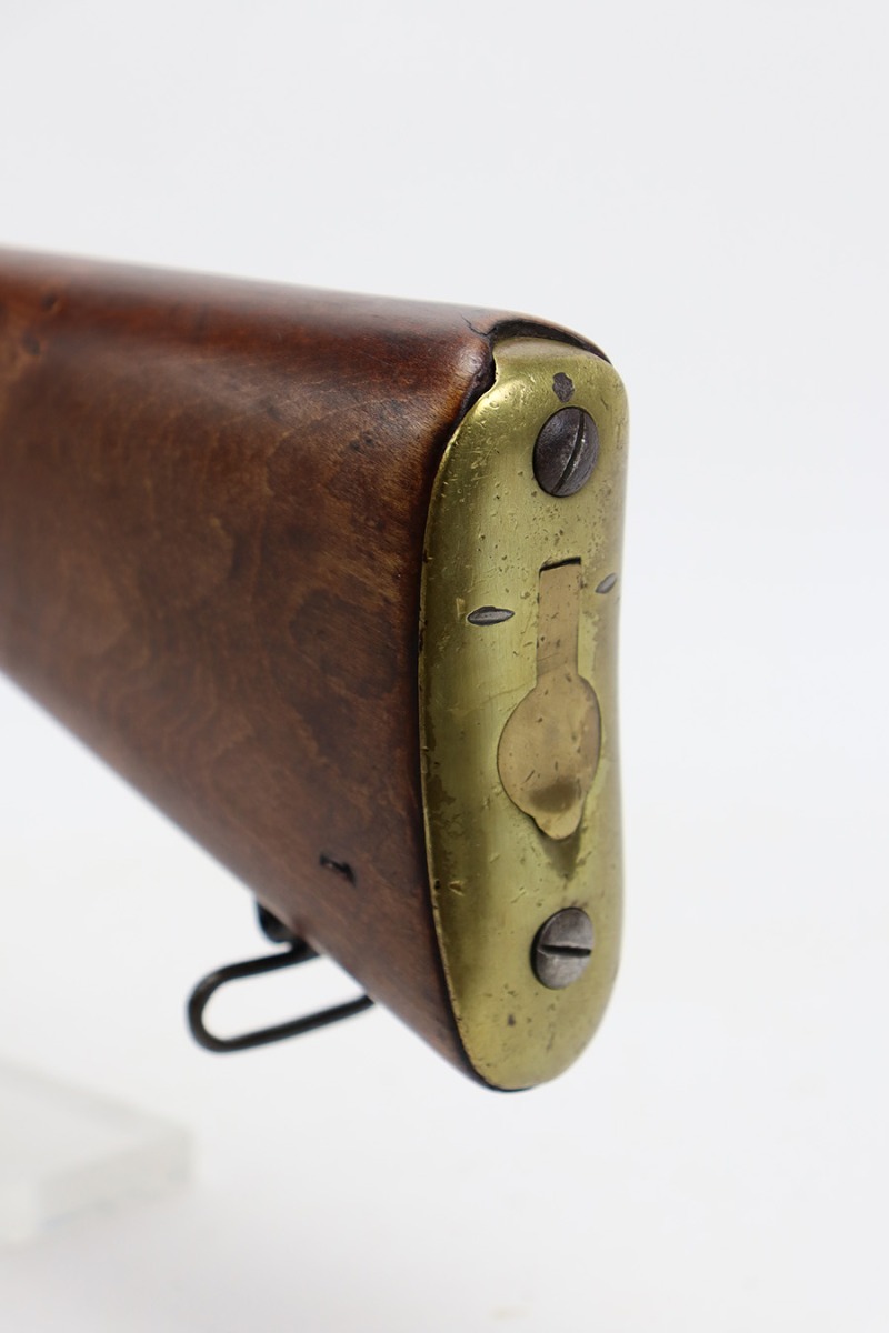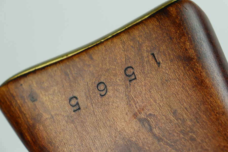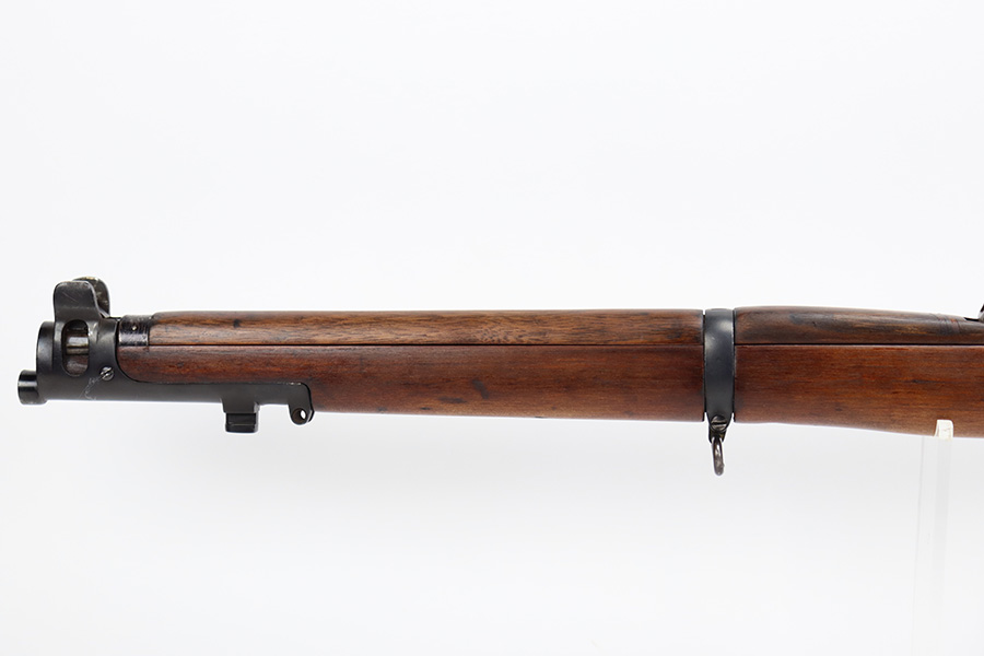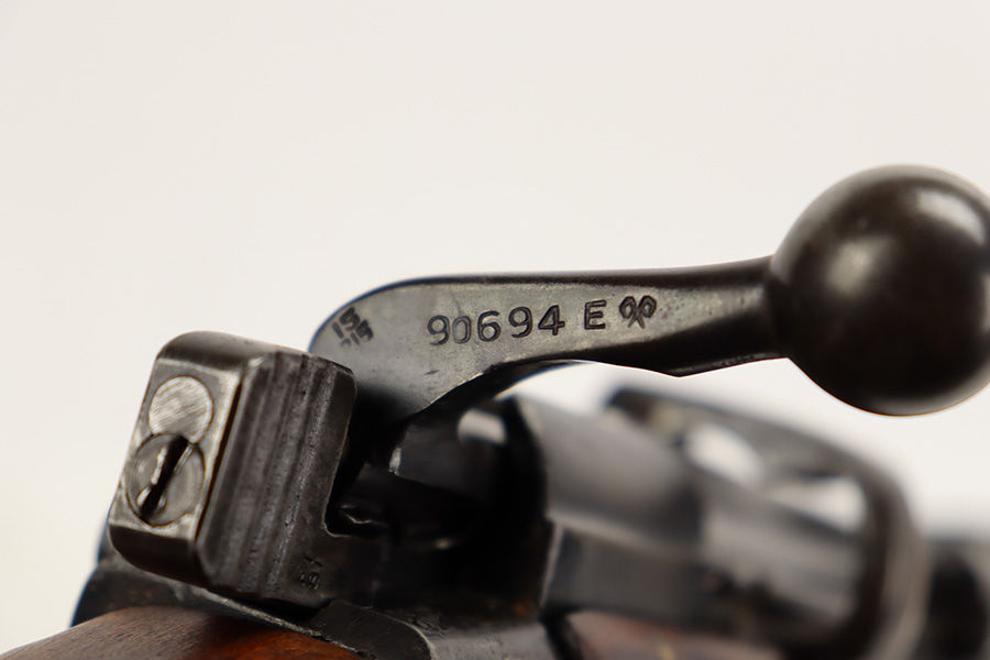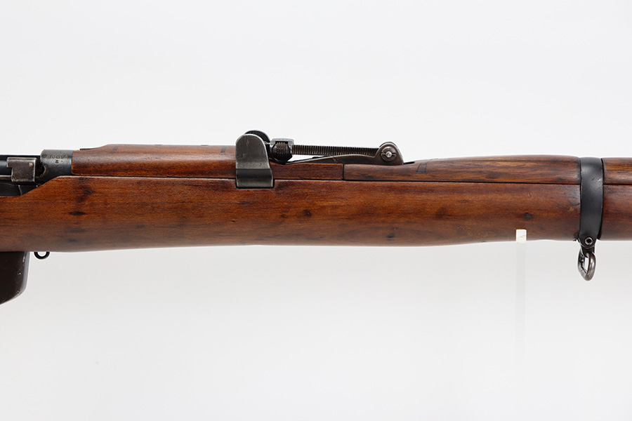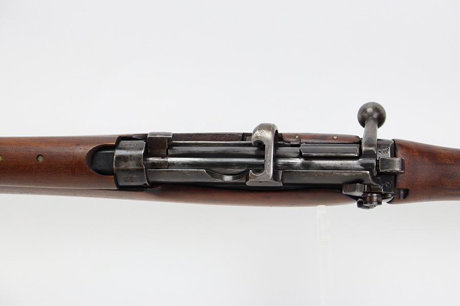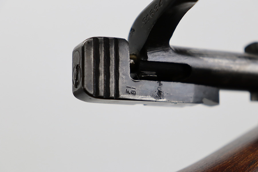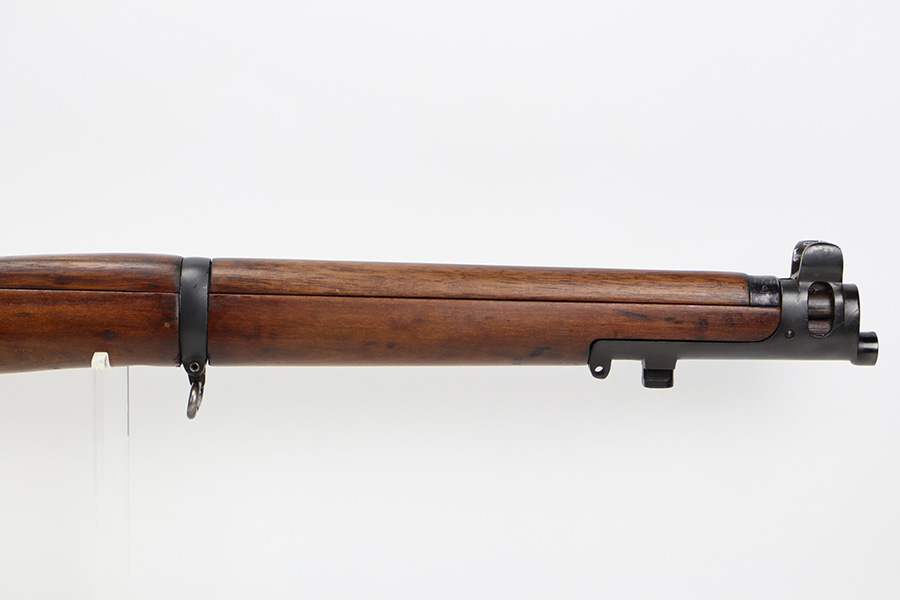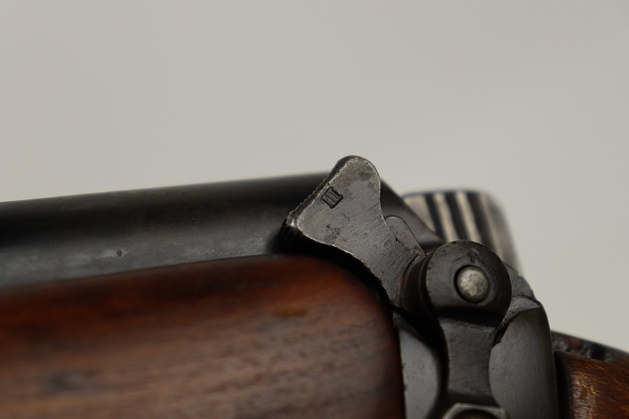 7/25/23 – This a nice example of an Enfield SHTLE III* manufactured by Ishapore in India in 1941. The bolt handle matches the receiver, but the rear part of the bolt and stock are mismatched. No import marks. The metal parts have retained roughly 85% of their finish with general high edge wear and some splotchy discoloration on the receiver. Minty wood stock that has been sanded. The bore has good rifling, but there is pin-pricking throughout.