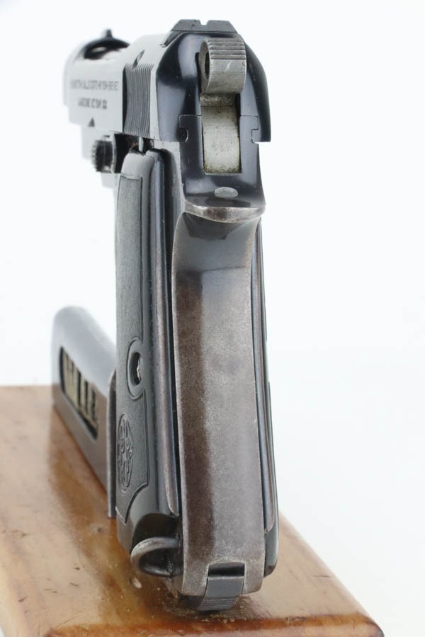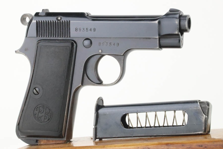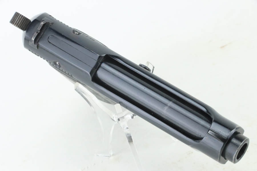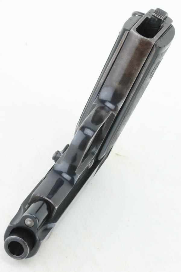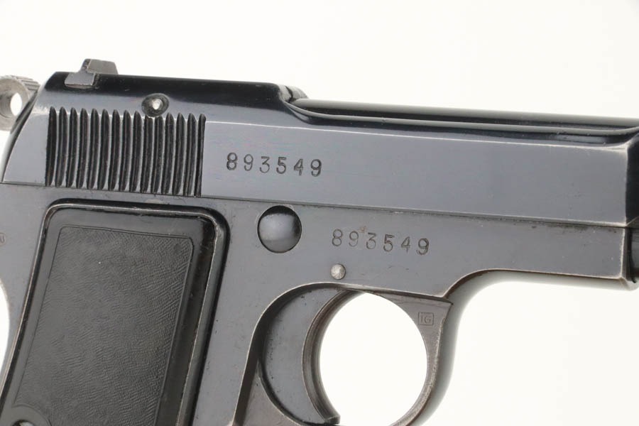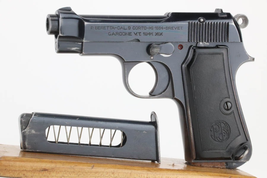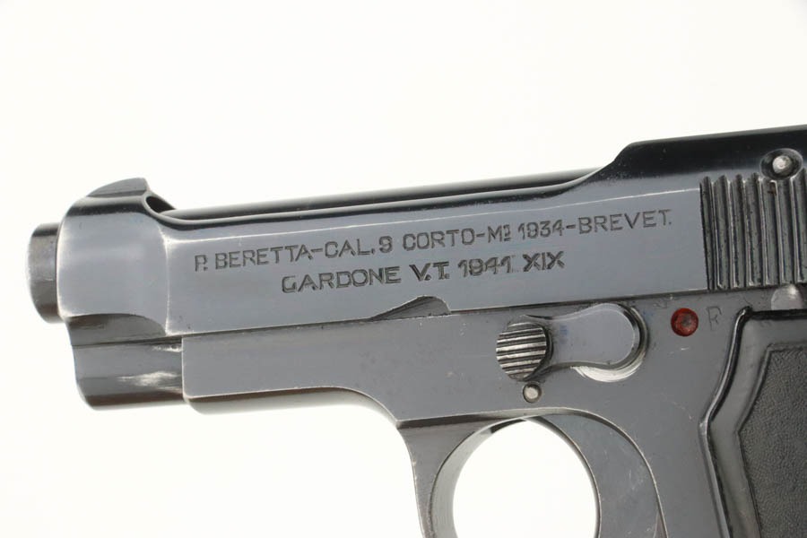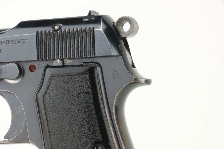 11/1/24 – This is a nice example of a Beretta Model 1934 issued to the Italian military in 1941. All matching with the proper “Crown RE” military acceptance proof. It has retained somewhere between 85-90% of its original high polish finish. The majority of the finish loss is on the grip straps, where there is also some brown patina. Excellent profile views. Fitted with excellent black bakelite grips and comes with a flat-bottom magazine. The bore has pretty good rifling, but there is noticeable pin-pricking throughout.