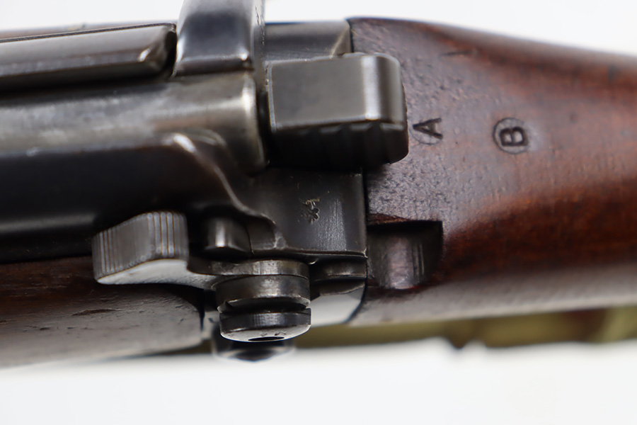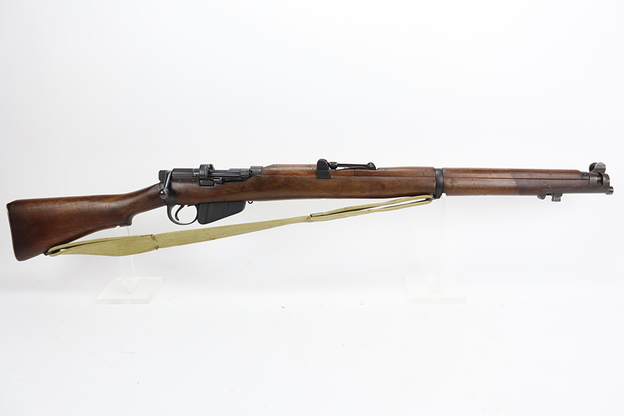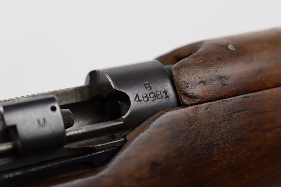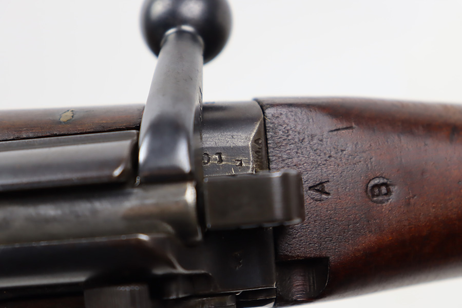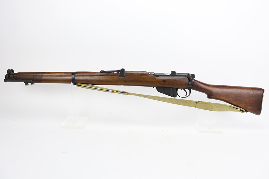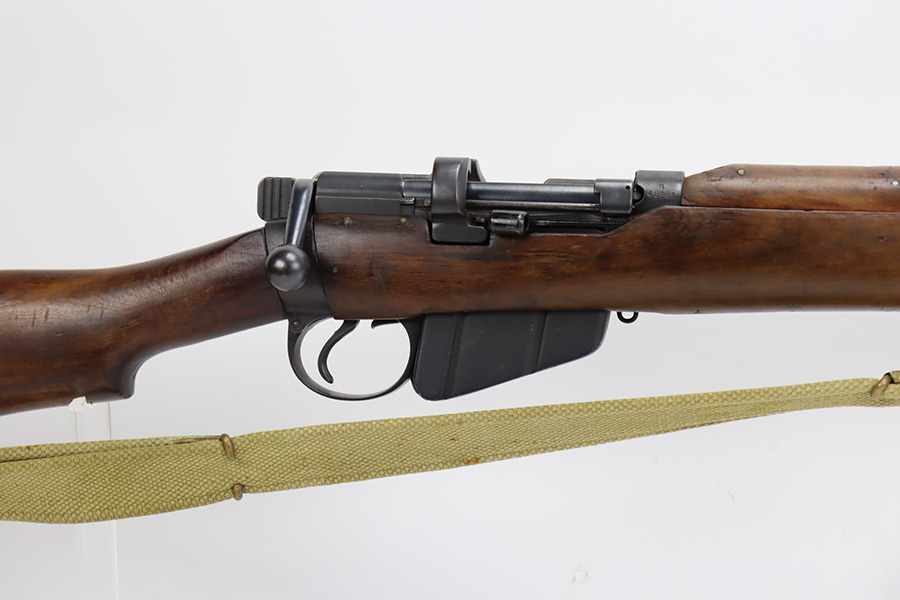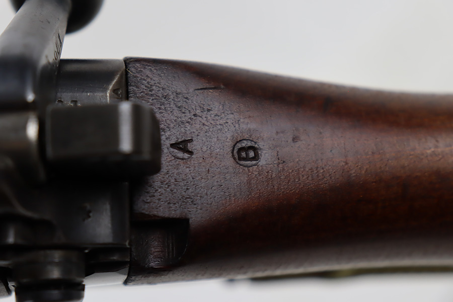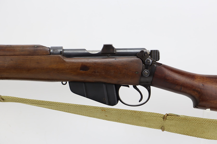9/29/23 – This is a very nice Lithgow SMLE III from 1941. It is all matching with British proofs throughout. There is an “MAO SMLE III* HV 1944” marking on the left side of the butt stock. We assume this to mean it was reworked in 1944. The finish rates about 94% with just general minor high edge wear and some light scuffs here and there. Very nice wood stock that appears to have been lightly sanded. Minty bore. Comes with canvas sling.