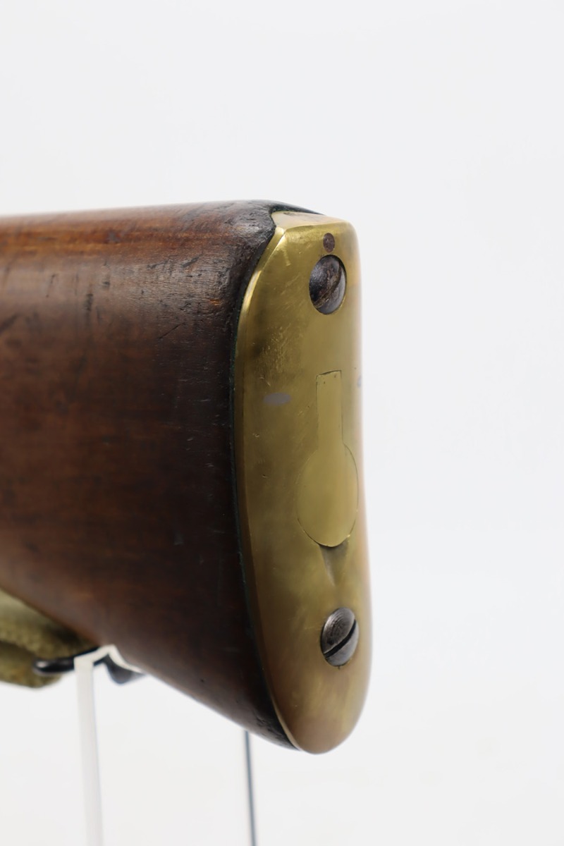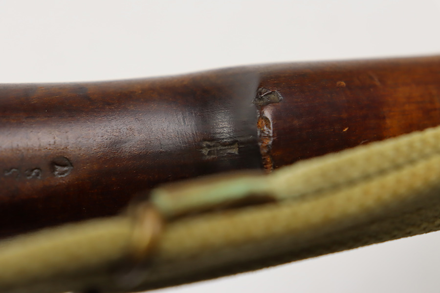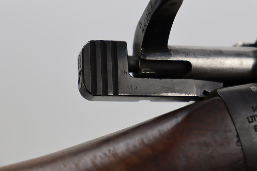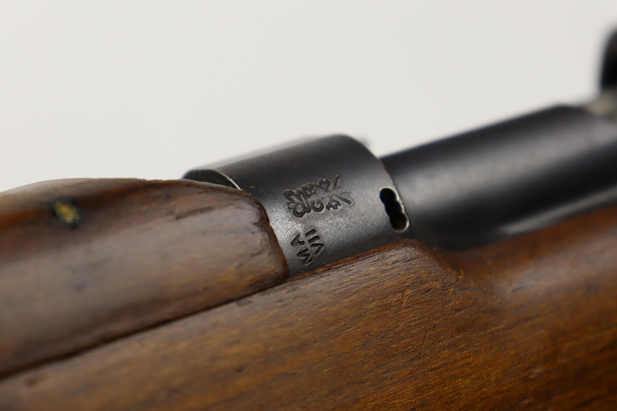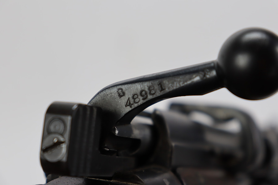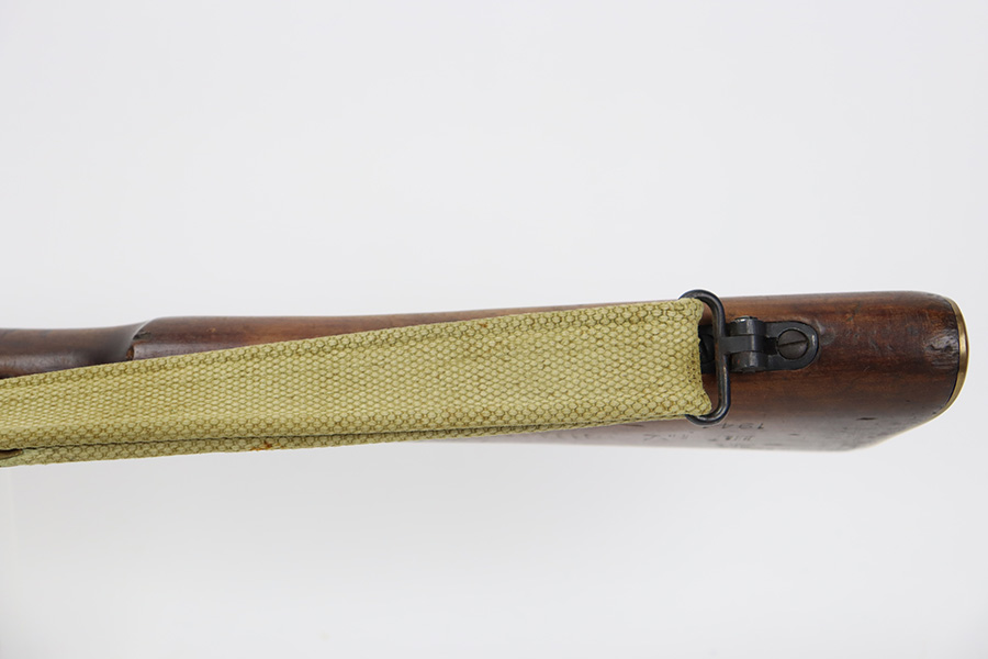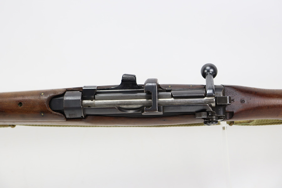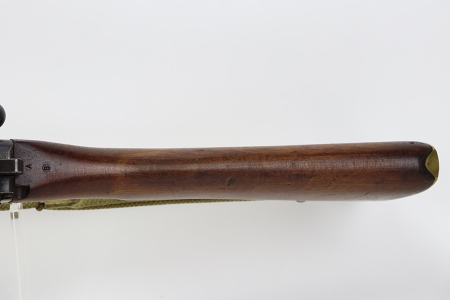 9/29/23 – This is a very nice Lithgow SMLE III from 1941. It is all matching with British proofs throughout. There is an “MAO SMLE III* HV 1944” marking on the left side of the butt stock. We assume this to mean it was reworked in 1944. The finish rates about 94% with just general minor high edge wear and some light scuffs here and there. Very nice wood stock that appears to have been lightly sanded. Minty bore. Comes with canvas sling.