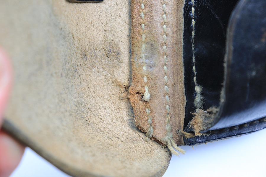 1/28/22 – This is an original 1941 dated Luger holster from WW2. The holster is in great overall condition despite a small hole in the top leather. Shown in photos. The rest of the leather is intact with normal pliability and some very mild surface wear. Fairly clean interior leather. No stitching issues. Maker stamped, dated, and waffen proofed on the back leather.