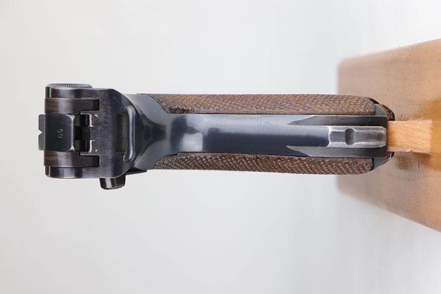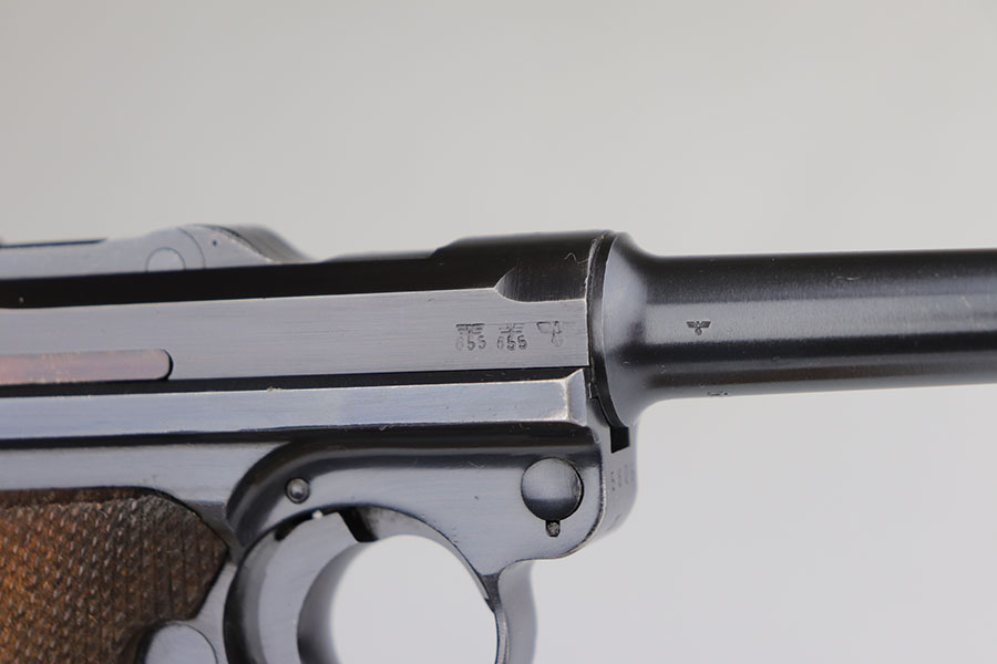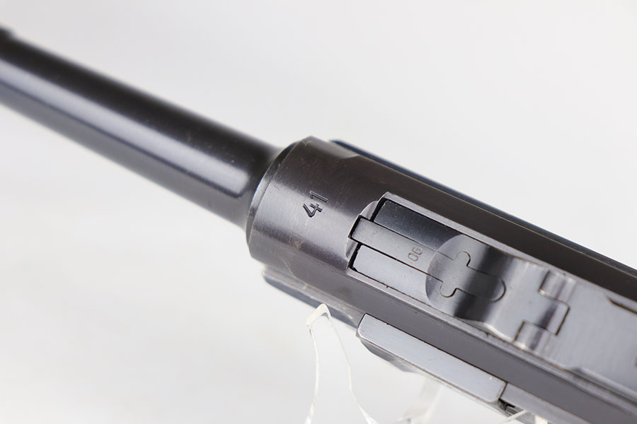 7/13/20 – This is an excellent example of an all matching and original Mauser Luger from 1941, with the original matching grips and magazine. It has about 95% of the original blue, with standard high point wear, but majority of the finish loss is found on the front of the trigger guard and bottom of the front strap. The original matching grips are present and in mint condition. Bore is mint too.