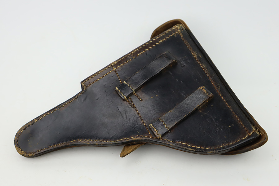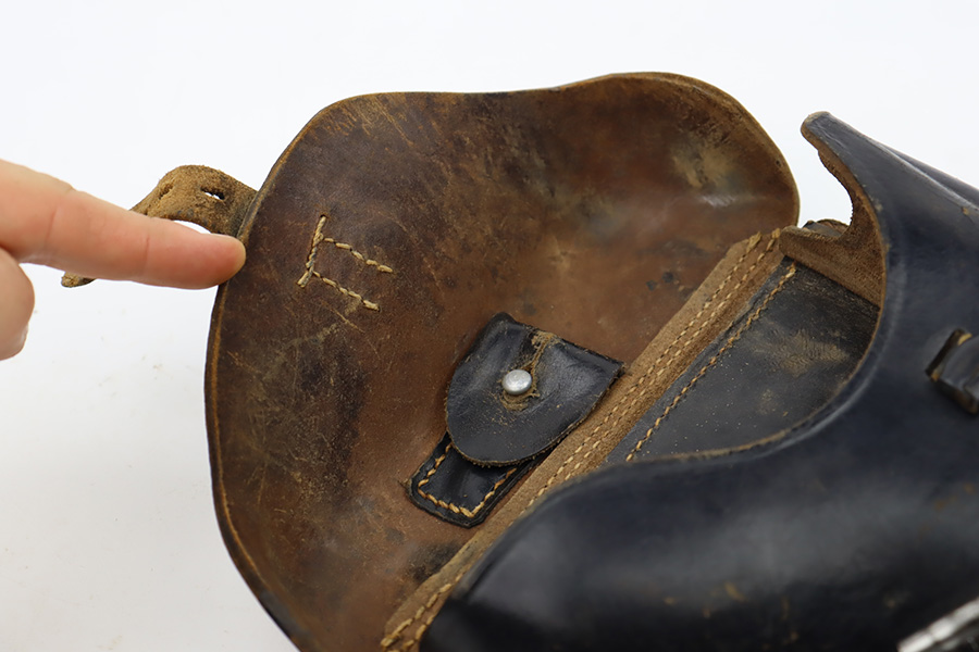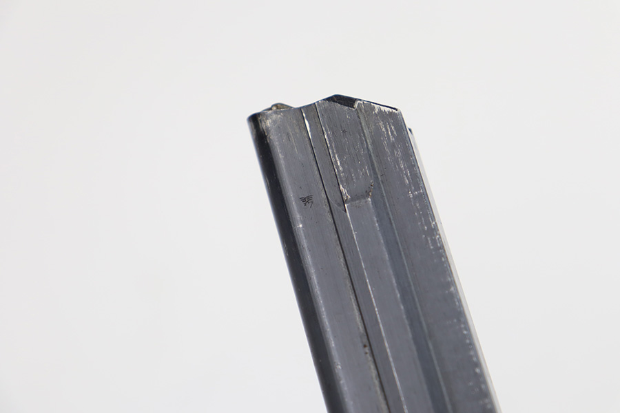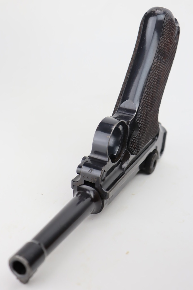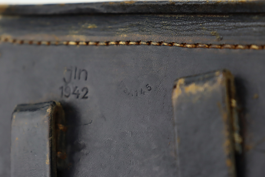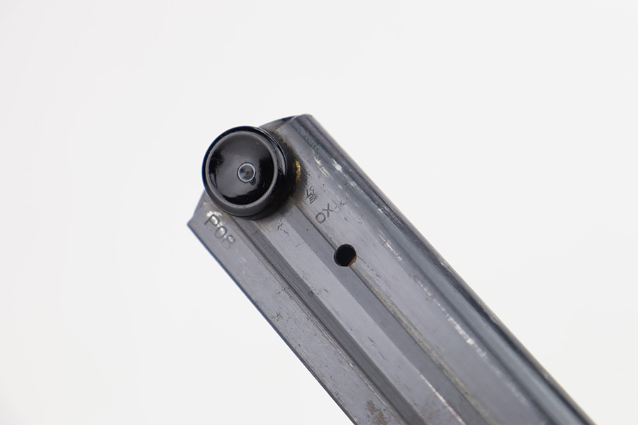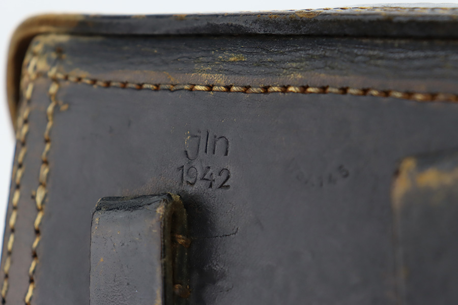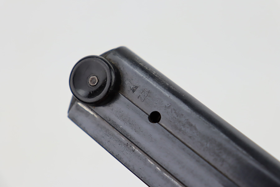 11/1/23 – This is an excellent example of a BYF 41 Mauser Luger issued to the Nazi military in 1941. All matching with the proper “Eagle 655” military acceptance proofs. It comes as a rig with a 1942-dated holster and two period-correct “black widow” magazines. The gun itself has retained about 94% of its original finish. There is just minor general high edge wear, some tiny scratches here and there, and some areas of very light freckling. Fitted with excellent matching-numbered and “Eagle 655” proofed grips – tiny chip in the upper corner of the left panel. Very nice bore with great rifling.