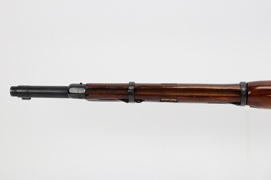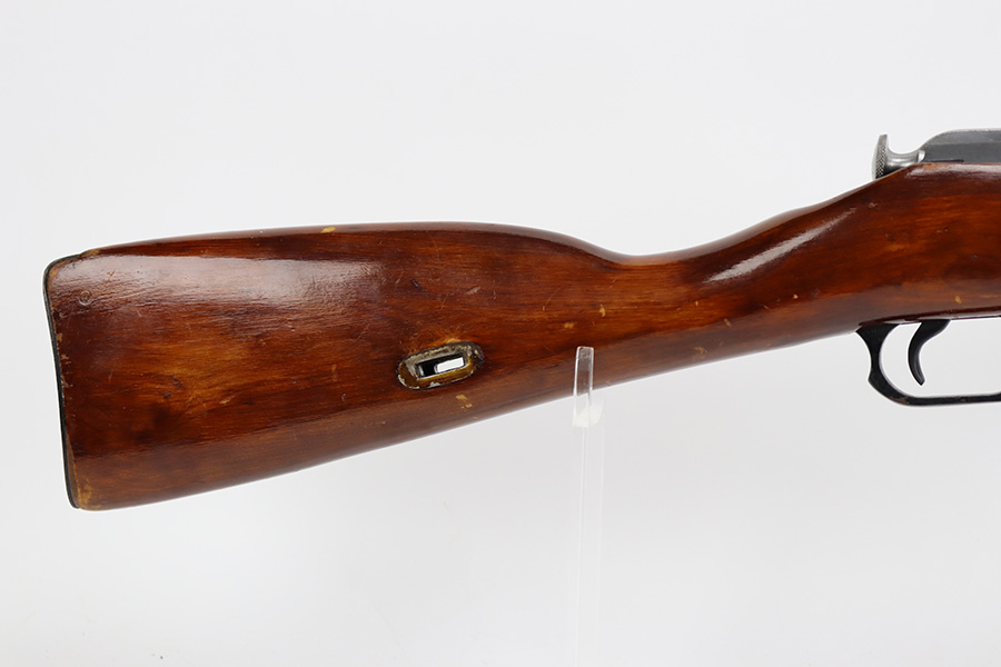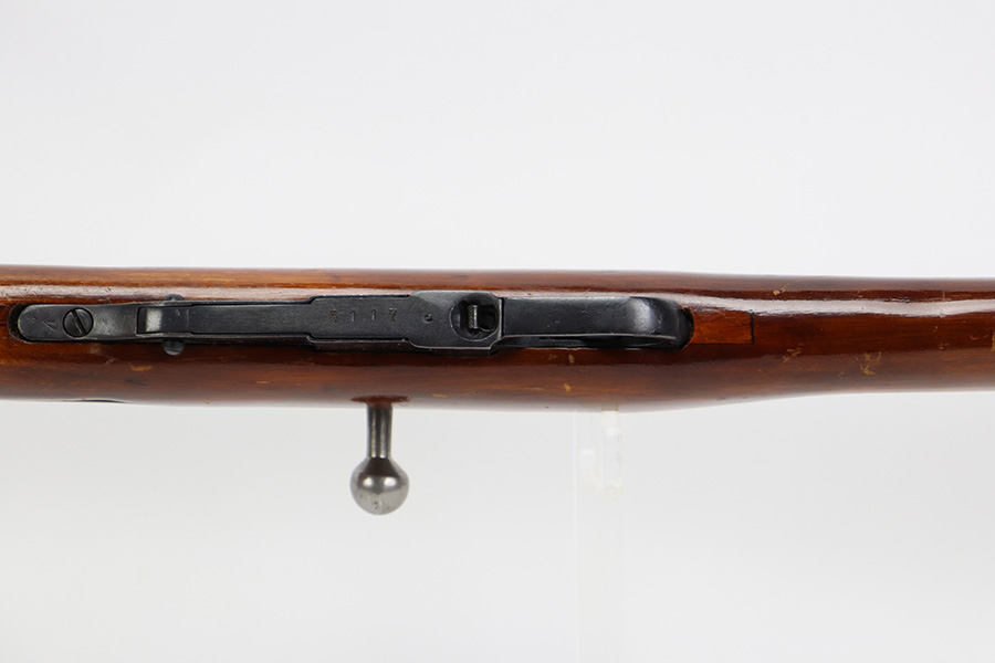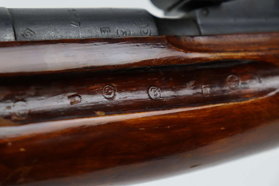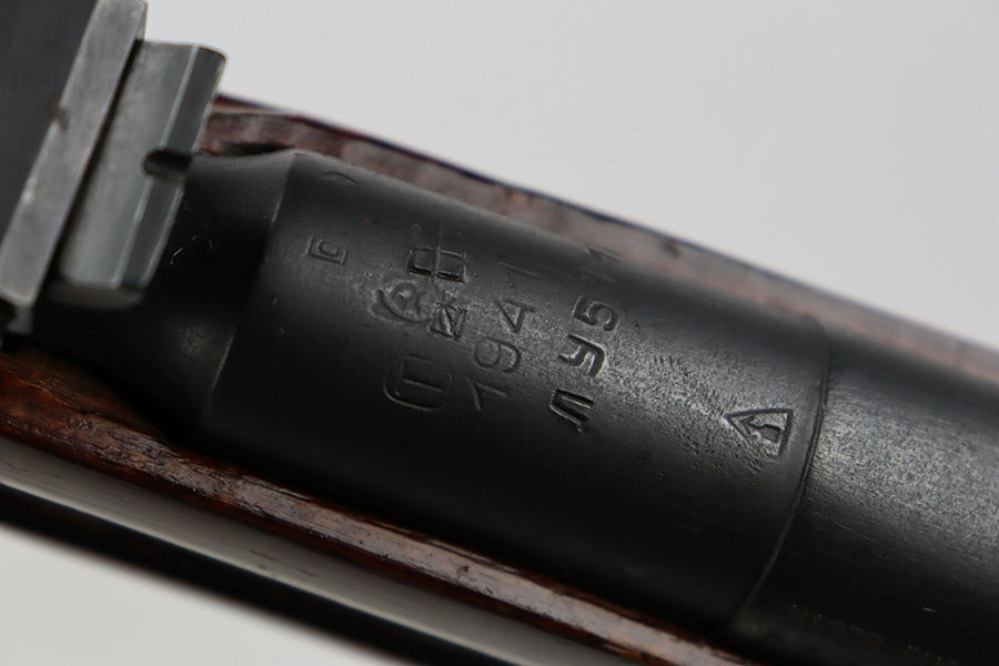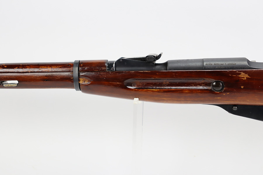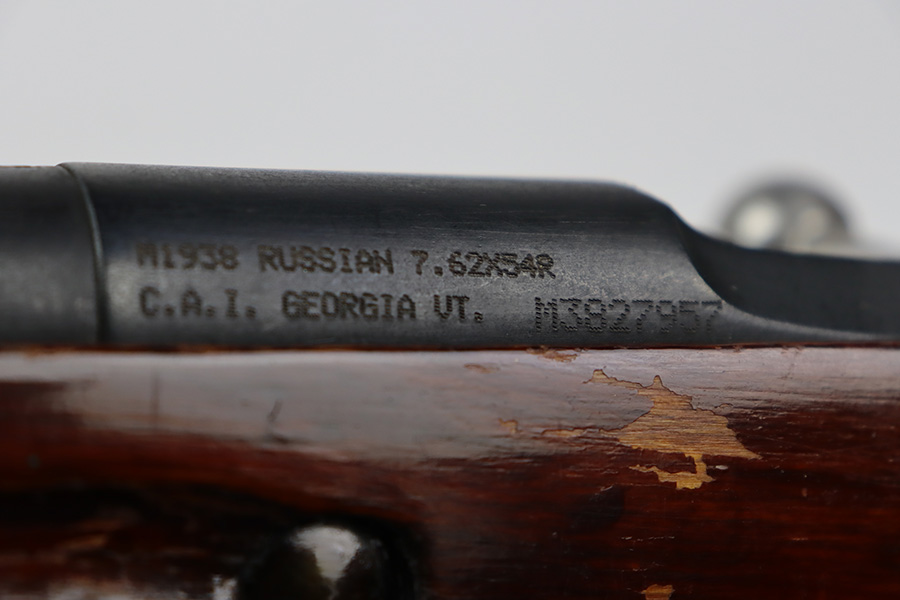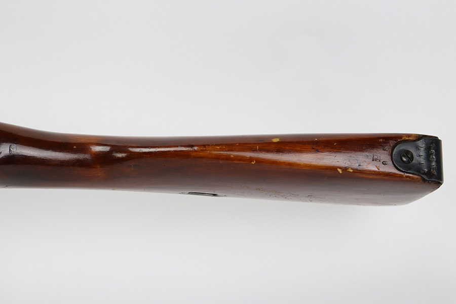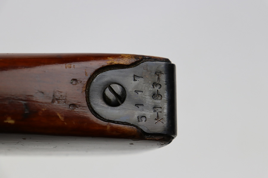 7/21/23 – This is an excellent example of an arsenal-refurbished Mosin-Nagant Model 38 Carbine from 1941. It is matching, but the butt plate and magazine have been re-numbered to match. There is an import mark on the left side of the receiver. It has retained nearly all of its arsenal-applied bluing with just some tiny handling marks here and there. No major damage to the wood furniture with light scratches and scuffs throughout. The bore has good rifling with just minor pin-pricking in the grooves.