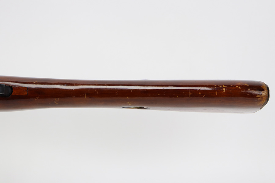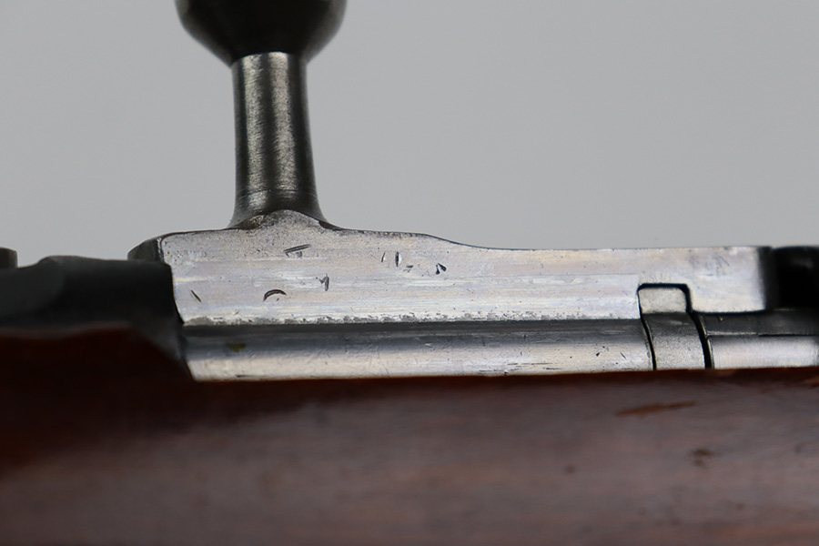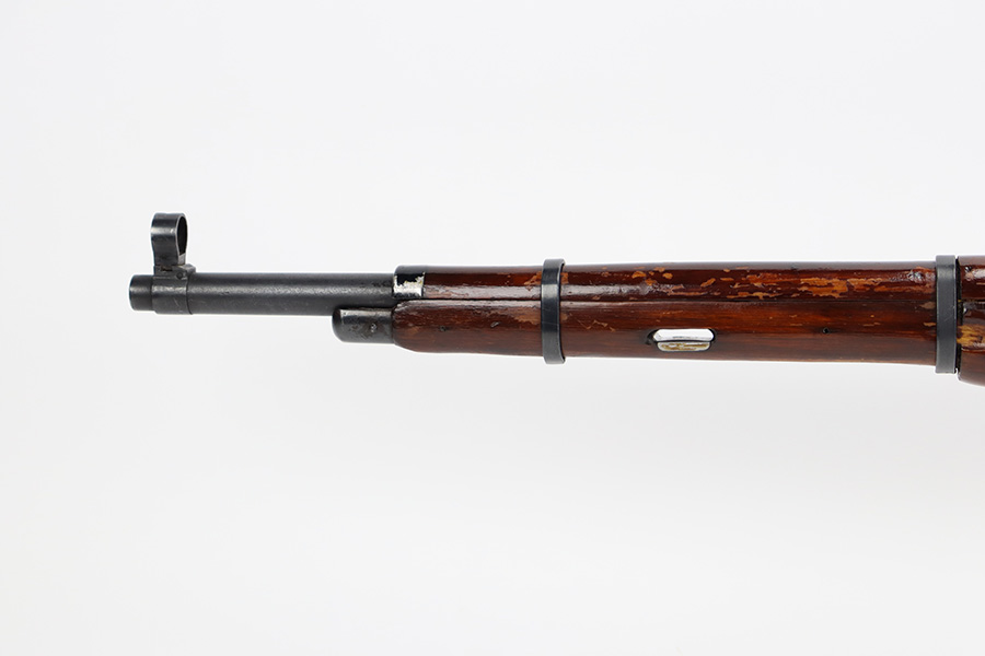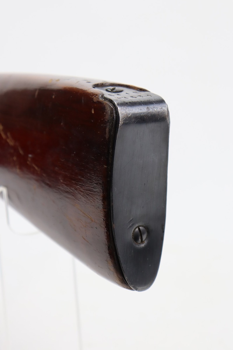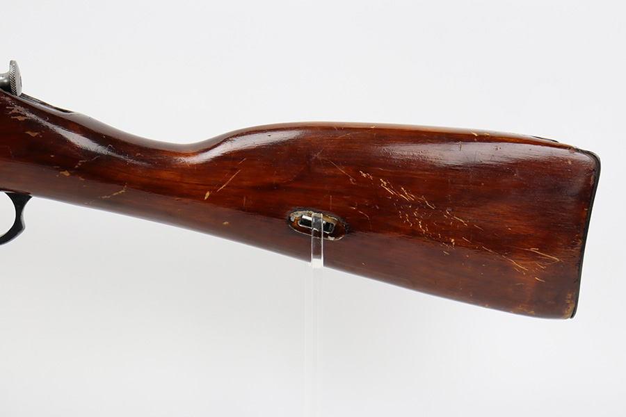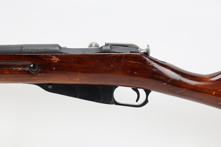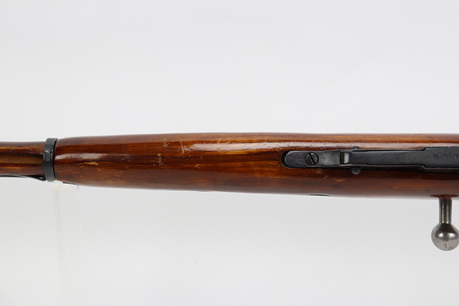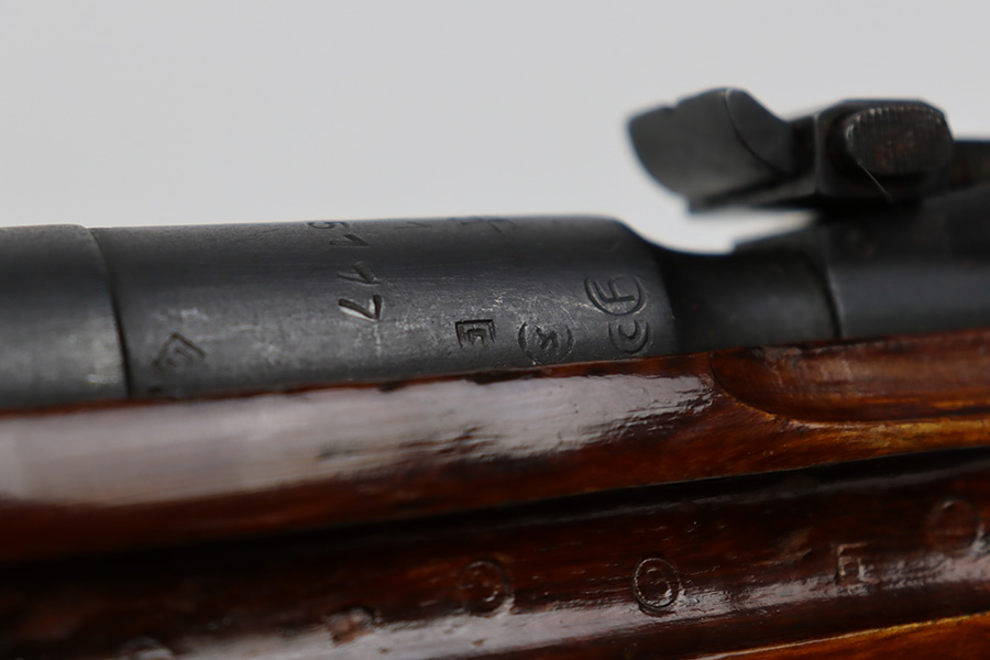 7/21/23 – This is an excellent example of an arsenal-refurbished Mosin-Nagant Model 38 Carbine from 1941. It is matching, but the butt plate and magazine have been re-numbered to match. There is an import mark on the left side of the receiver. It has retained nearly all of its arsenal-applied bluing with just some tiny handling marks here and there. No major damage to the wood furniture with light scratches and scuffs throughout. The bore has good rifling with just minor pin-pricking in the grooves.