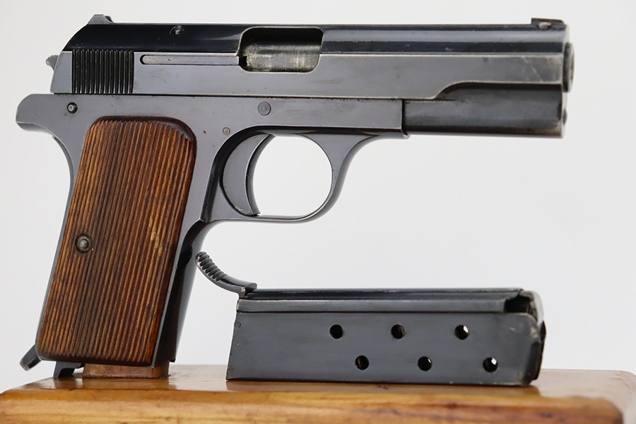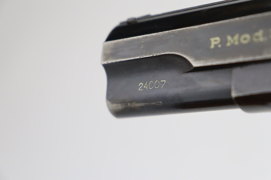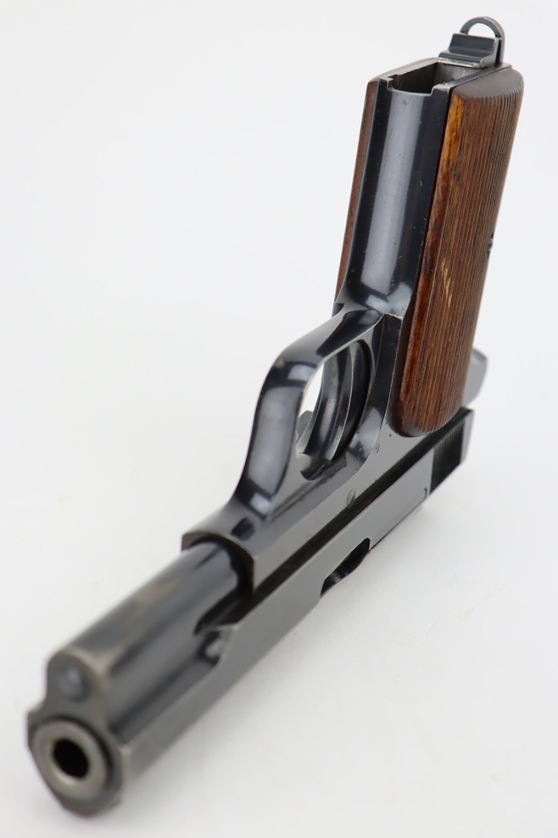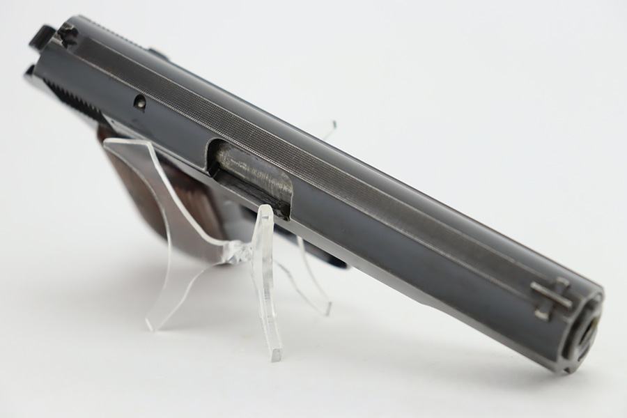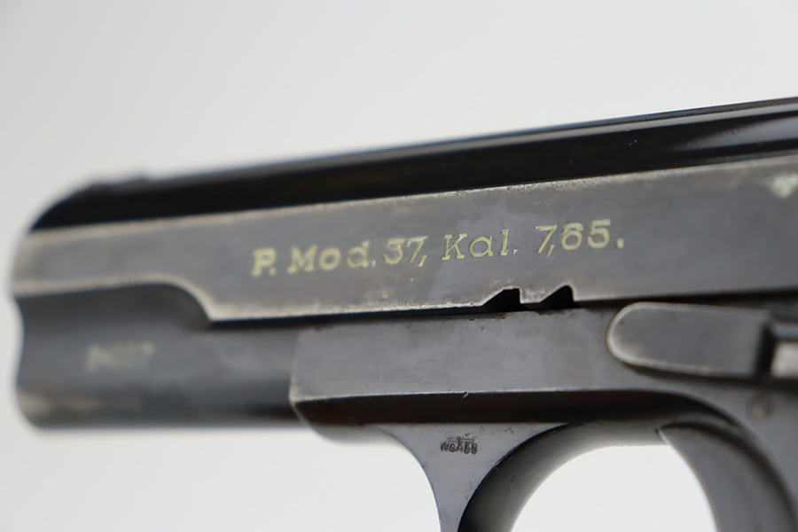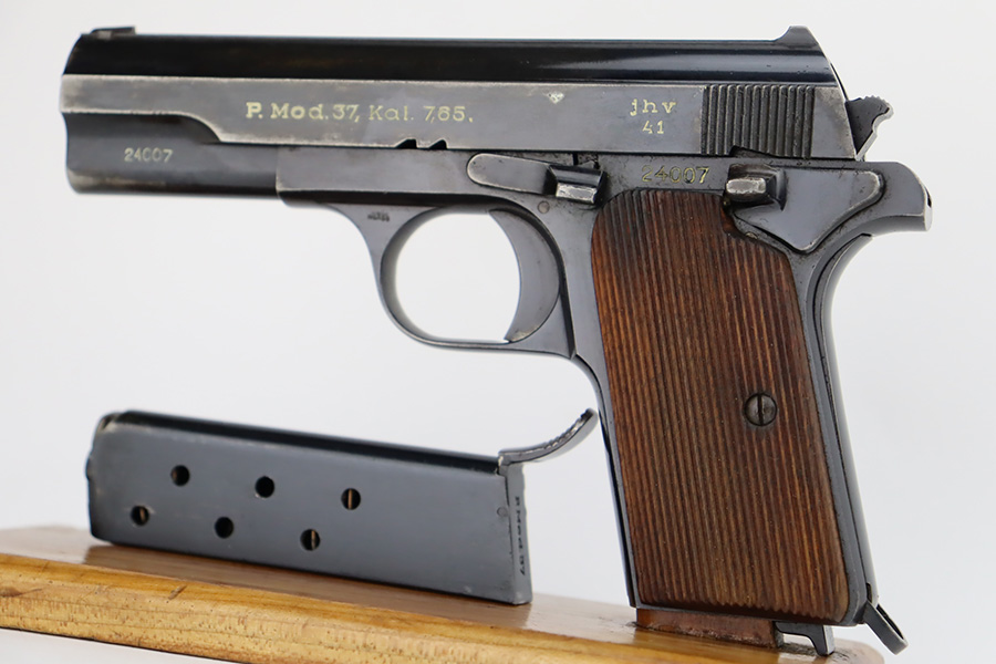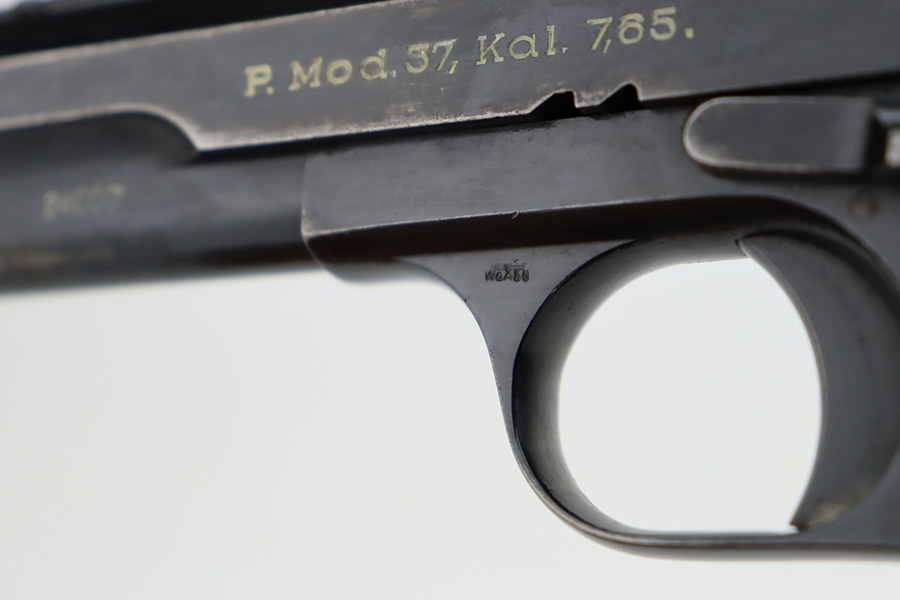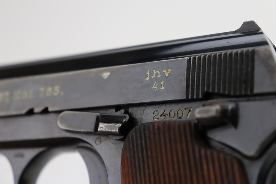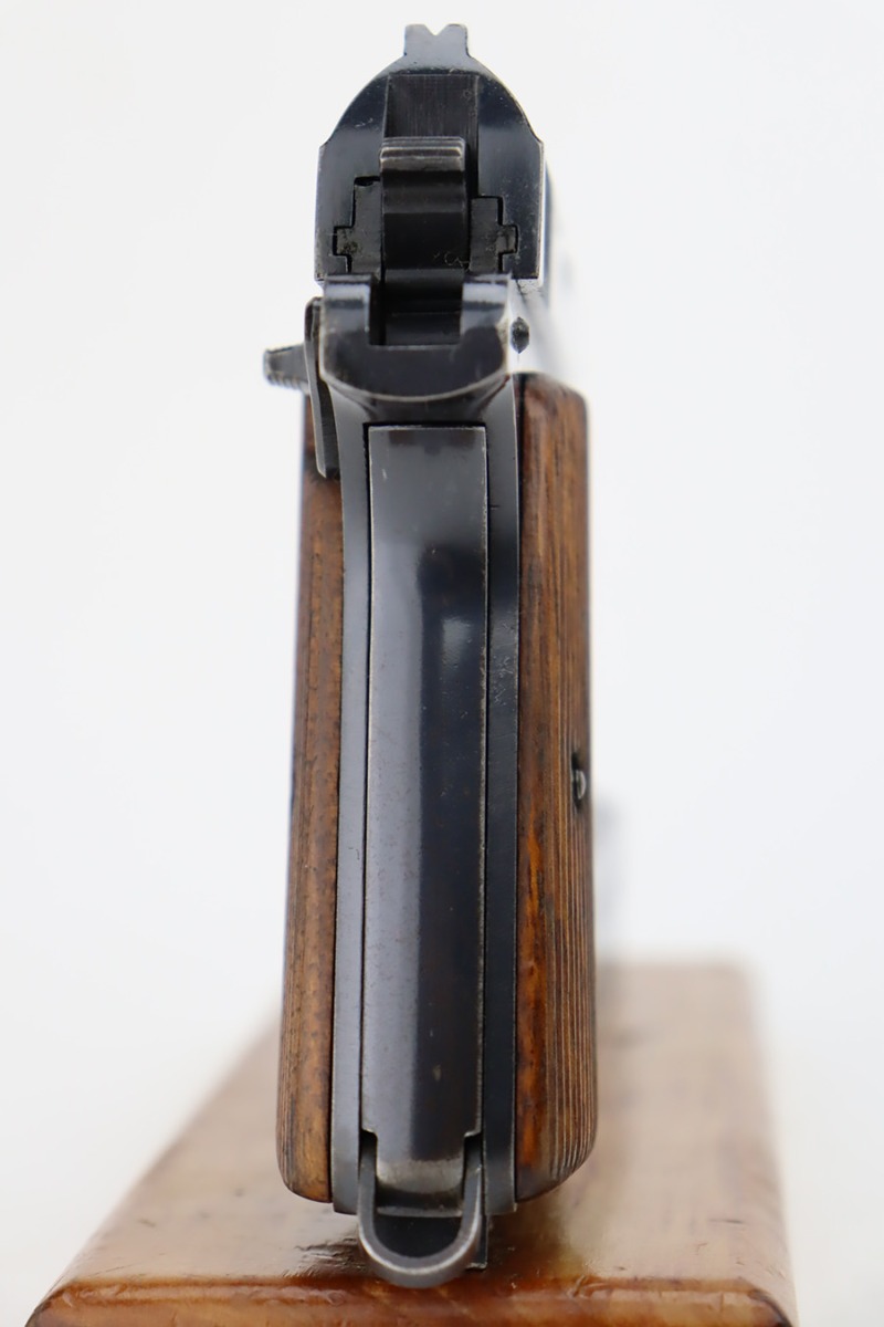 10/4/23 – This is a nice example of a Femaru Model 37 issued to the Luftwaffe in 1941. It is all matching and properly waffen-proofed. Comes with one original matching-numbered magazine. The bluing rates somewhere between 85-90% with general high edge wear and splotchy discoloration along both sides of the slide. Excellent period-correct wood grips. Stone-mint bore.