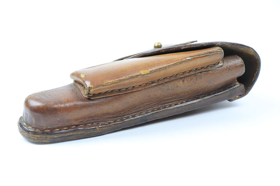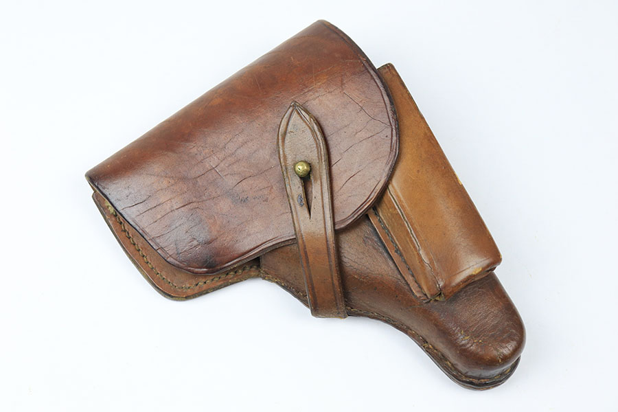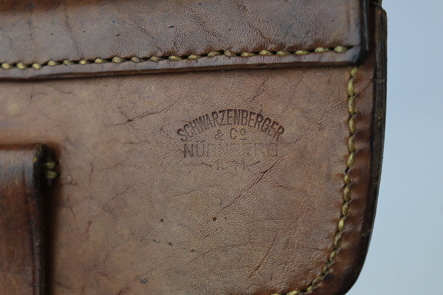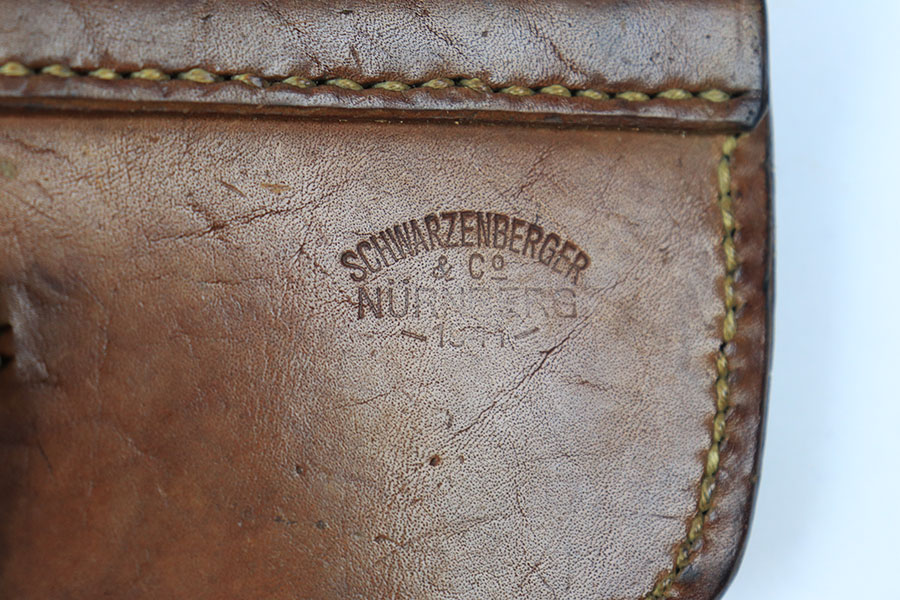 8/20/21 – This is a fairly scarce 1941 dated holster for a Walther PP. Would fit other similar sized Axis pistols as well. The holster is stamped on the back leather with “Schwarzenberger & Co” and 1941 dated. A fairly unusual and seldom found maker. The brown leather is in great overall condition, as is the stitching. No major flaws or issues.