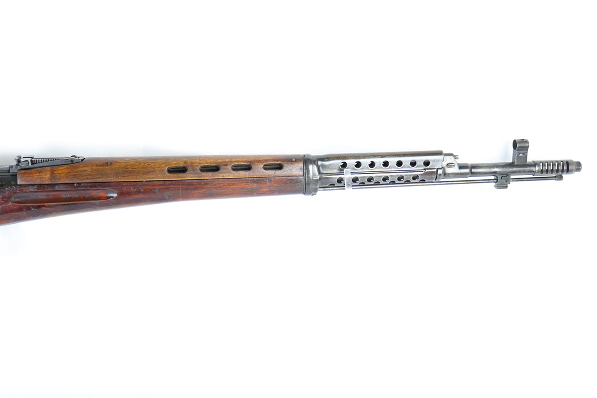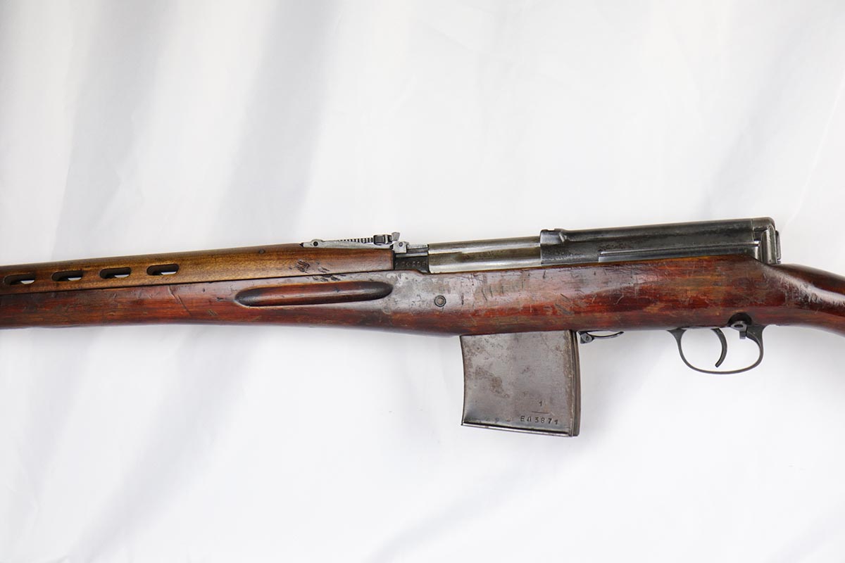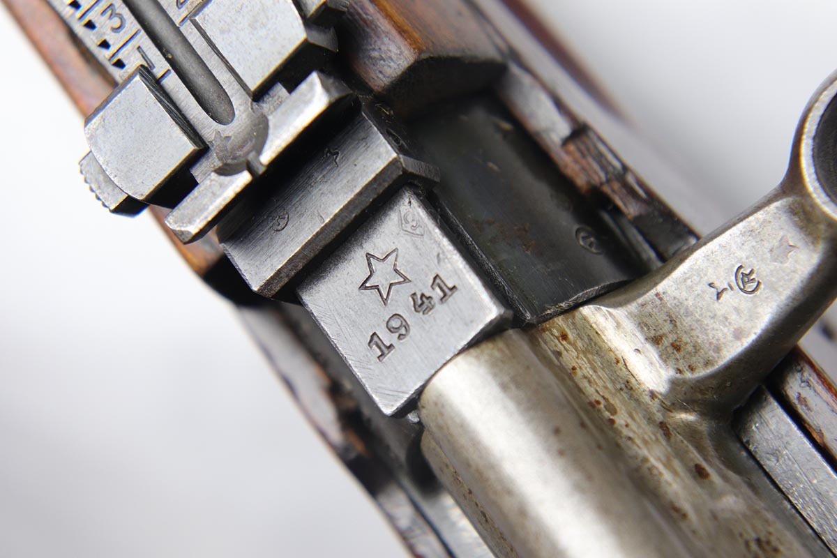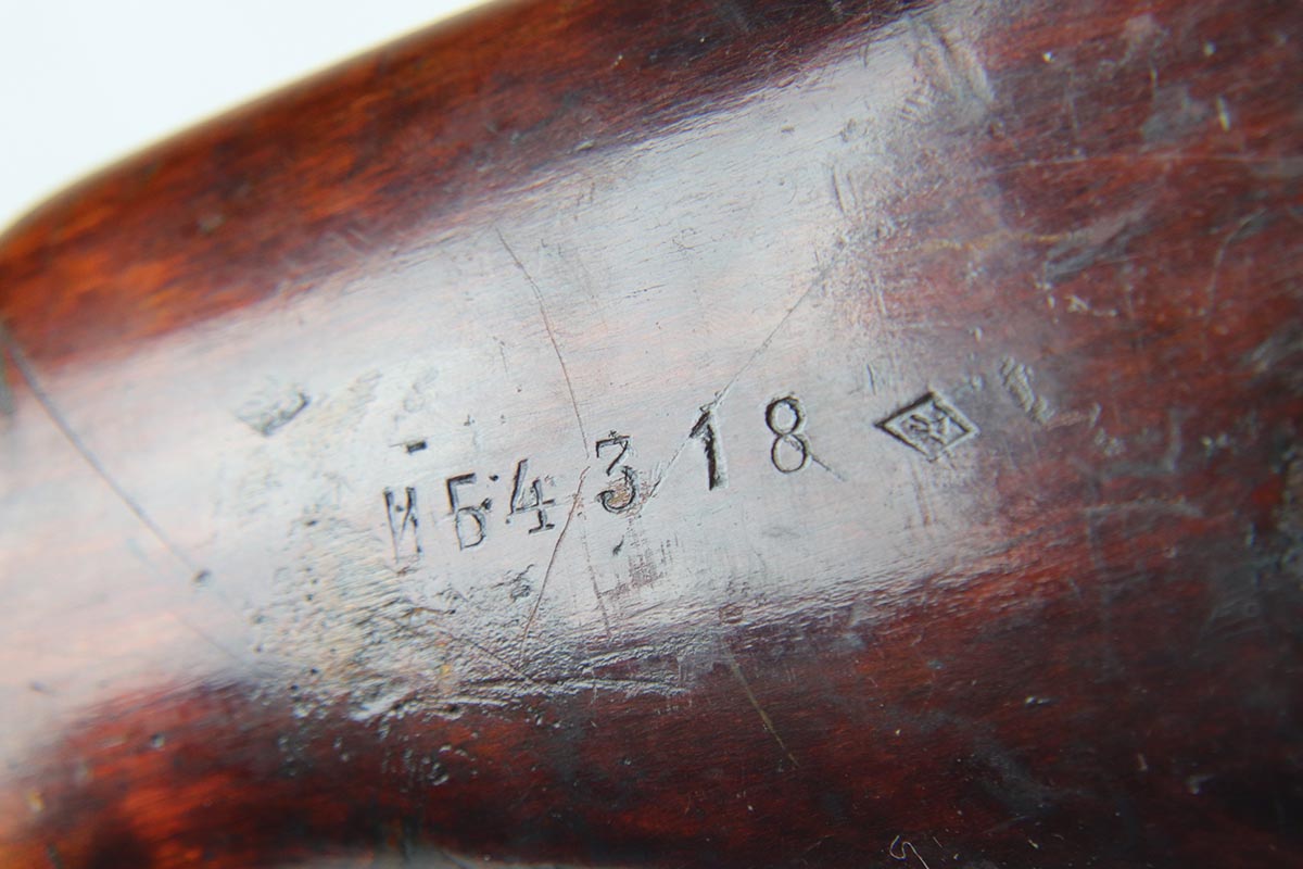 6/5/18 – This is an excellent condition, all original, and all matching Russian SVT 40 rifle, made in 1941 at the Tula factory, just in time for the German invasion of Soviet Union in operation Barbarossa. Despite all the talk about German military might in the beginning of WWII, the SVT40 semi-auto rifle was way ahead of the German K98 bolt action rifle, rivaling the American M1 Garand, developed around the same time. Rugged and performing well in the severe weather conditions, it was captured in the beginning of the war in some numbers by the Germans and played a role in development of K41 and K43 rifles. This particular gun is all original vet bring back without import marks and with 70-80% of the original blue remaining with some uniform thinning to the receiver and barrel. Beautiful stock with all the cartouches intact and no cracks. Sharp markings on the receiver with all the correct proofmarks. Very good bore. It is almost impossible to find an original non-import SVT40 in this condition, as most have been either imported or reworked by the Finns.