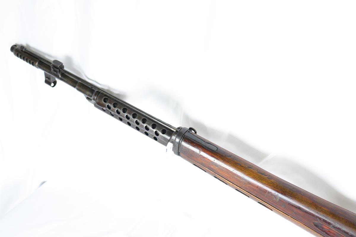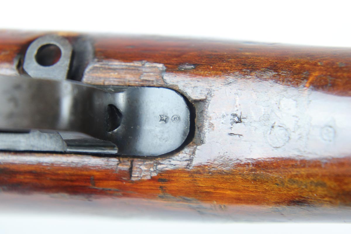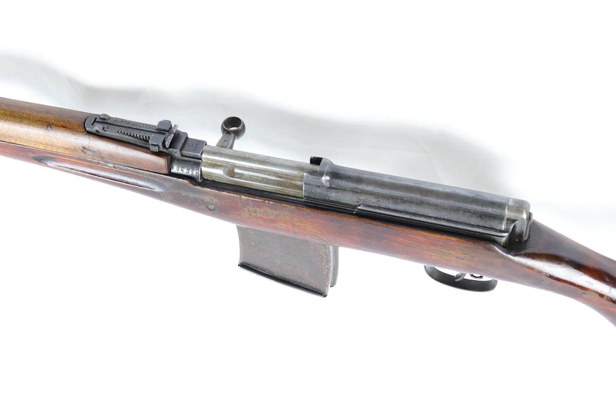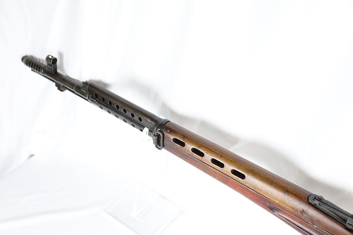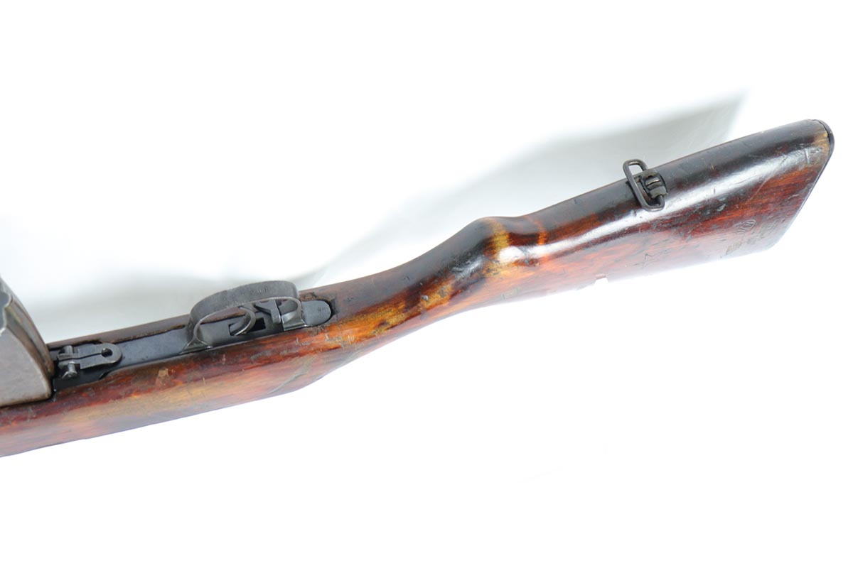 6/5/18 – This is an excellent condition, all original, and all matching Russian SVT 40 rifle, made in 1941 at the Tula factory, just in time for the German invasion of Soviet Union in operation Barbarossa. Despite all the talk about German military might in the beginning of WWII, the SVT40 semi-auto rifle was way ahead of the German K98 bolt action rifle, rivaling the American M1 Garand, developed around the same time. Rugged and performing well in the severe weather conditions, it was captured in the beginning of the war in some numbers by the Germans and played a role in development of K41 and K43 rifles. This particular gun is all original vet bring back without import marks and with 70-80% of the original blue remaining with some uniform thinning to the receiver and barrel. Beautiful stock with all the cartouches intact and no cracks. Sharp markings on the receiver with all the correct proofmarks. Very good bore. It is almost impossible to find an original non-import SVT40 in this condition, as most have been either imported or reworked by the Finns.
