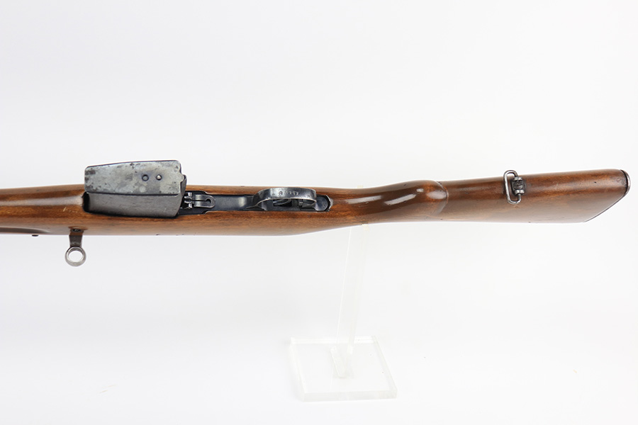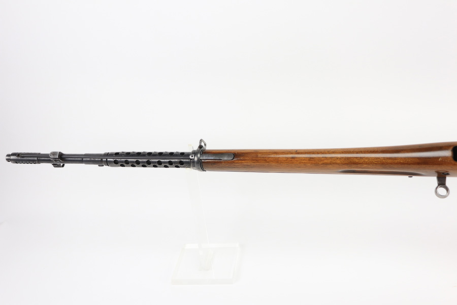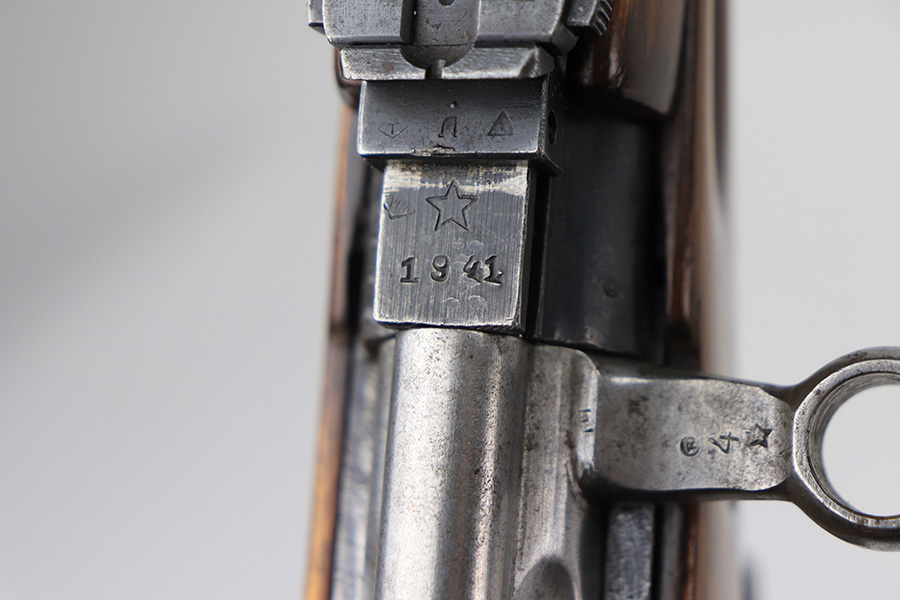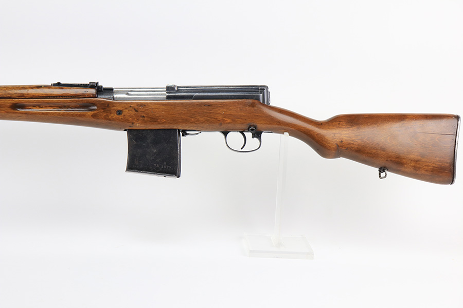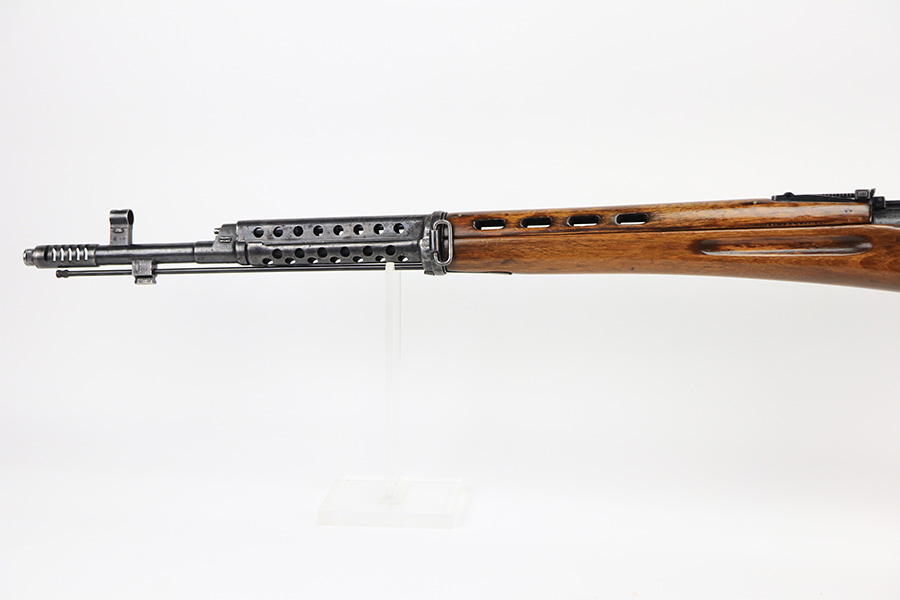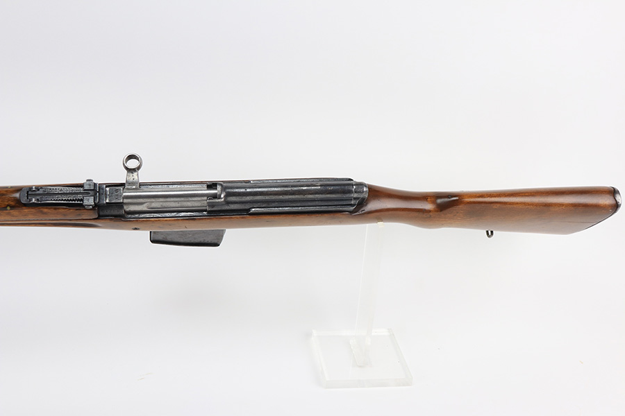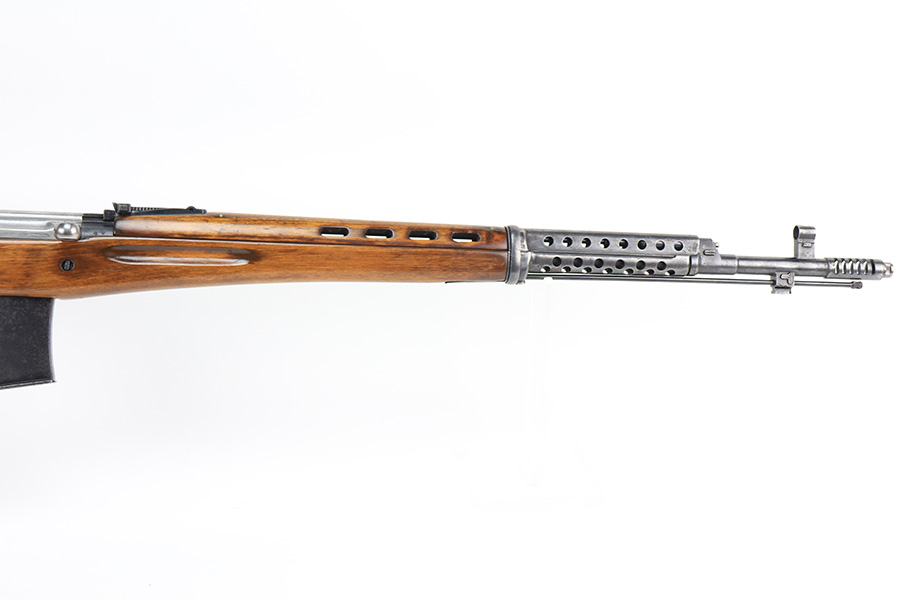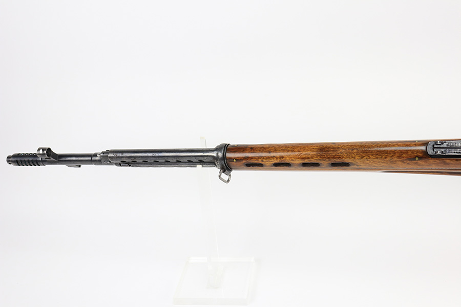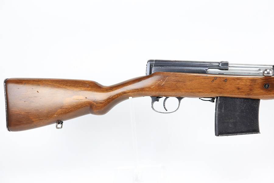 2/18/22 – This is a nice example of a scarce Russian SVT-40. Made in 1941 at the Tula factory, it’s mismatched throughout but not a refurbished or import marked example. The receiver and magazine are ‘SA’ marked, indicating Finnish capture. General thinning of the finish on metal parts but no notable areas of pitting. Stock is in excellent condition aside from a small surface crack on the left end of the buttstock. Comes with cleaning rod. Bore has good rifling but deep frost throughout and is very dirty/needs a real cleaning.