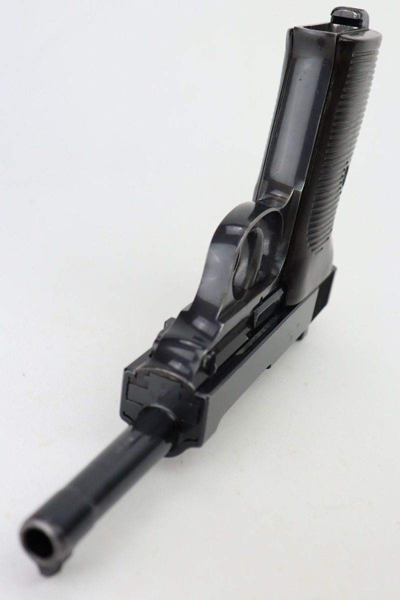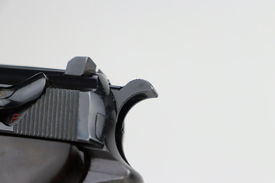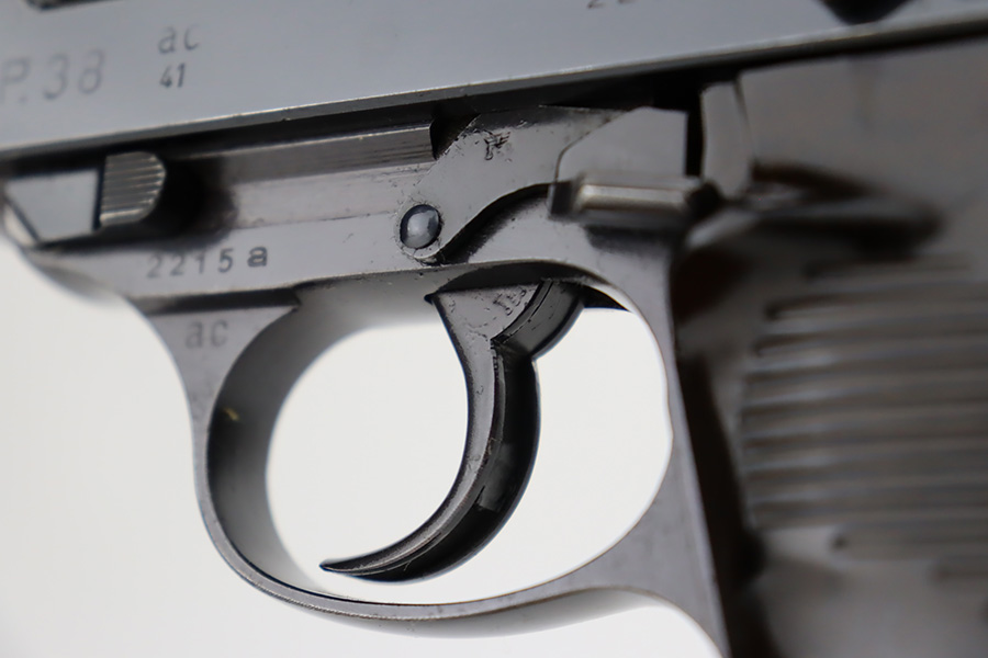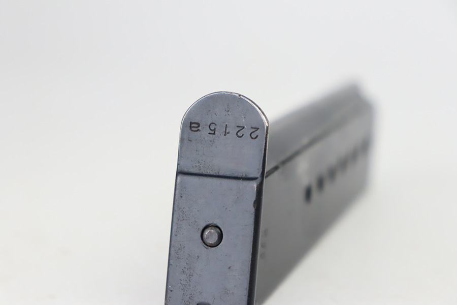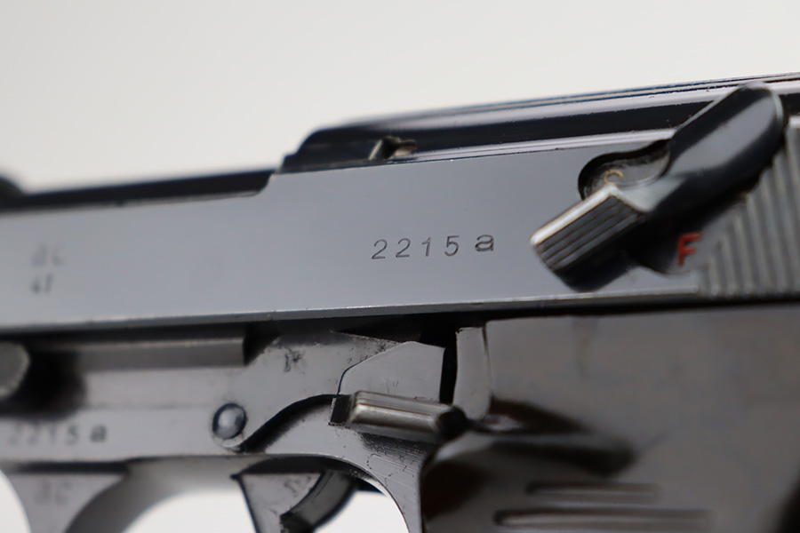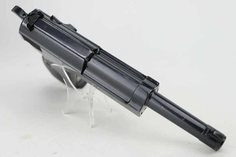 10/18/23 – This is a terrific Walther P.38 issued to the Nazi military in 1941. It comes with the original matching magazine. The gun is all matching, fully functional (including the de-cocker), and has the correct “Eagle 359” Nazi military acceptance proofs on the frame, slide, and small parts. This gun has retained about 98% of its original finish. There is minor muzzle wear, high edge wear on the slide, a few scratches and handling marks on the barrel (and some other areas), an area of wear under the trigger guard, and light oxidation on the front strap. Excellent grips, which are matching numbered to the pistol. Mint bore.