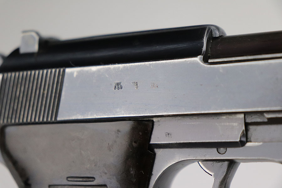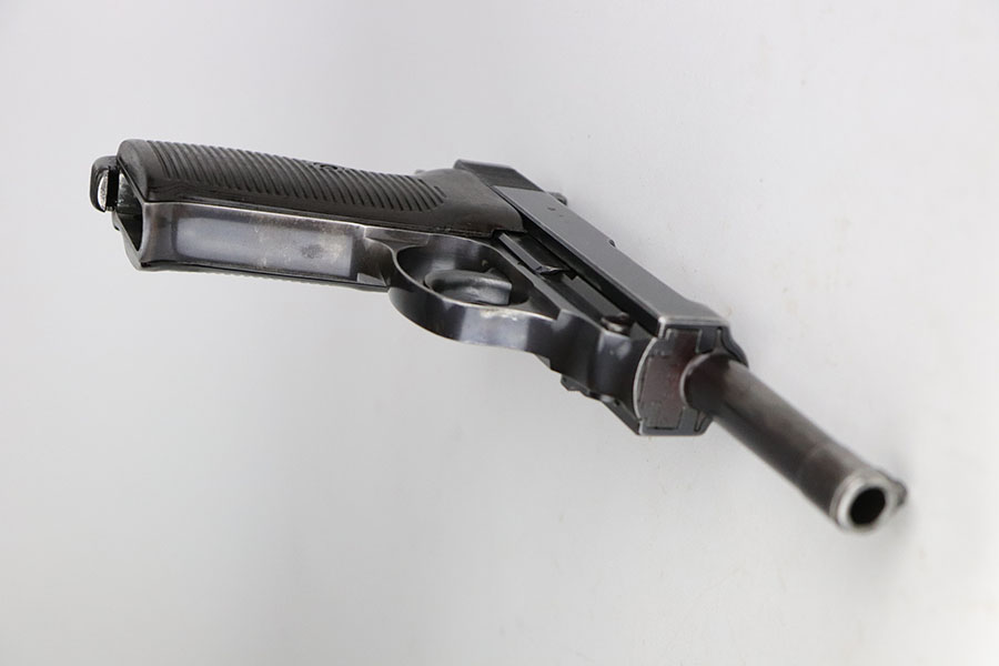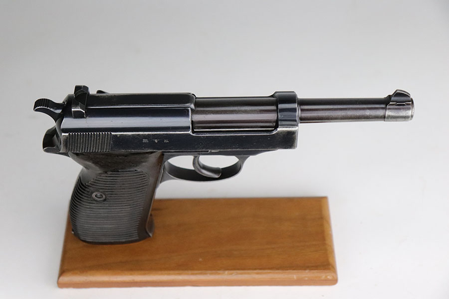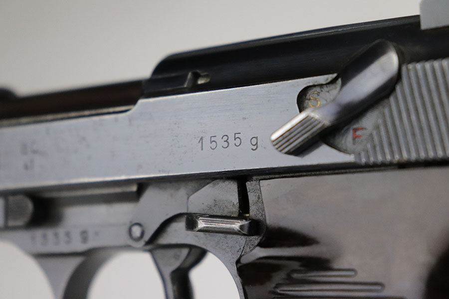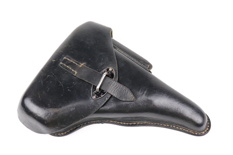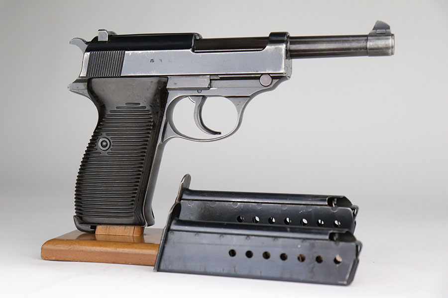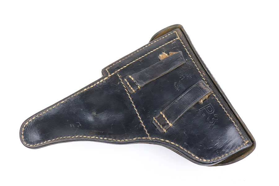 8/13/20 – This is a complete Walther P.38 rig from September of 1941. It’s a second variation pistol with high-polish blue but no ‘ac’ proof on trigger guard. The pistol has about 85-90% of the original blue remaining with thinning on the front strap, barrel and slide edges. The left side of the slide also has some freckling and oxidation throughout. Excellent bore and good mechanics. E/359 proofs on all small parts, including the grips. One magazine is Mauser made, the other is Spreewerk. Excellent and rare 1941 dated holster. It’s a hardshell example with crisp waffenamt and E.K.St. maker mark.