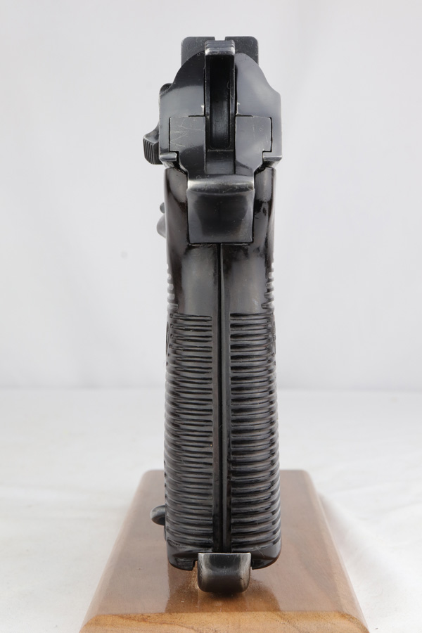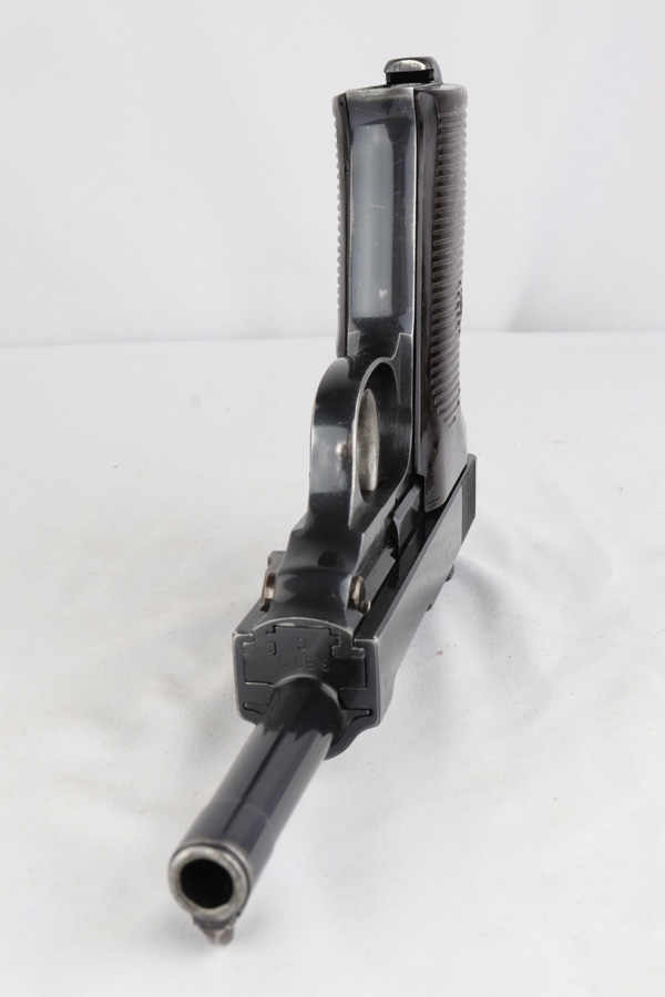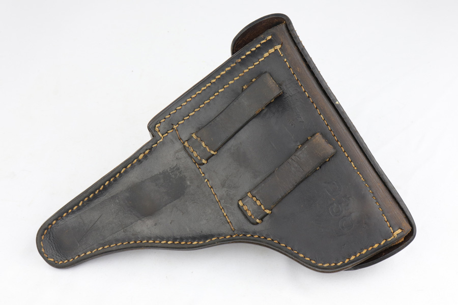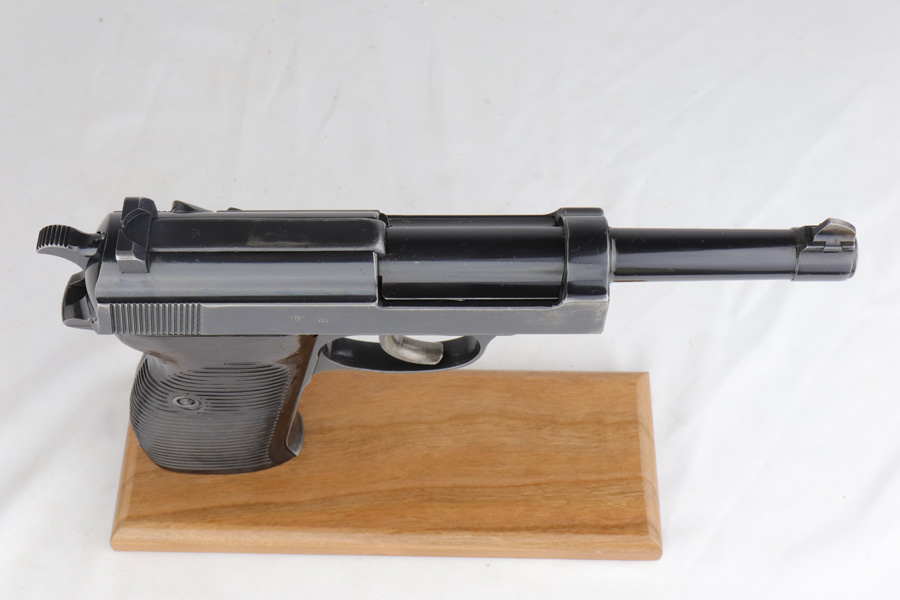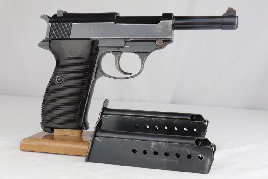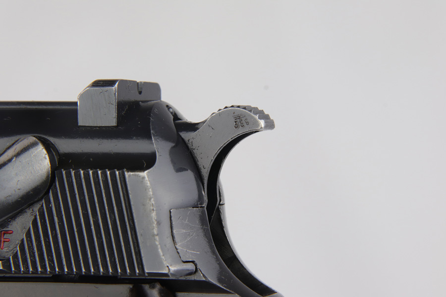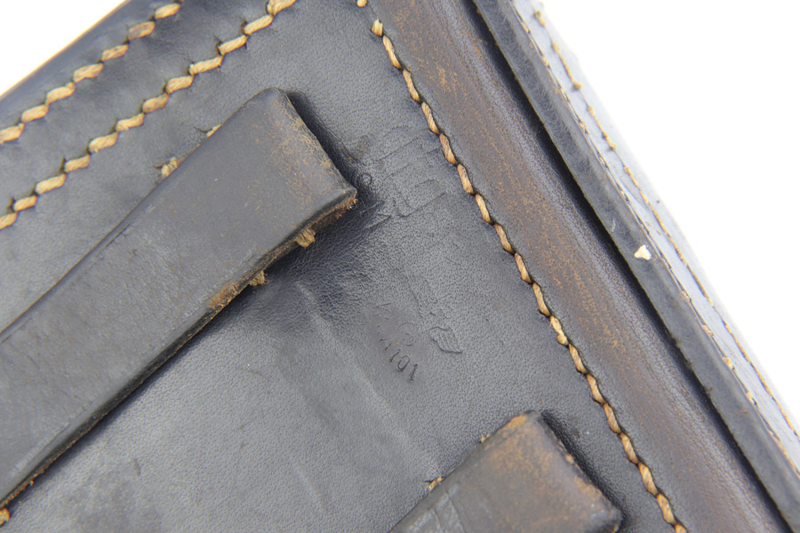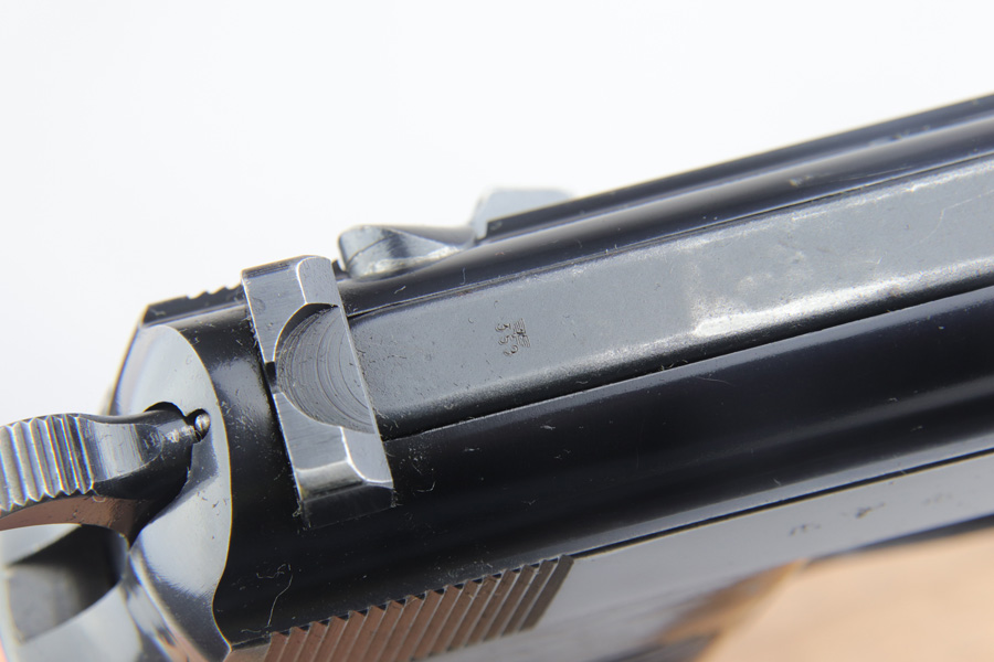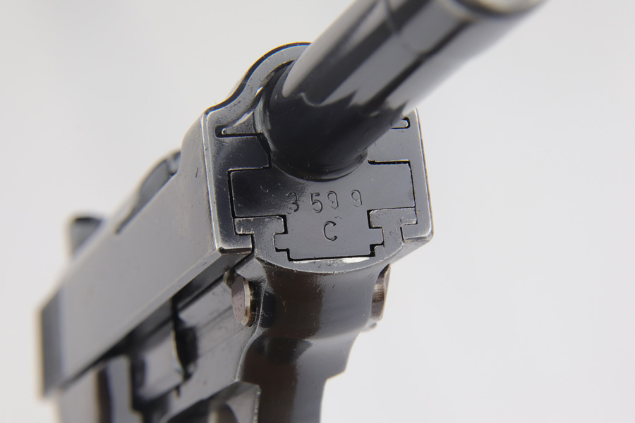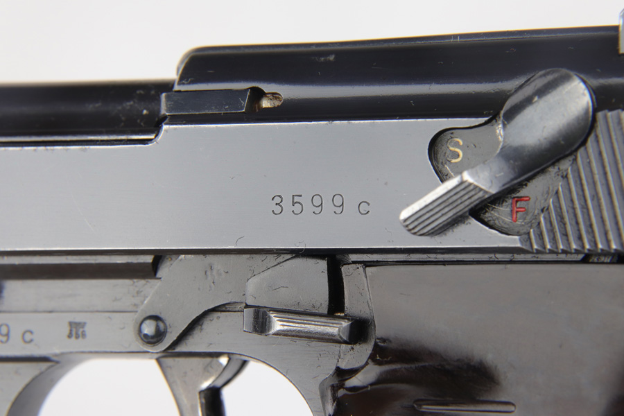 2/4/19 – This is an all matching and original Walther P.38 rig from 1941 with both matching magazines! This is a second variation pistol with high-polish finish but no ‘ac’ proof on trigger guard. The finish rates at about 93-95% with minor finish loss near the muzzle and front edges of the slide, and some rub wear on the front strap/trigger guard. All small parts are waffen marked, including the grips. The early magazines correctly have two waffen marks on the spine. Bore is minty, and looks like it’s barely been used. Holster shows some age and scuffs but no major flaws, and it is 1941 dated and waffen marked.
