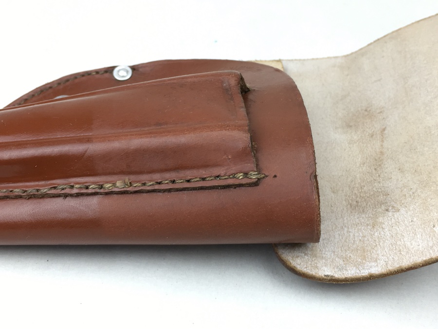 12/9/19 – This is an original 1941 dated Walther PPK (or similar sized pistol) holster. The holster is dated, police eagle stamped, and maker stamped under the closure strap. Minty leather is firm and clean – appears un-issued. All original stitching. Very hard to upgrade police holster!