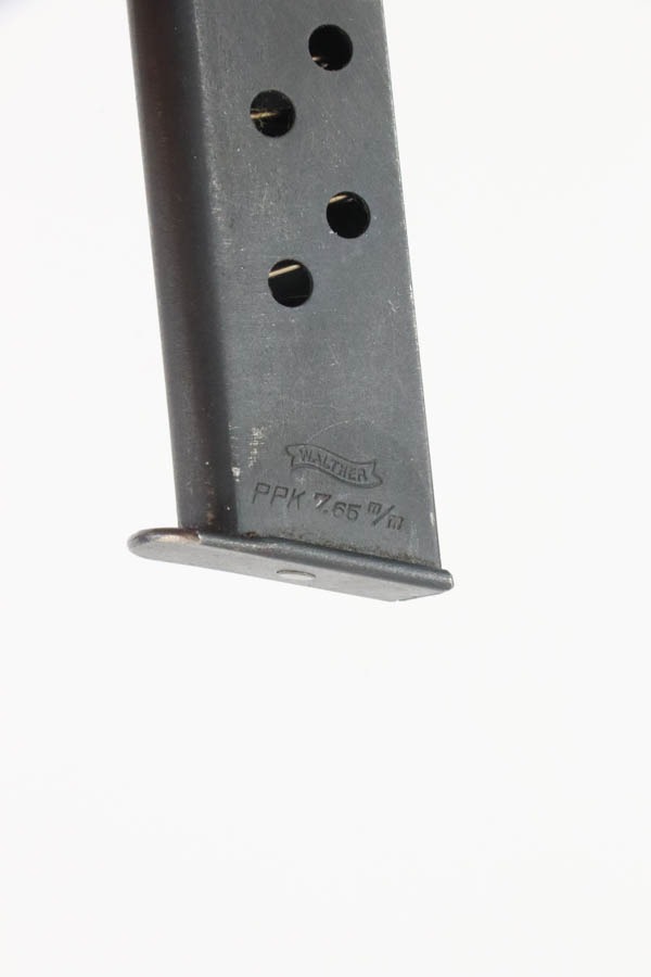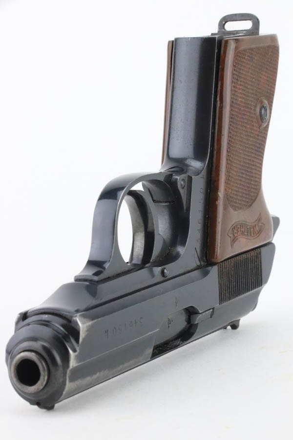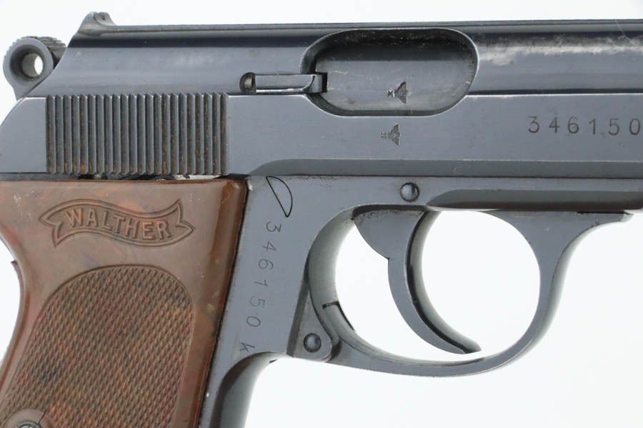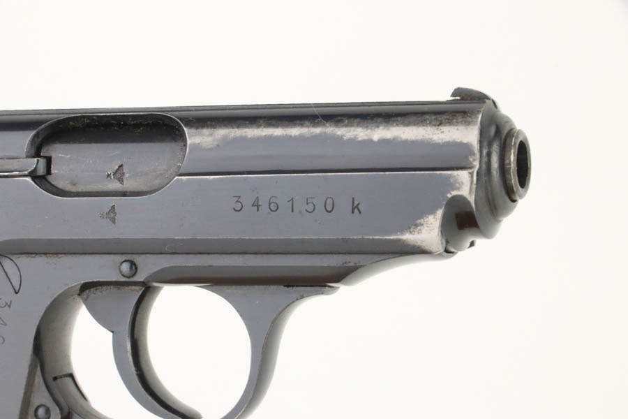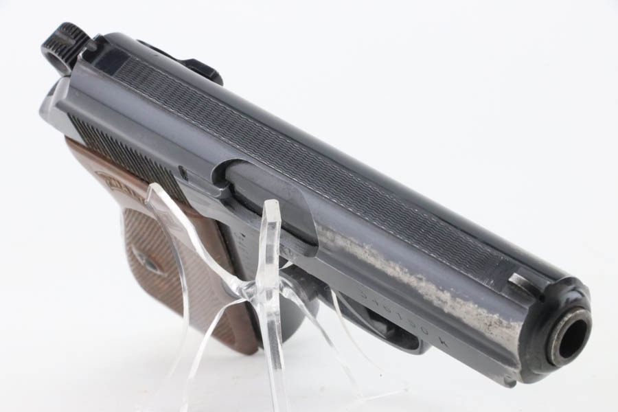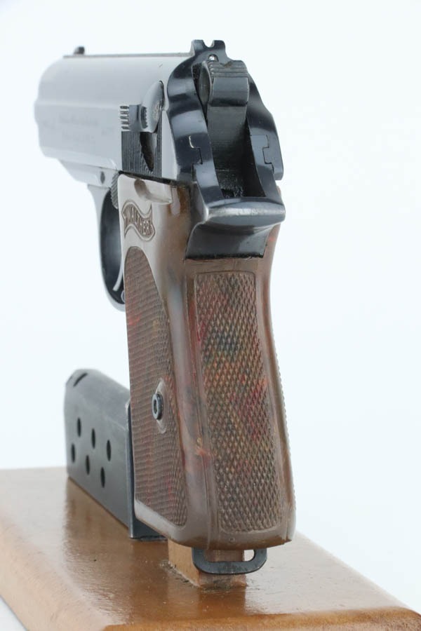 11/22/24 – This is a very nice example of a Walther PPK from 1941. All matching and “Eagle N” proofed. This gun would fall in the correct serial range for a small miscellaneous SS contract in 1941. This particular serial range is referred to as a “Variation 4: Miscellaneous Order” on page 74 of Tom’s “SS Contract Walther PP/PPK” book. There are four guns in this contract that have been officially documented to members of the SS. However, without a matching-numbered magazine or supporting documentation, we cannot say for sure if this one was part of this SS contract. In any case, it has retained about 93% of its original high polish finish with high edge wear along both sides of the slide, mostly around the muzzle. It is fitted with a particularly beautiful and unique marbled chocolate brown bakelite grip with really nice splashes of red color. Comes with a proper wartime magazine (un-numbered). Excellent bore with great rifling.