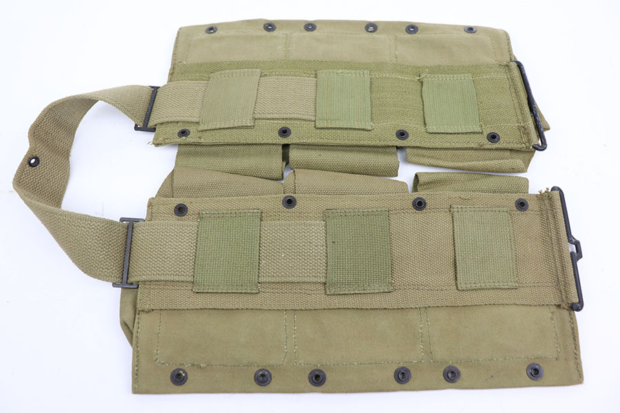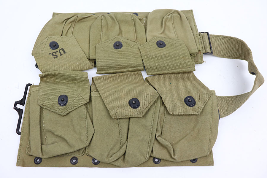 3/17/21 – This is an original WW2 canvas ammo belt. Excellent overall condition and completely in tact with no major issues. The front is U.S. ink stamped on one of the pouches and the reverse is BOYT 42 ink stamped. Used to carry ammo, supplies, or any misc. items a soldier may carry in battle.