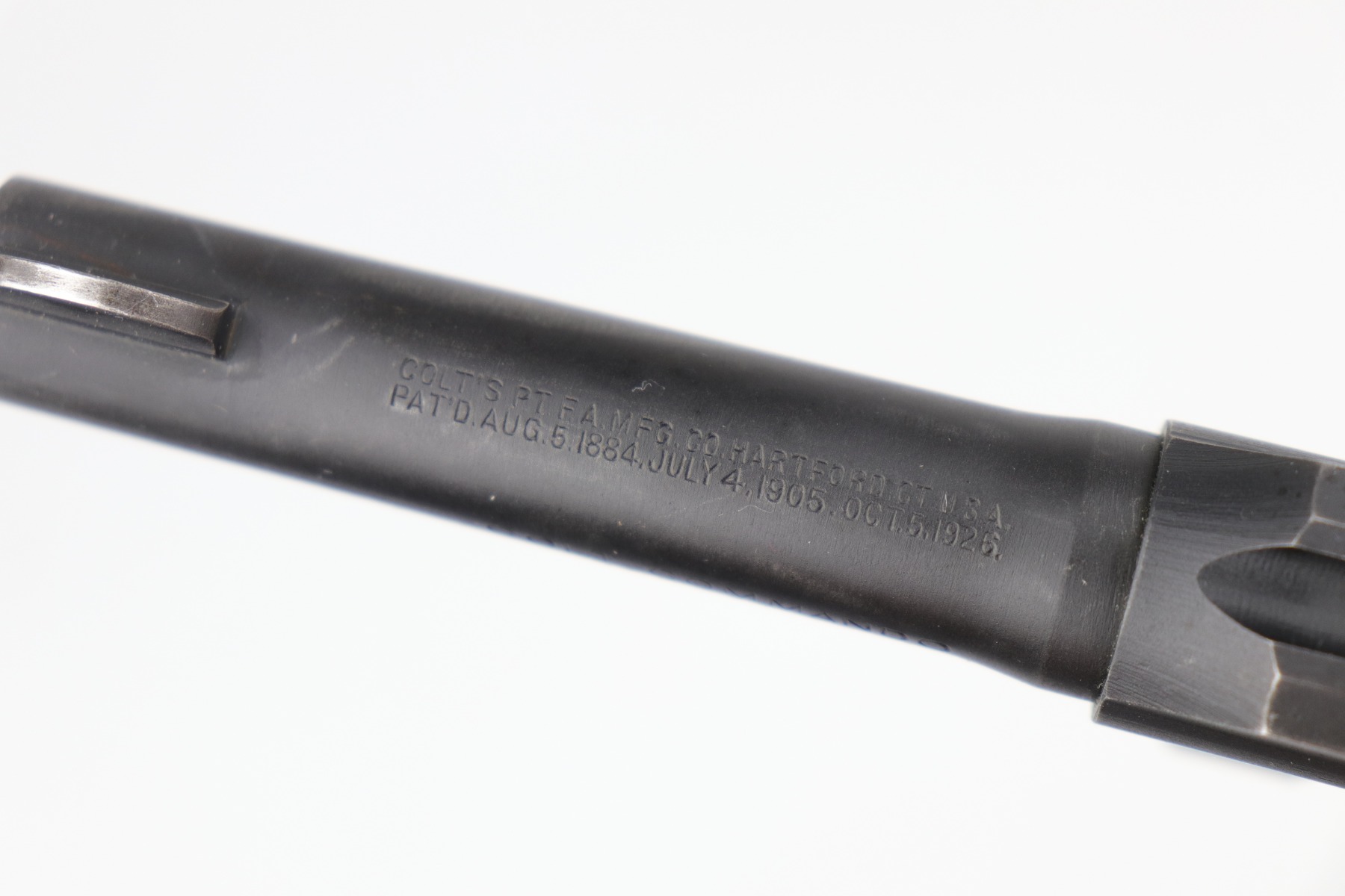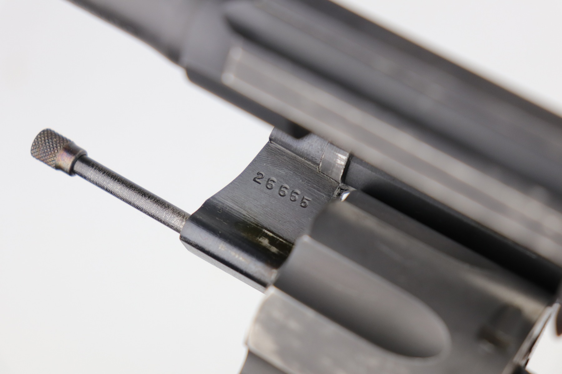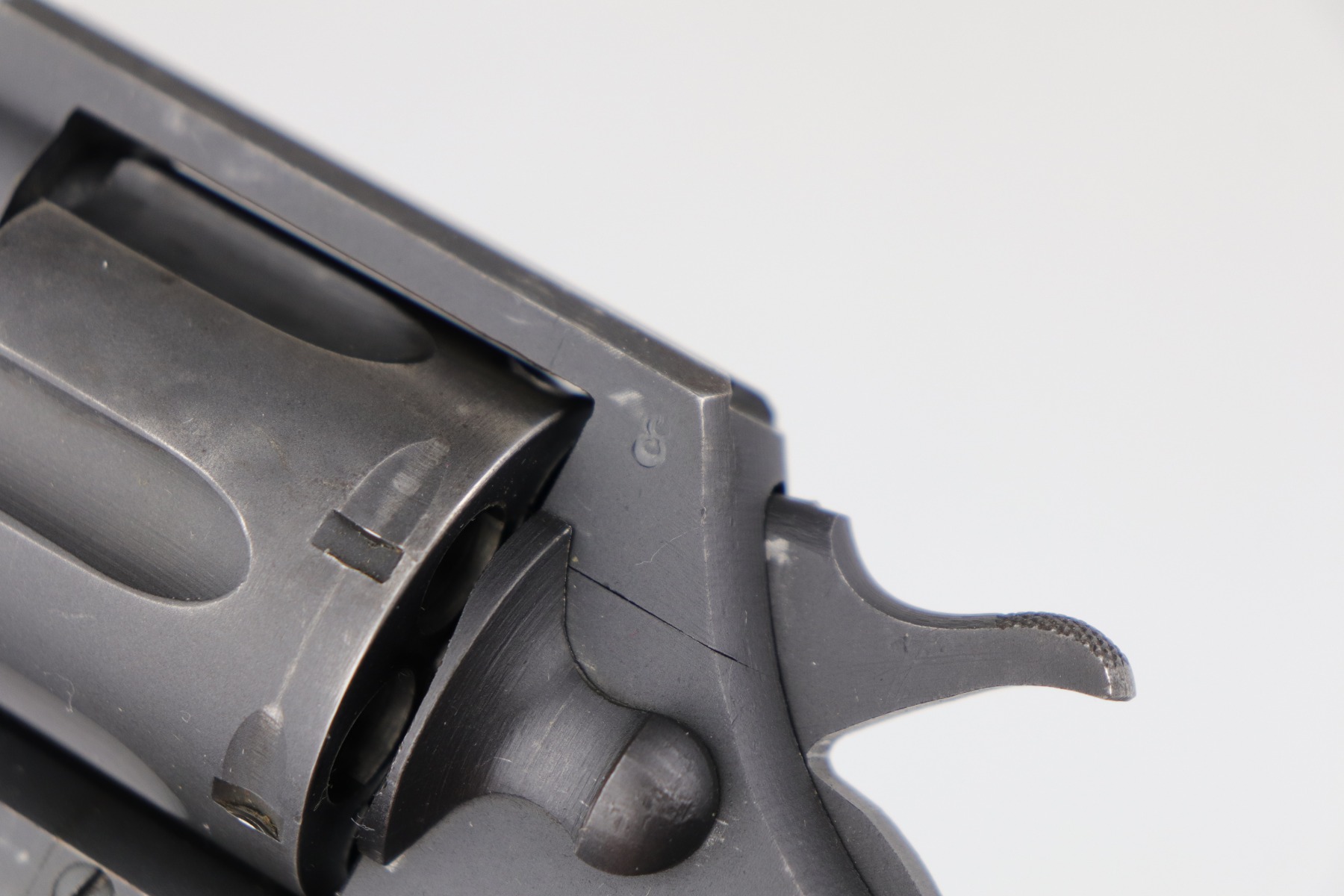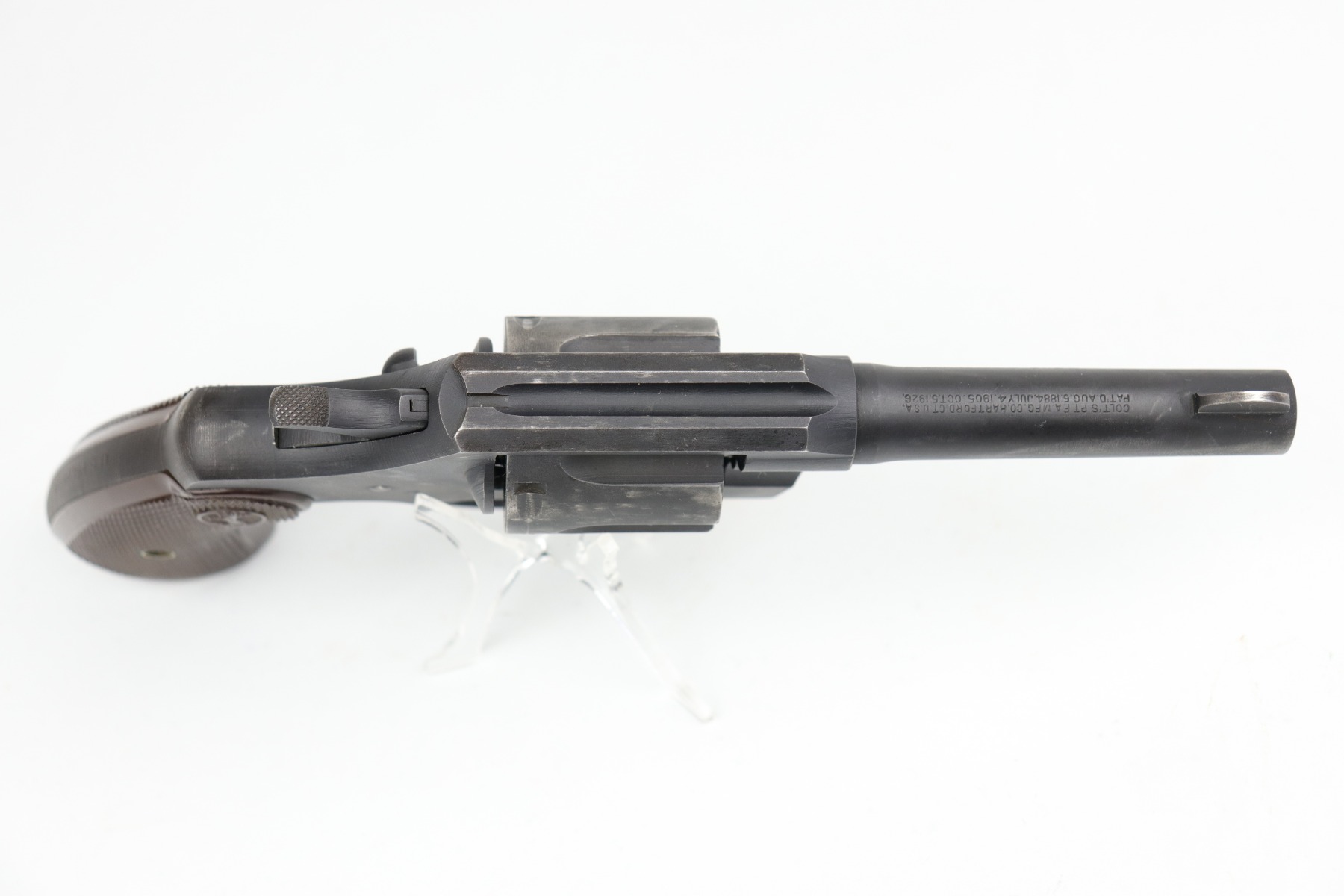 6/18/20 – This is a Colt Commando Revolver issued to the US Military during WW2, in 1942. It is chambered in .38 special. It has the proper flaming bomb proof on the left side of the frame. It is US Property-marked on the rear strap. It is all matching. This gun has retained about 92-94% of its original finish. Most of the wear is around the muzzle, discoloration on the right side of the barrel, and small spotty areas of wear on the cylinder, barrel, and frame throughout. The action is smooth and tight. Excellent bore – shiny with strong rifling. The grips are original and excellent. 4″ barrel.