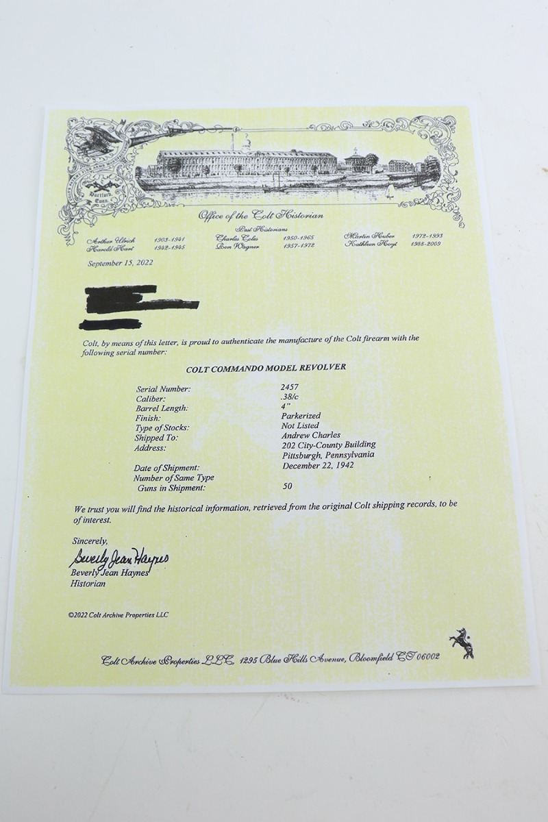 SOLD – 1942 Colt Commando Revolver – With Factory Letter