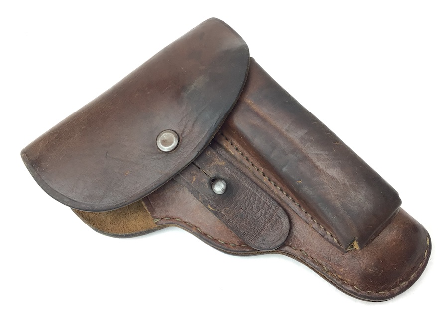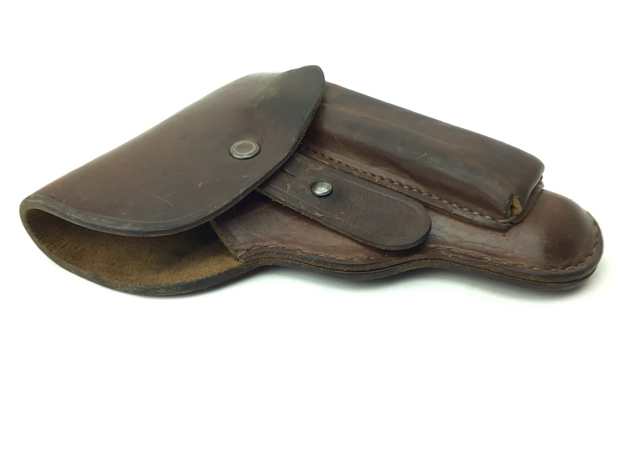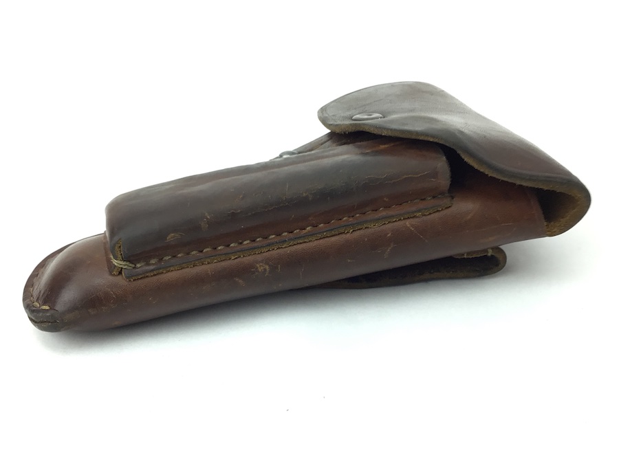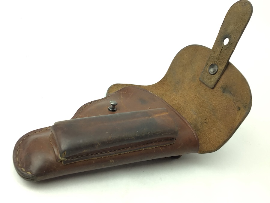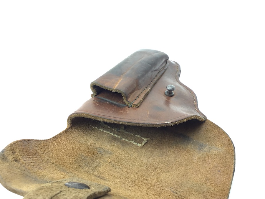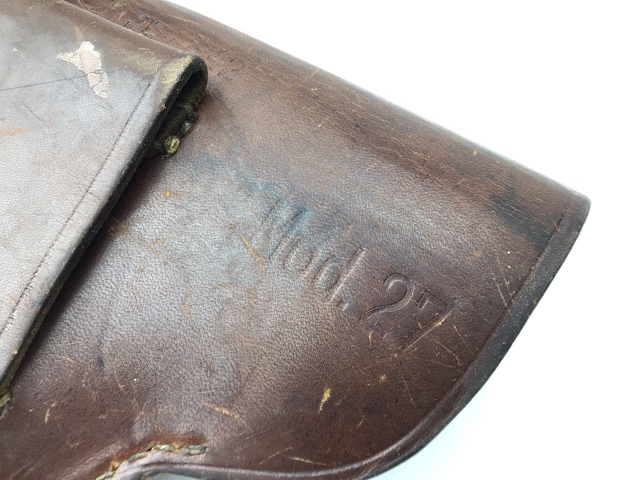 2/18/21 – This is an original WW2 era CZ model 27 holster. The back of the holster is 1942 dated with a waffen proof eagle WaA76 and a CZ logo stamp along with P. Mod. 27. The CZ logo is somewhat faint but visible. The stitching is all tight and original with no missing stitches. The leather has minor scuffs and use wear. Overall the leather is very strong and excellent with a clean interior.