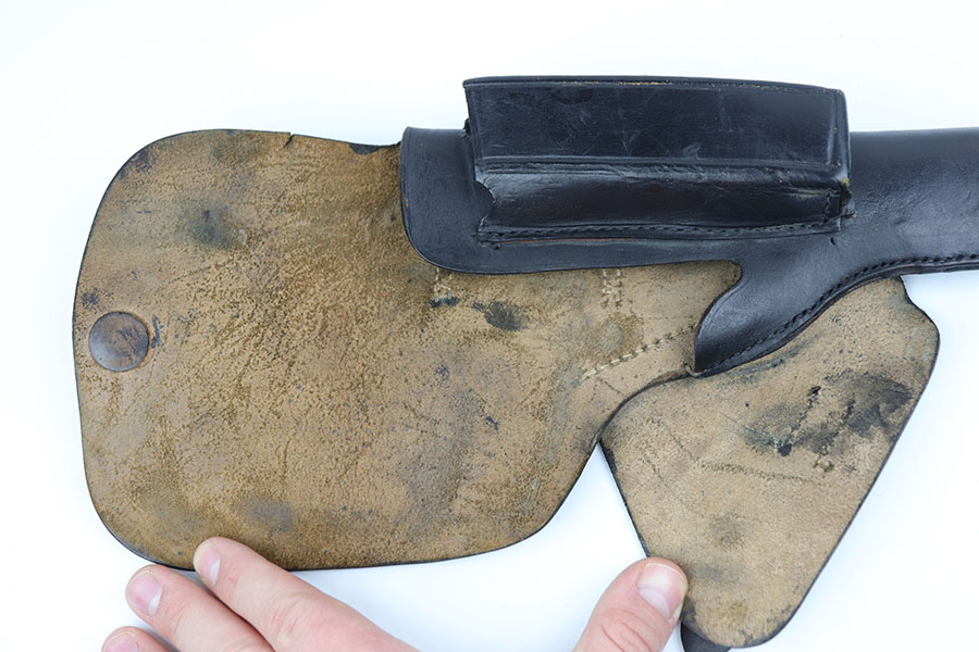 2/27/20 – This is an original 1942 dated black leather hi power holster from WW2.