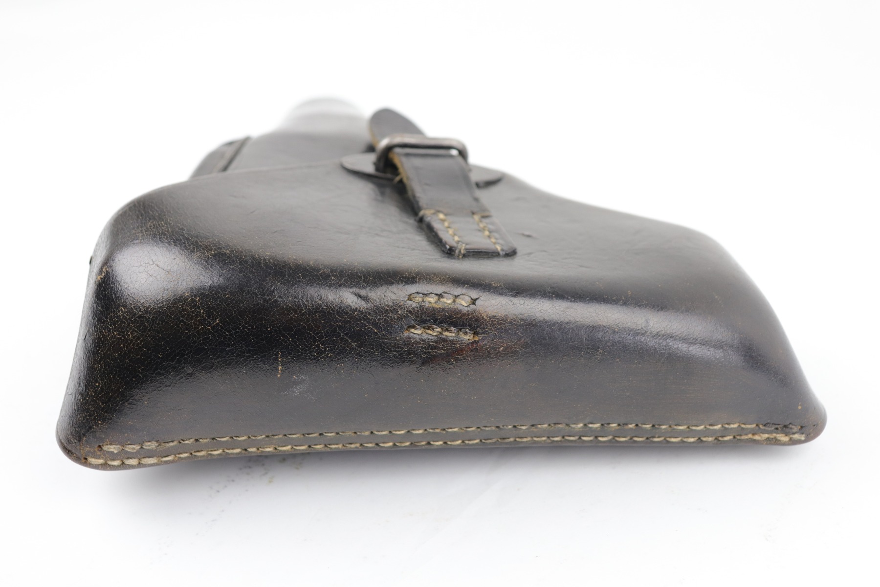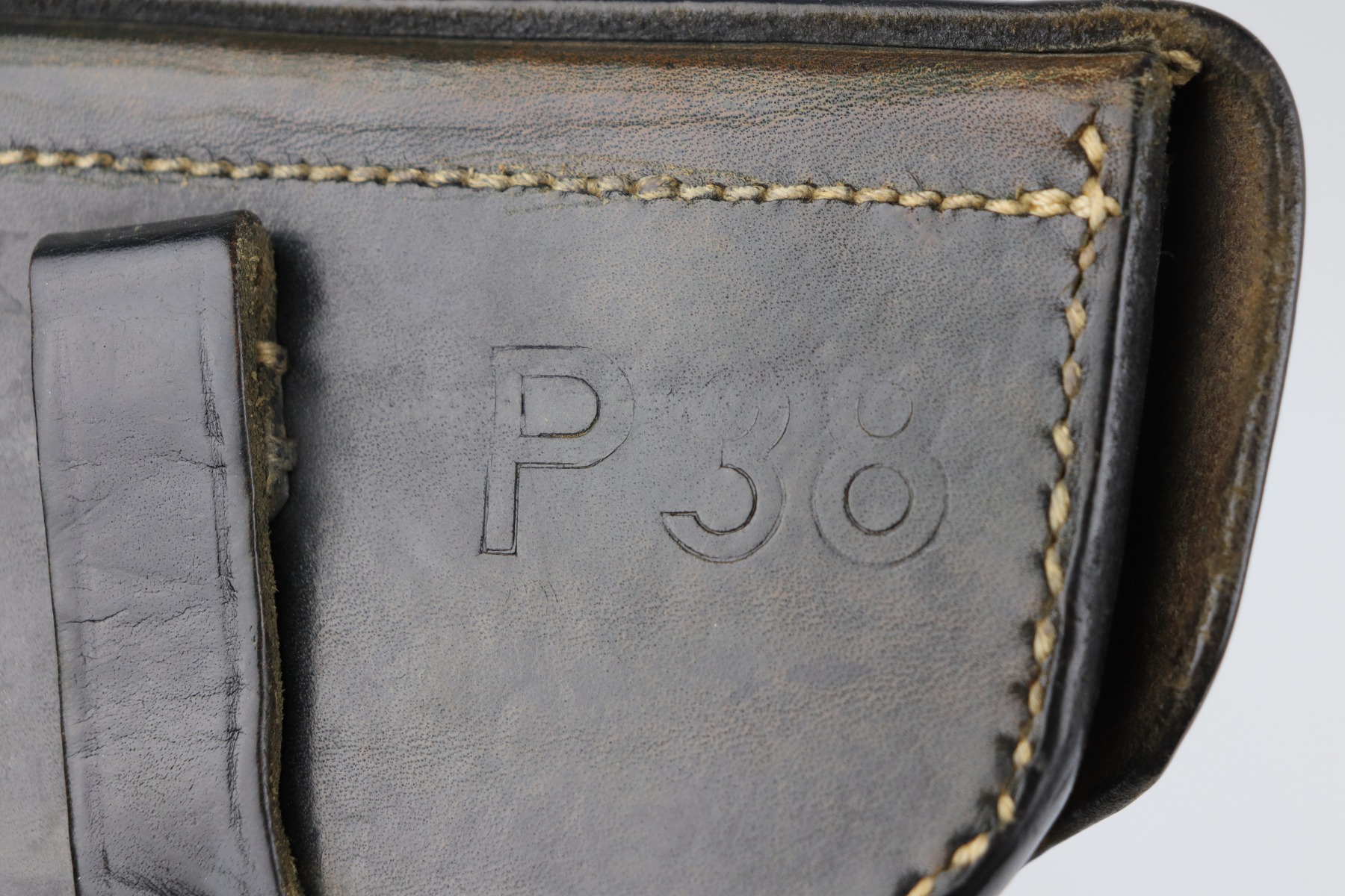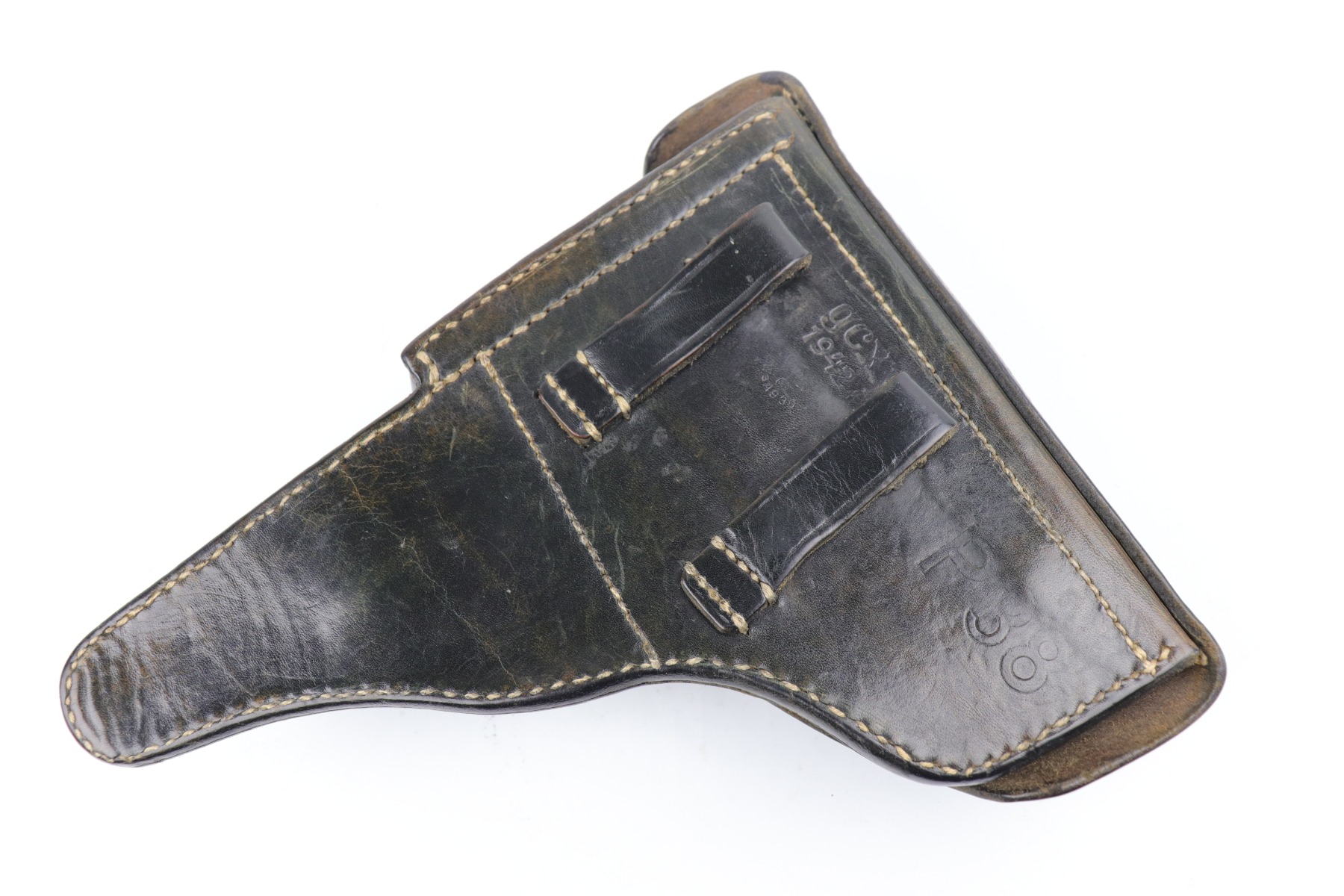 5/19/20 – This is an original WW2 hard shell P.38 Holster, manufactured in 1942. It is “gcx” makers marked and waffenamt. The waffen stamp is visible but faint. The holster is in excellent condition. There are just very minor scuffs here and there. The leather is soft and workable. The paint on the metal plates is mostly in tact. The stitching is in tact.