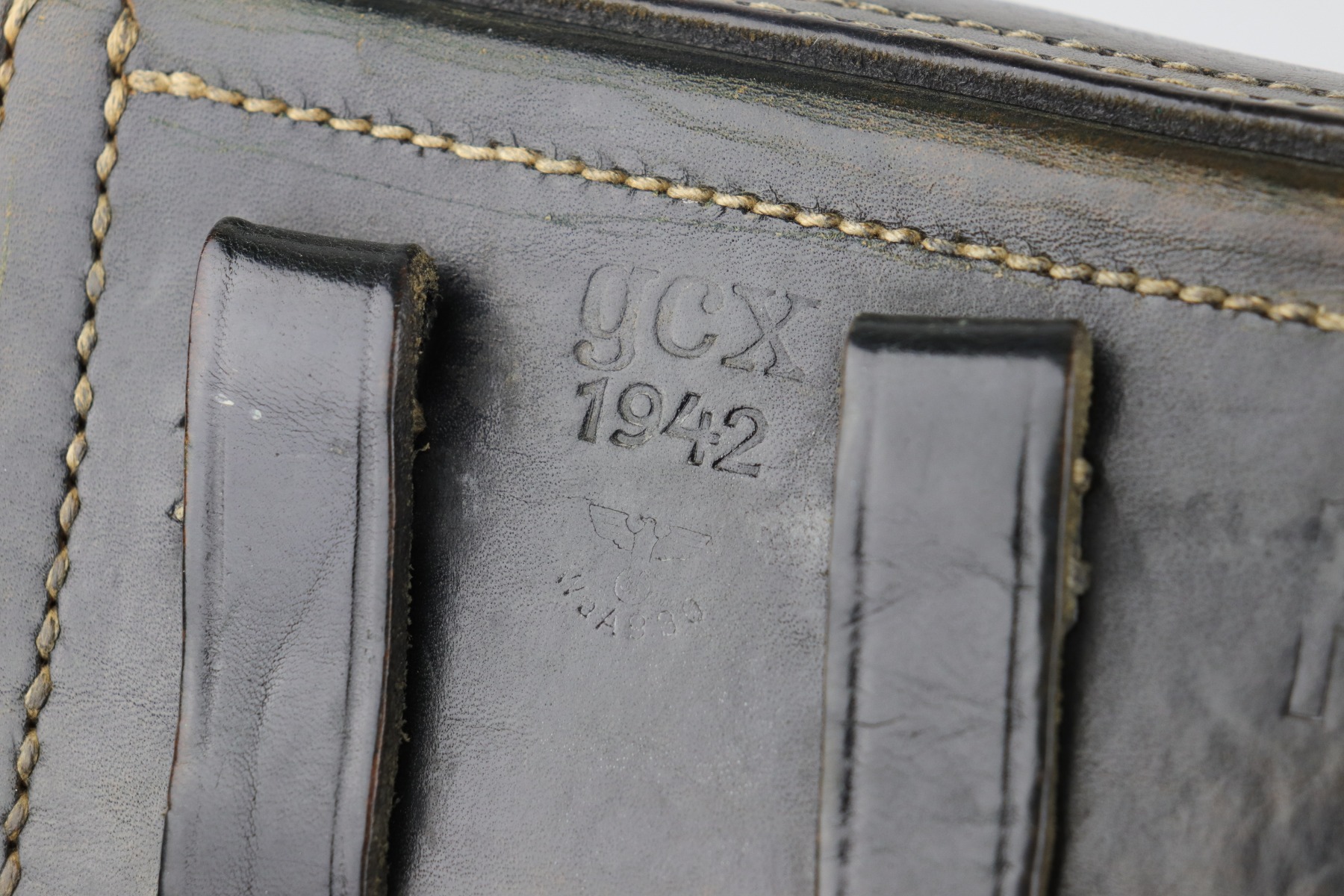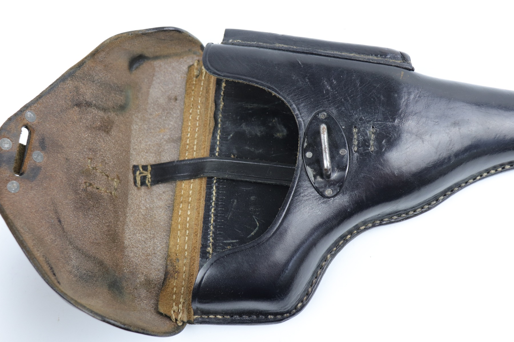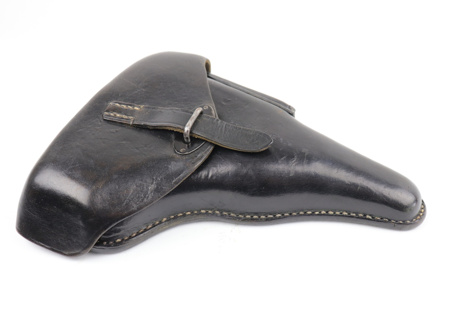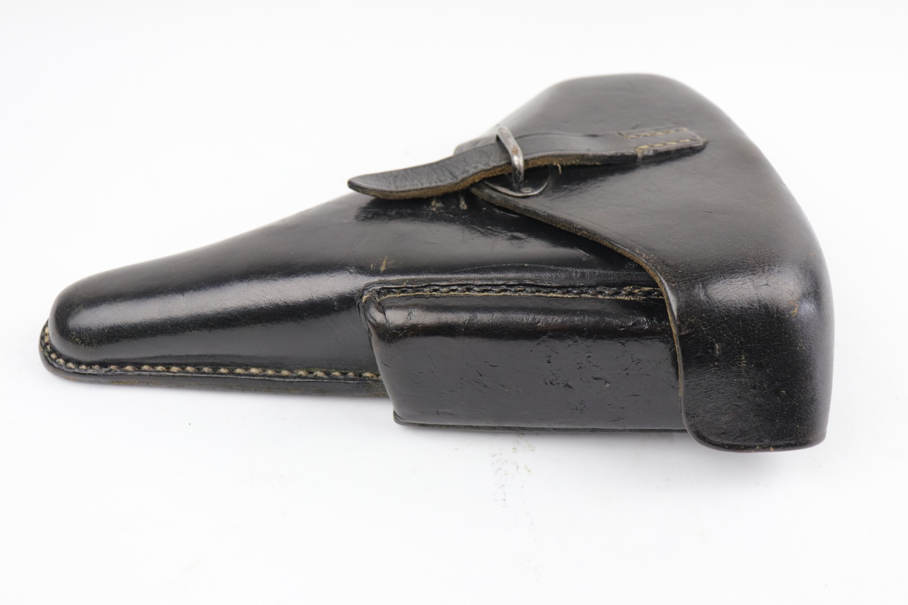 5/19/20 – This is an original WW2 hard shell P.38 Holster, manufactured in 1942. It is “gcx” makers marked and waffenamt. The waffen stamp is visible but faint. The holster is in excellent condition. There are just very minor scuffs here and there. The leather is soft and workable. The paint on the metal plates is mostly in tact. The stitching is in tact.