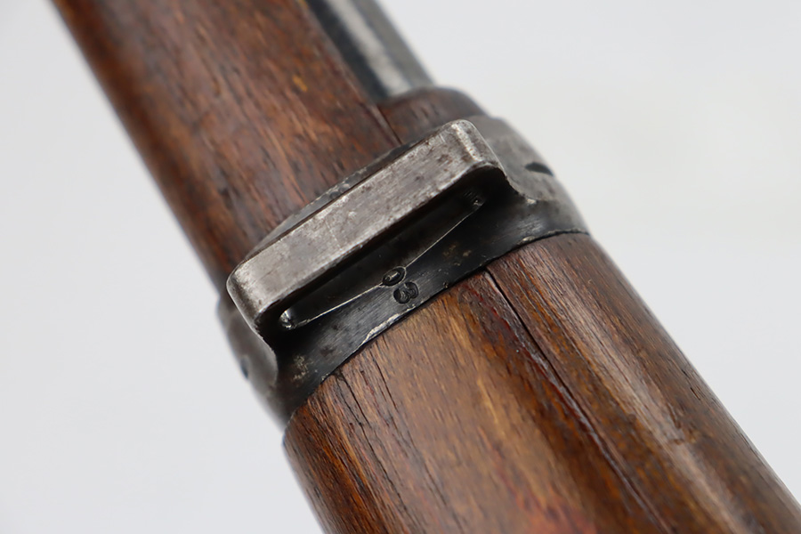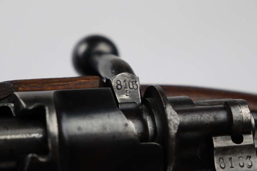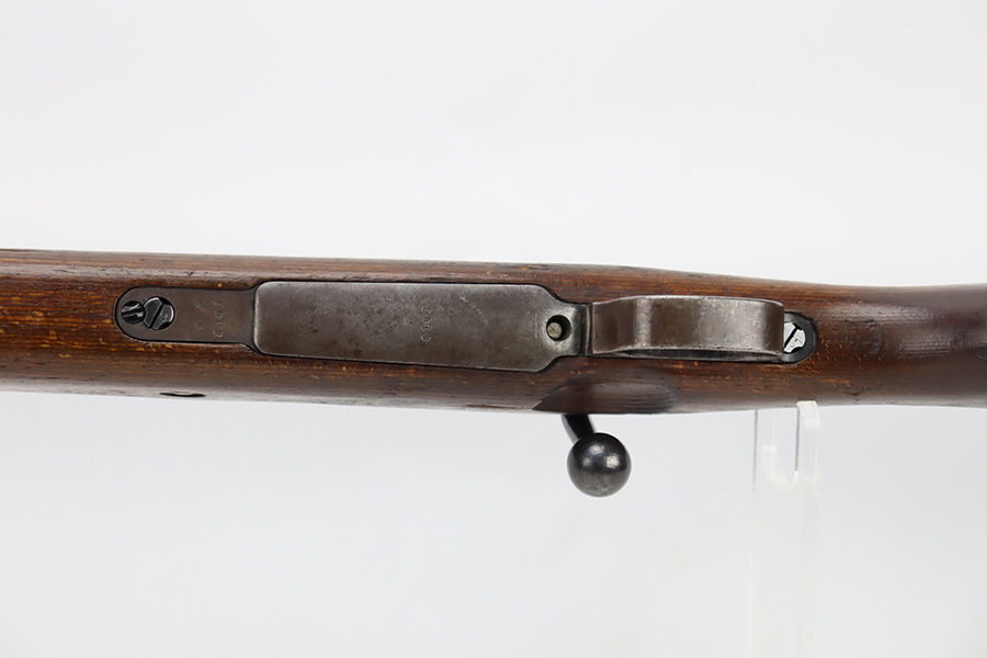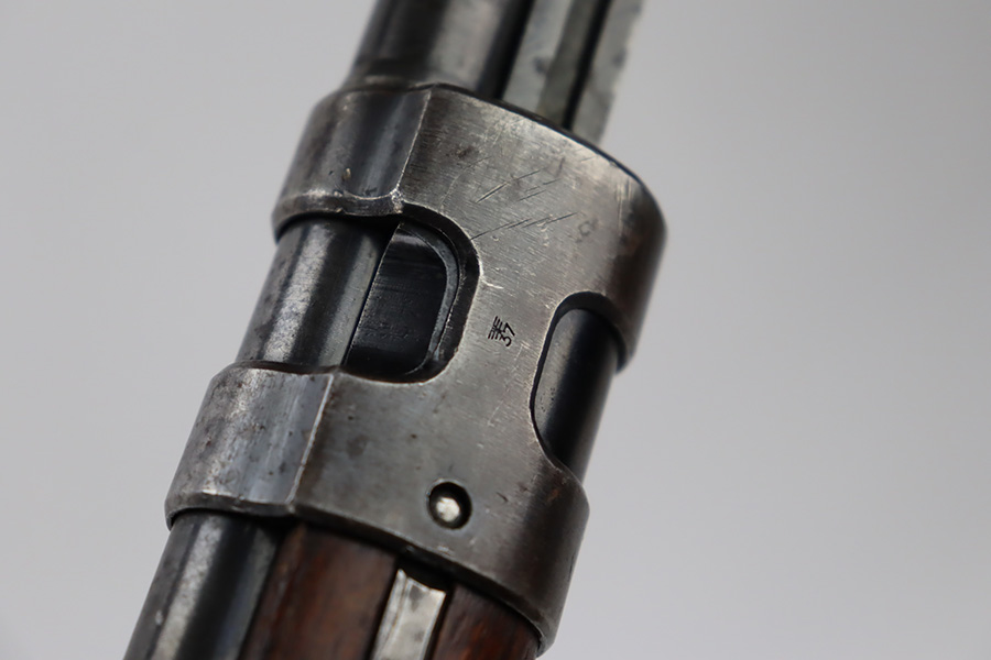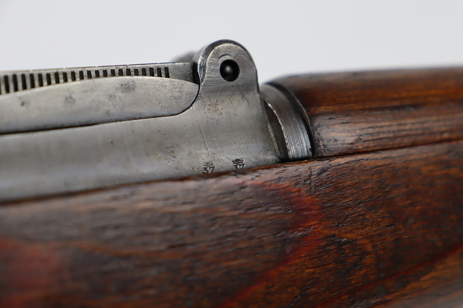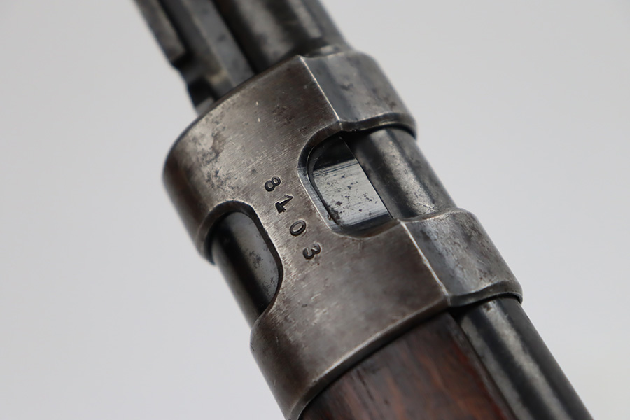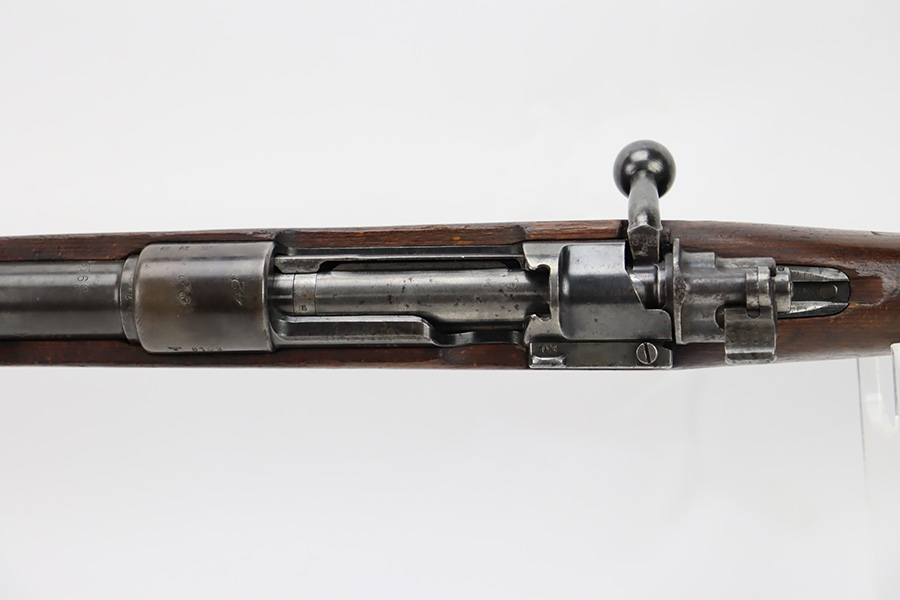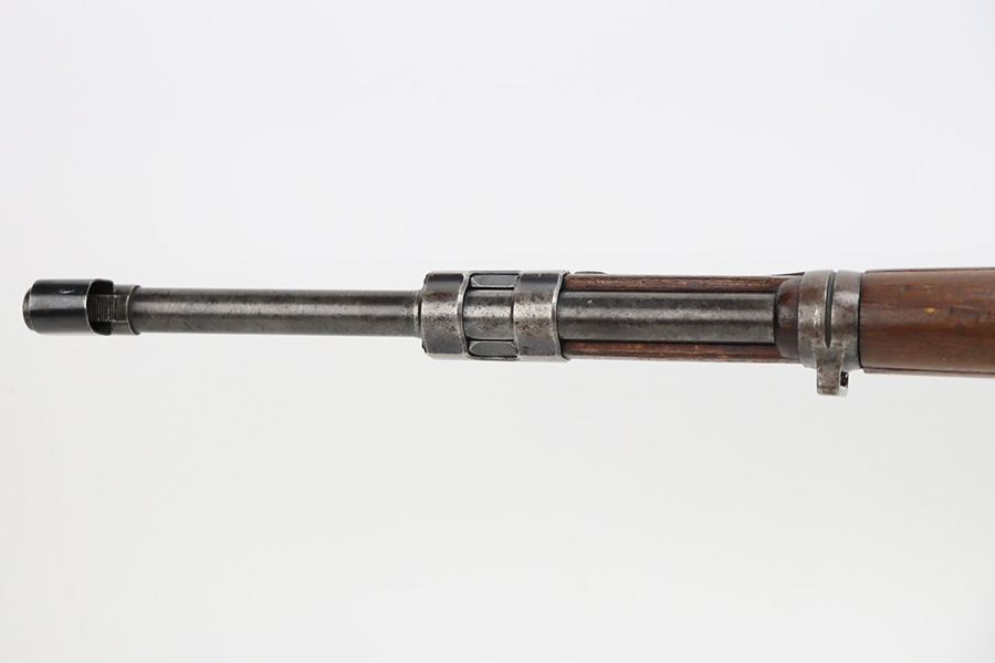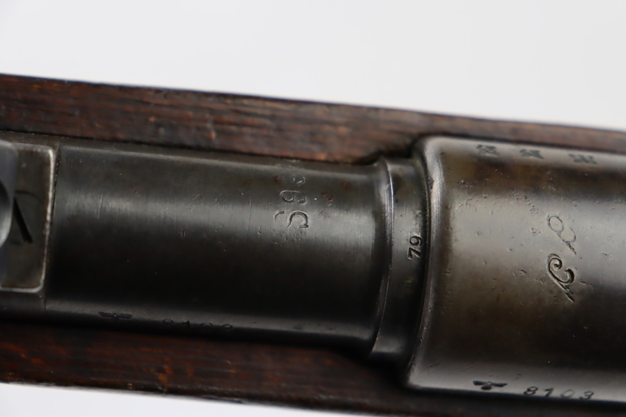 10/5/23 – This is a “ce 42” code JP Sauer K98 issued to the Nazi military in 1942. It is mostly matching, but a couple of the small parts of the bolt are mismatched. Stock is matching and has the proper proofs. The metal parts have lost most of their finish with spotty oxidation throughout and some discoloration on the receiver. No major damage to the wood, but it shows the typical signs of wear. The bore has good rifling, but there are areas of pitting and oxidation here and there.