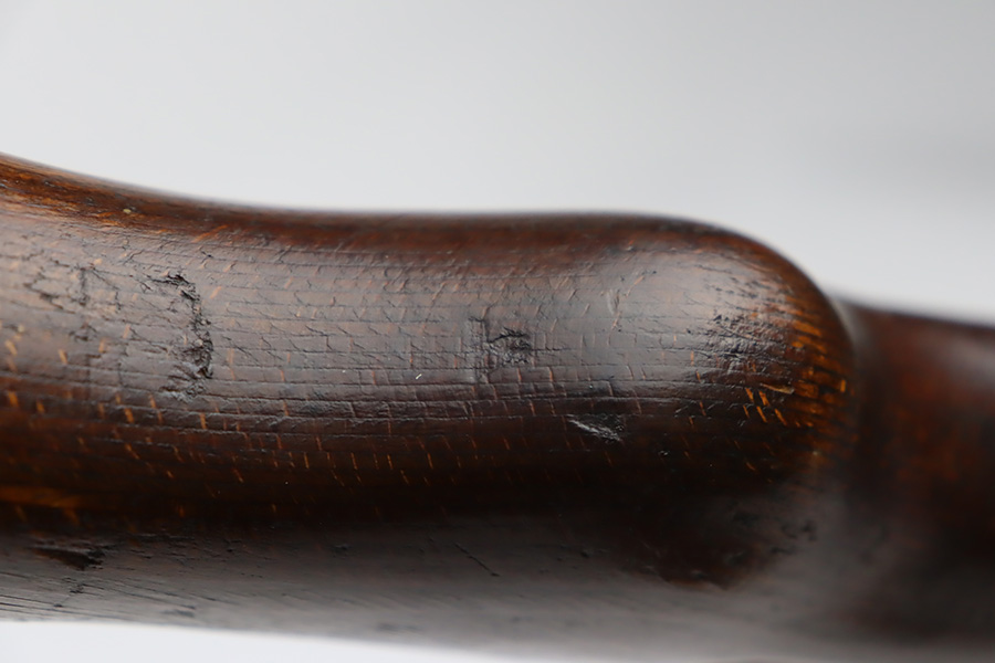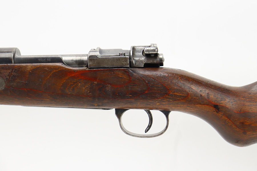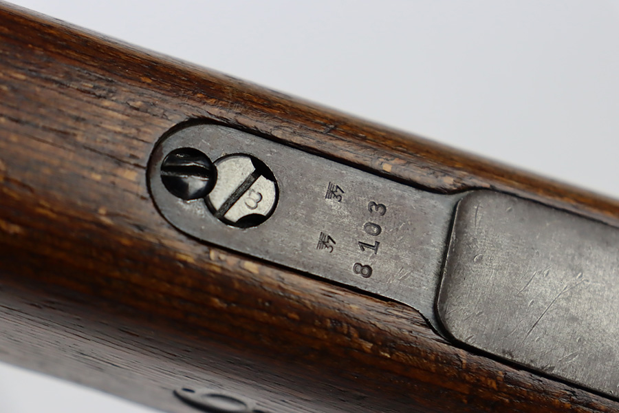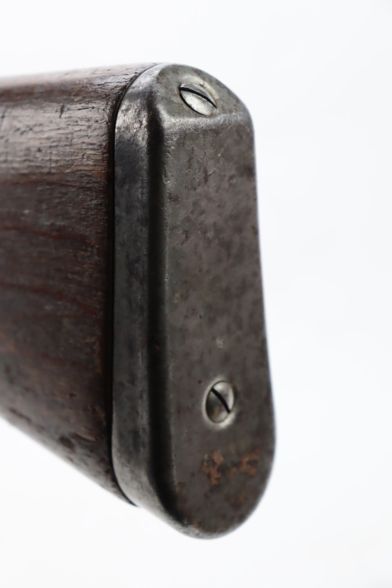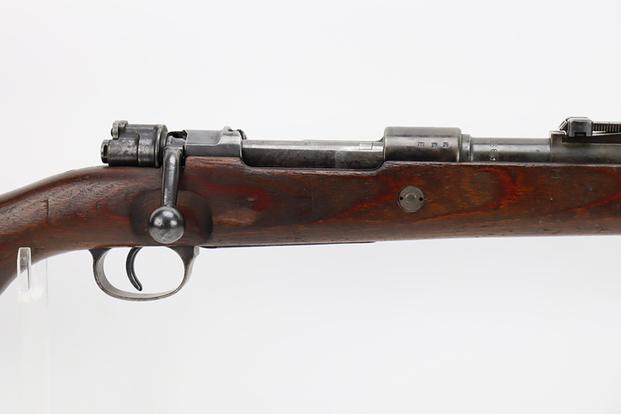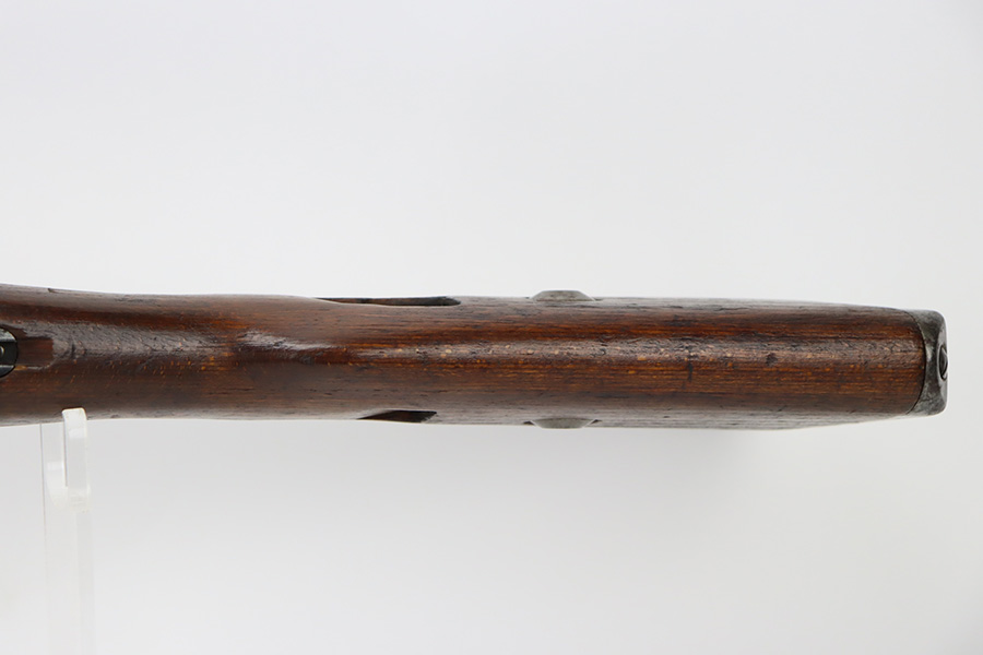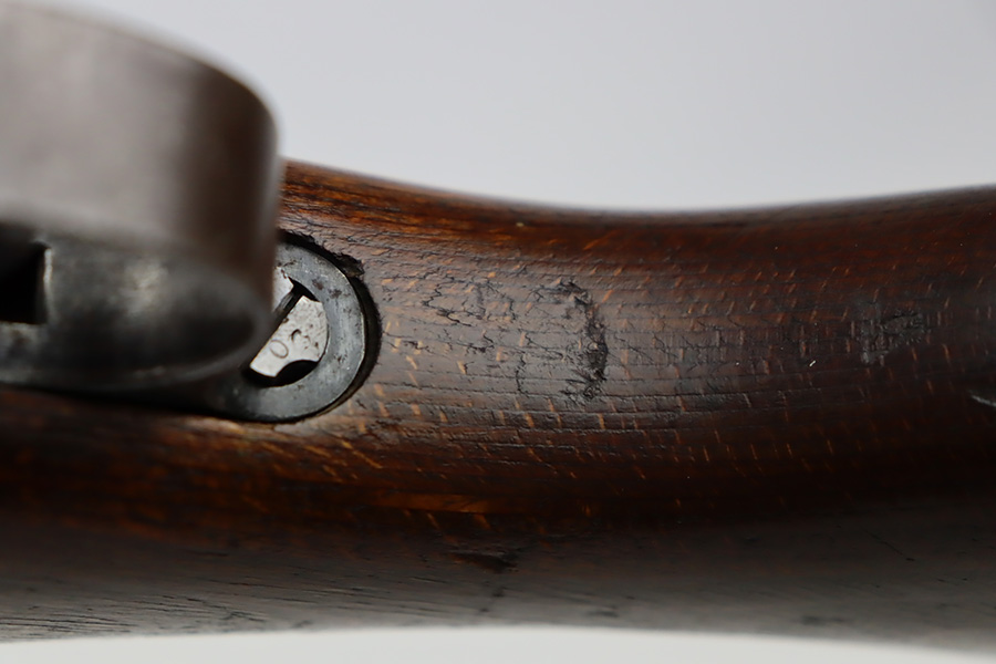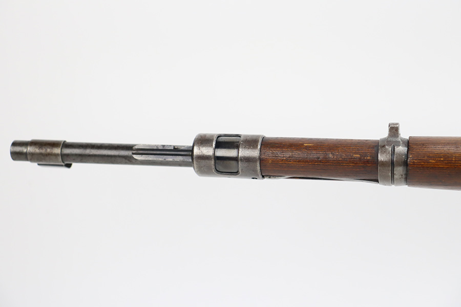 10/5/23 – This is a “ce 42” code JP Sauer K98 issued to the Nazi military in 1942. It is mostly matching, but a couple of the small parts of the bolt are mismatched. Stock is matching and has the proper proofs. The metal parts have lost most of their finish with spotty oxidation throughout and some discoloration on the receiver. No major damage to the wood, but it shows the typical signs of wear. The bore has good rifling, but there are areas of pitting and oxidation here and there.