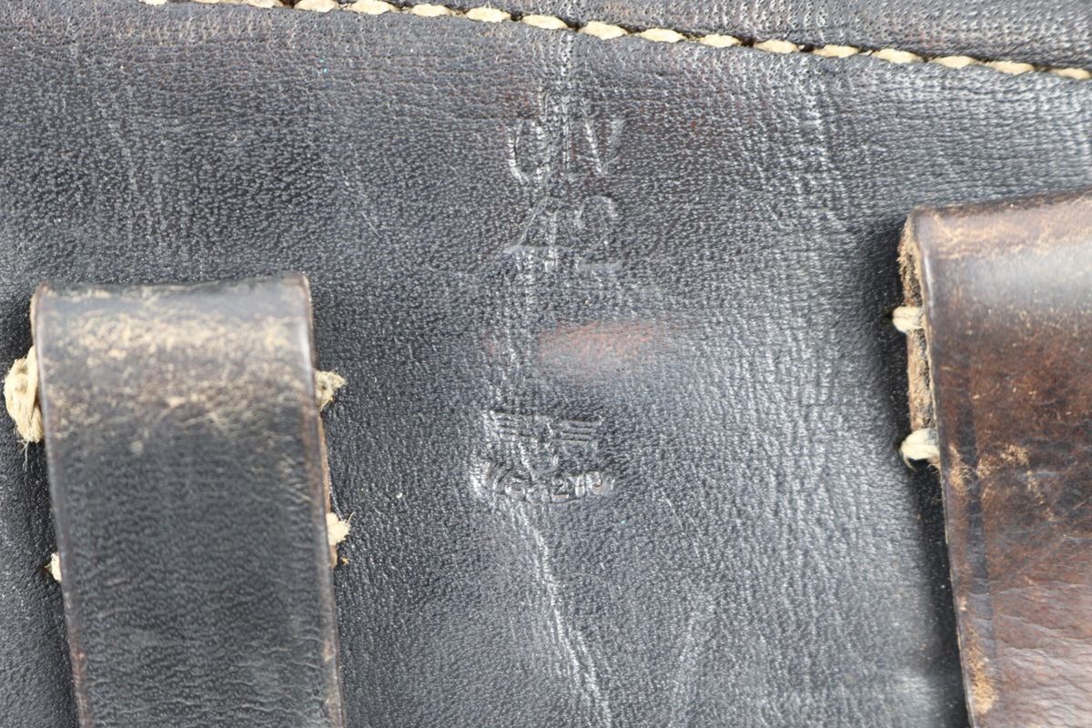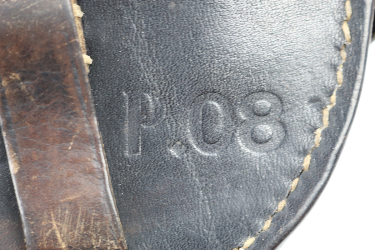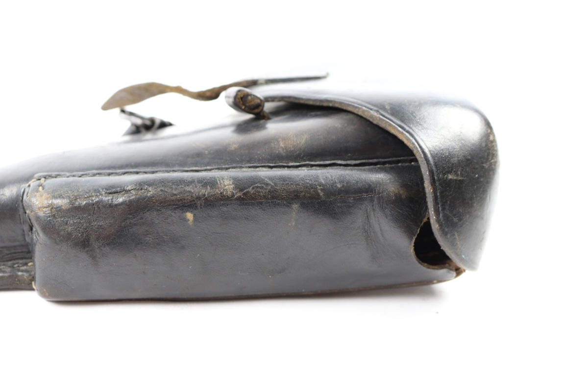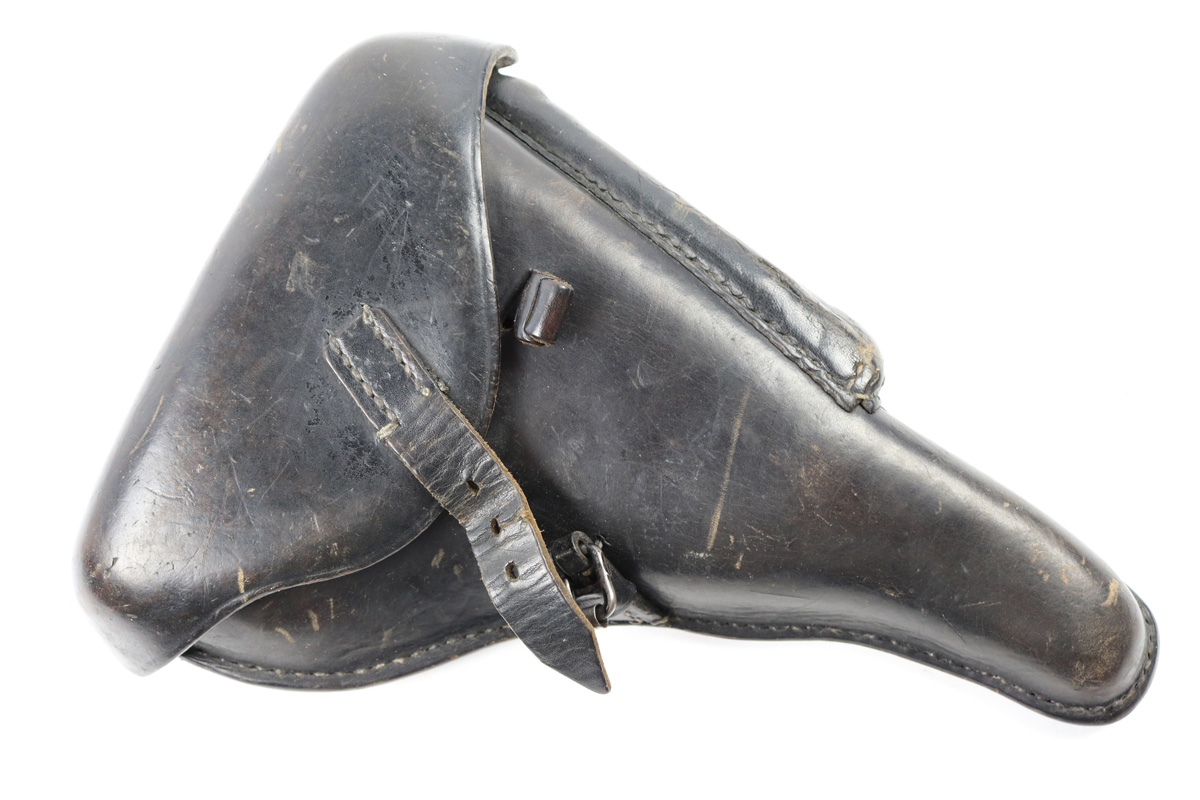 5/18/18 – This is an original 1942 dated Luger holster. The holster has some exterior scuffs and normal wear with semi pliable leather. The leather is all in tact though, as is the stitching. The backside of the holster is maker stamped, 42 dated, and waffen proof stamped. Guaranteed original.