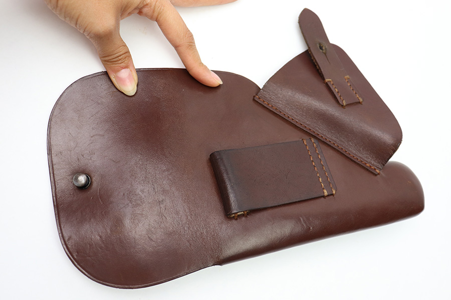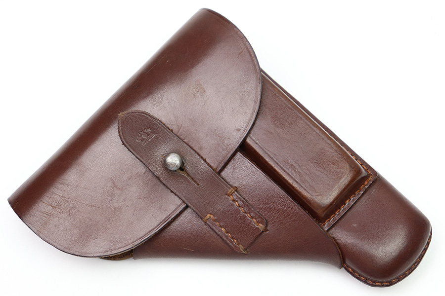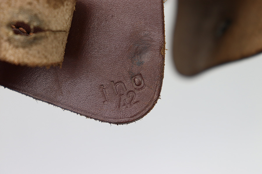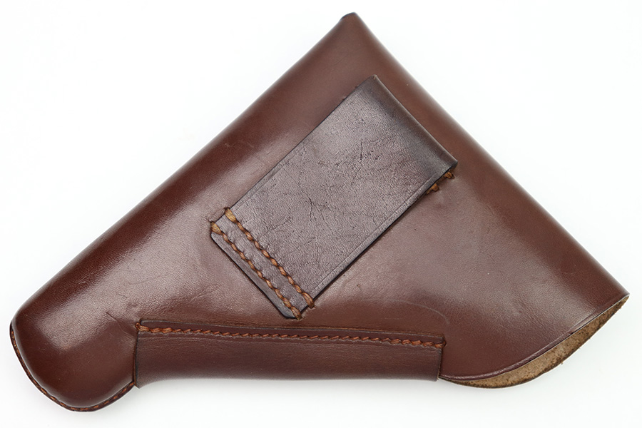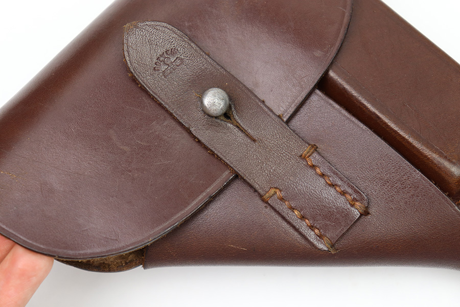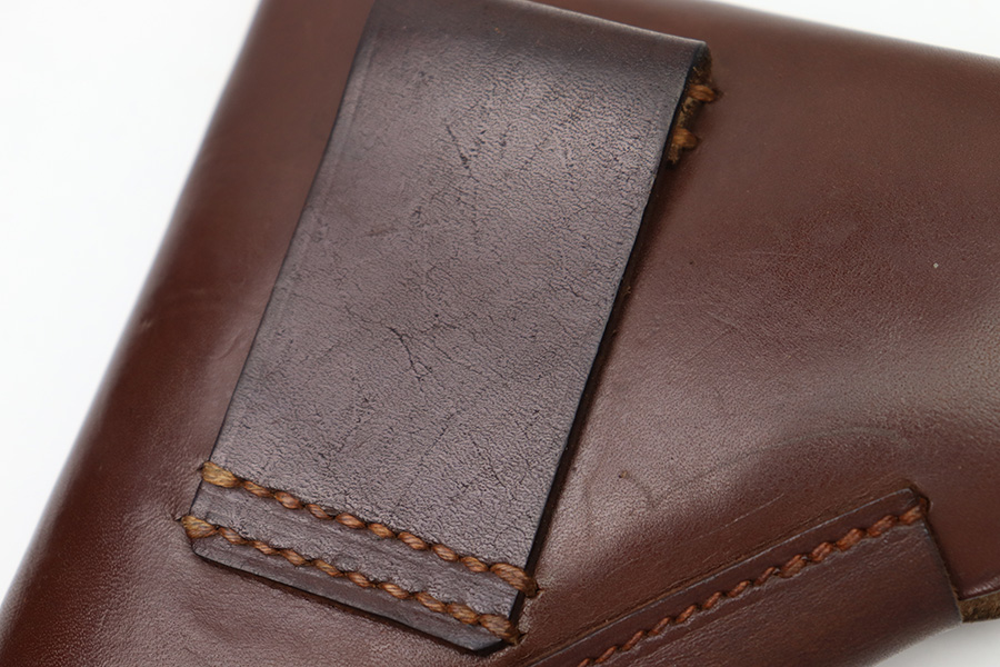 9/1/22 – This is an excellent condition 1942 dated holster for a Mauser HSC pistol. The holster has clean, excellent leather and all original stitching intact. The closure strap is waffen proof stamped. Under the closure strap is a “jhg 42” maker stamp. The interior leather has a faint, yet visible Mauser 7,65 ink stamp. An excellent example of a highly collectible holster.